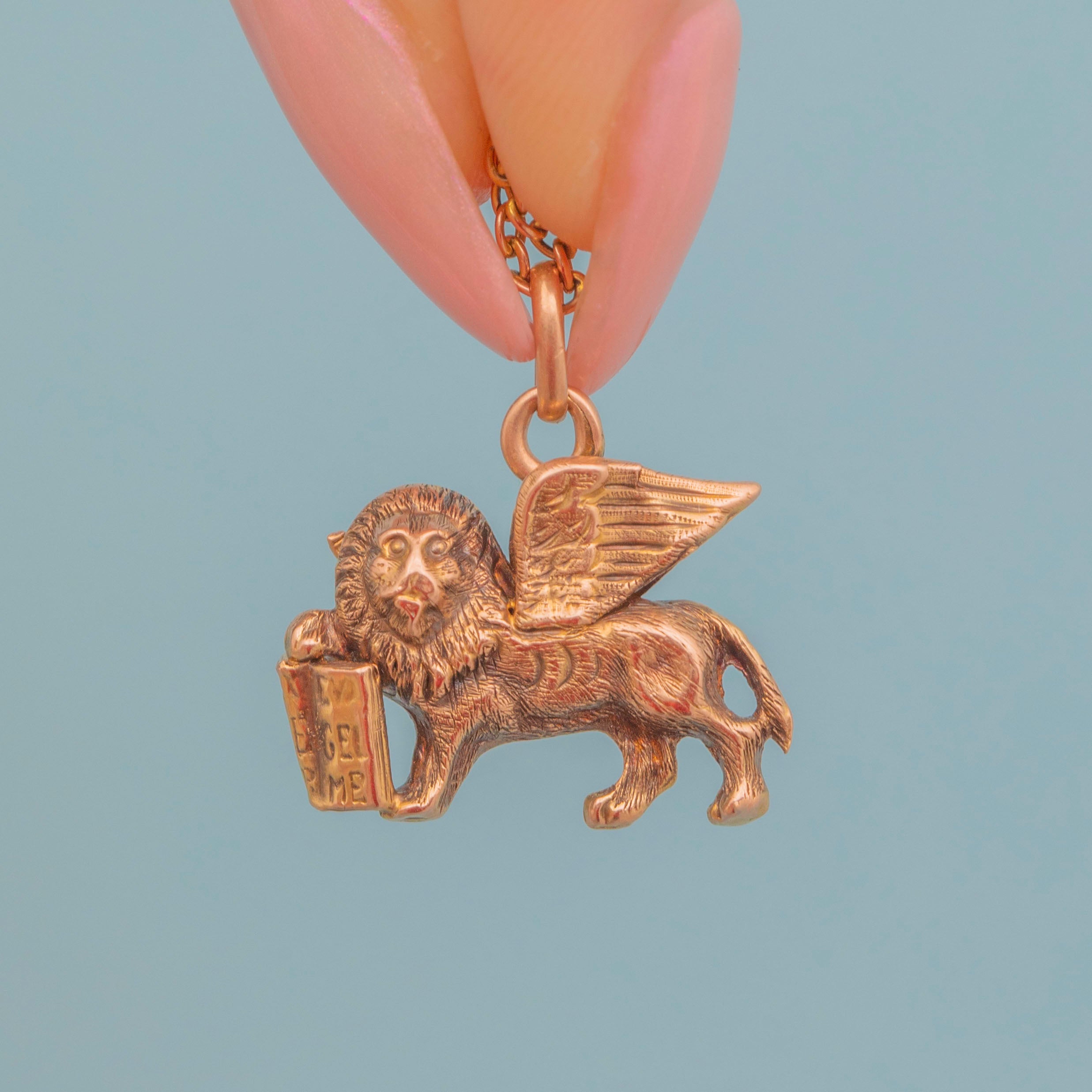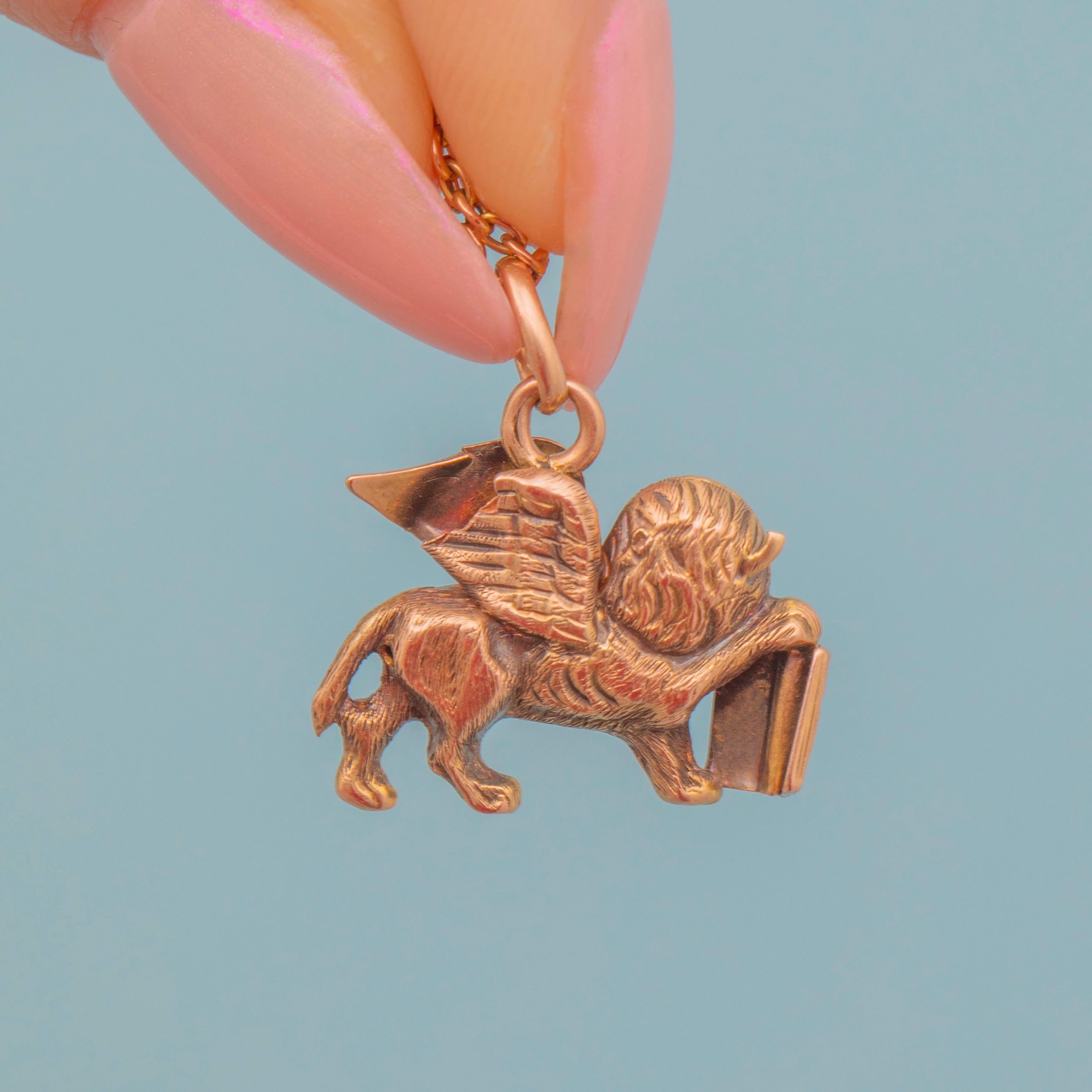 This antique 15ct Gold winged lion of Venice charm is a little delight! Crafted from saturated 15ct Gold, this Victorian charm features a winged lion, symbolic of Venetian jewellery.