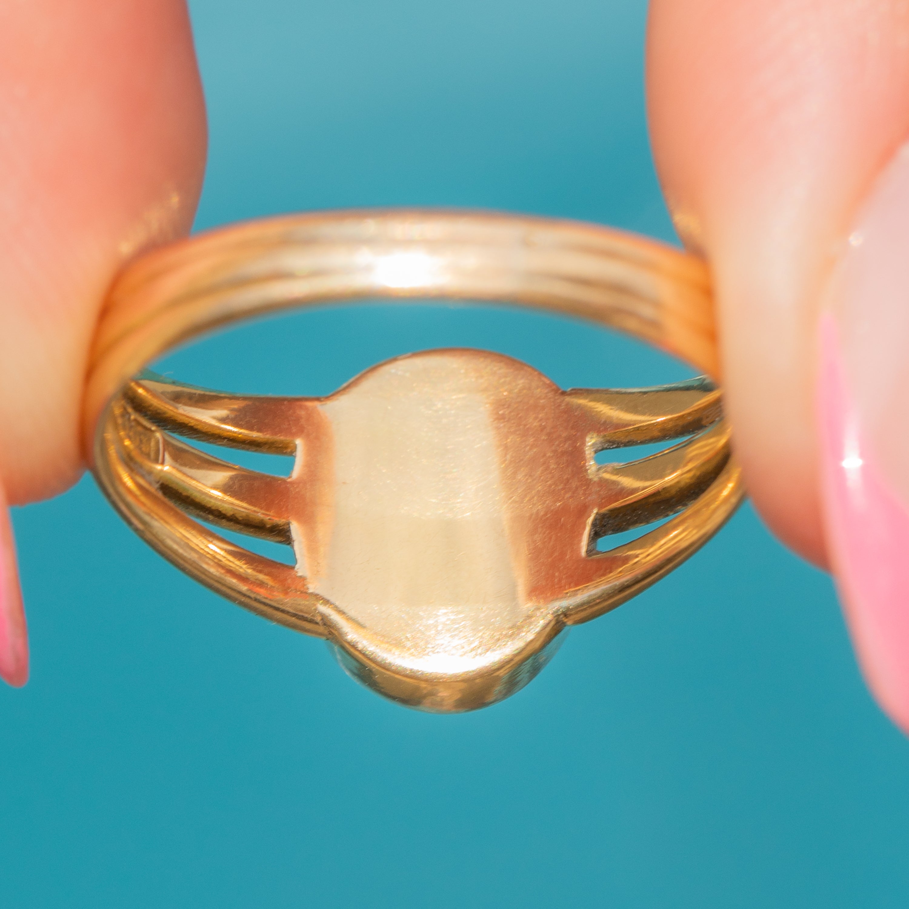 She is flanked by chunky split shoulders and crafted into a signet style, providing impressive finger coverage. A wonderful option for stacking or to be worn alone, this versatile Victorian ring is a must-have!