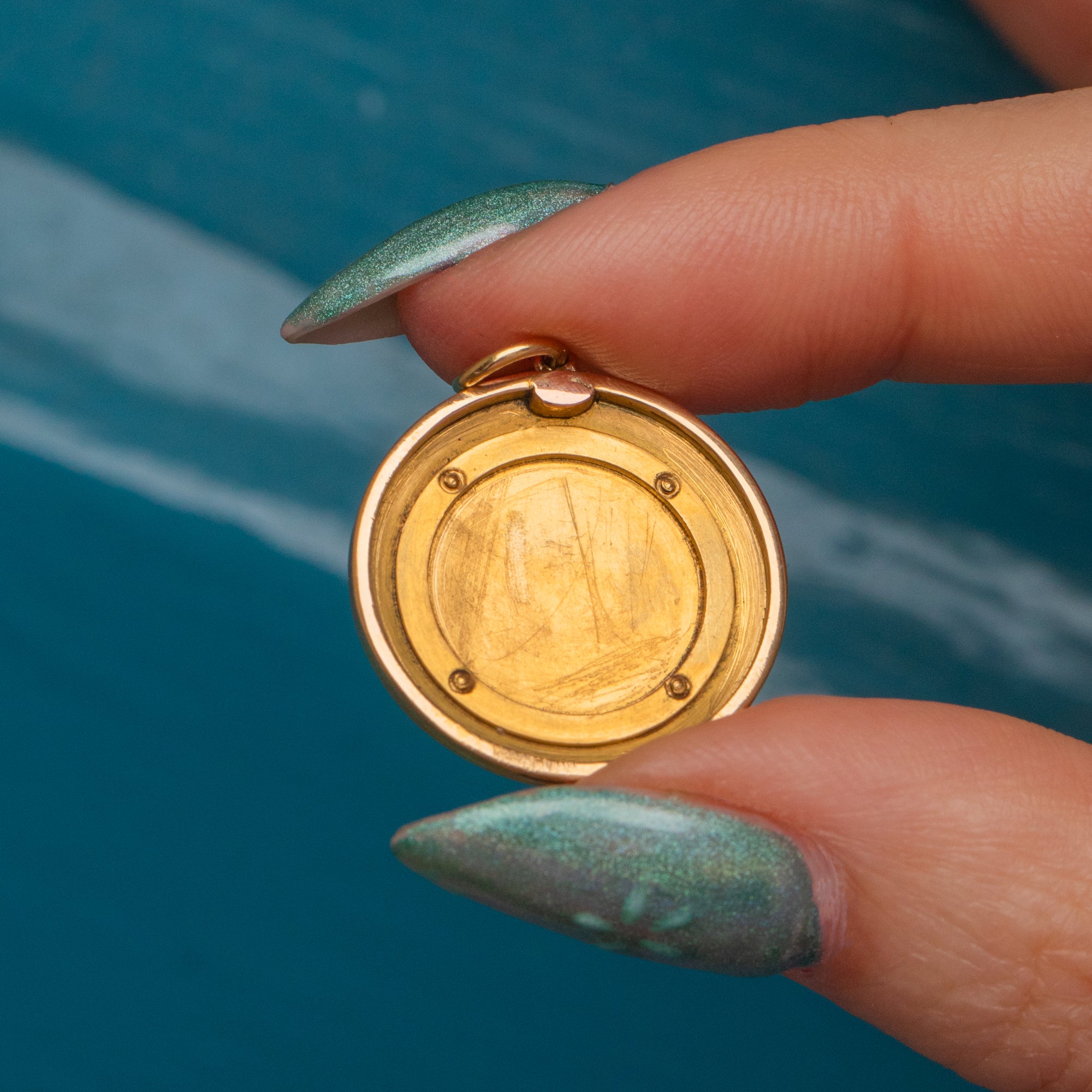 MEASUREMENTS: Pendant is 22mm in diameter x 9mm deep.
