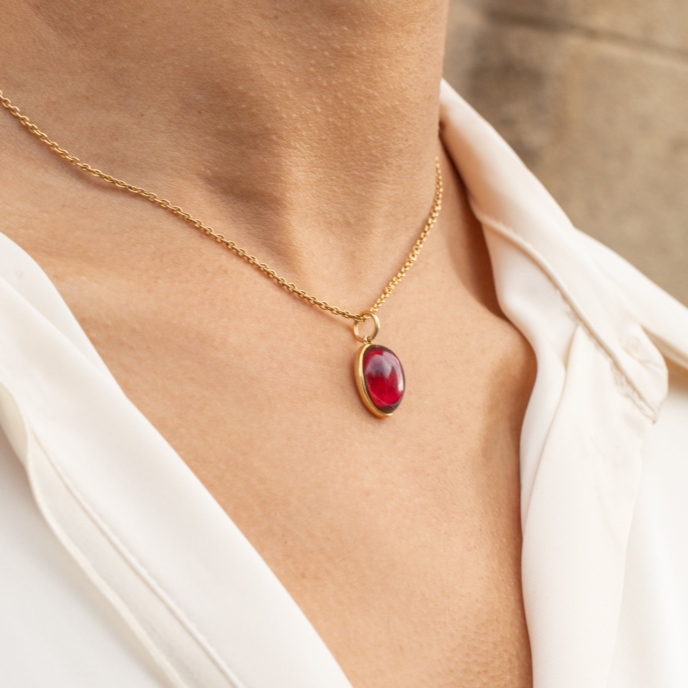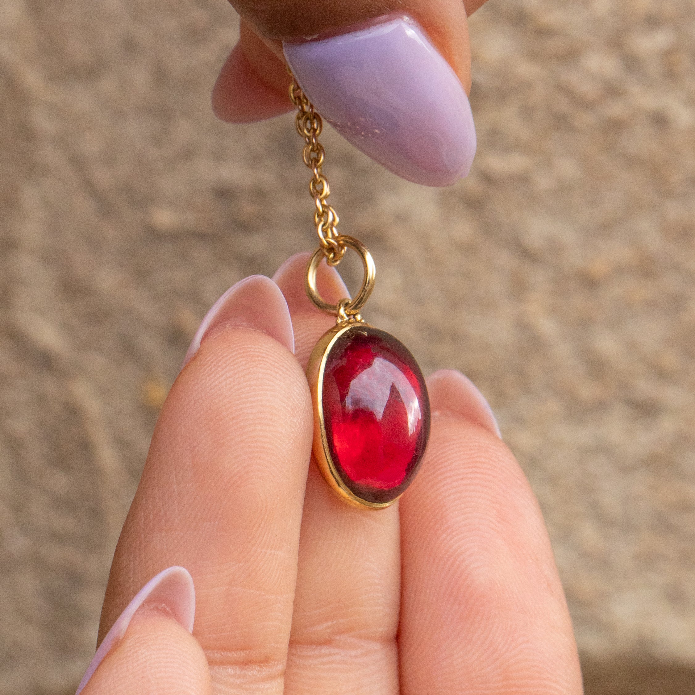 Transport yourself to the Victorian era with this exquisite antique 18ct Gold Garnet cabochon pendant! The deep and richly saturated 7.00ct Garnet is accentuated by the warm glow of the Gold, creating a captivating piece that almost looks good enough to eat!