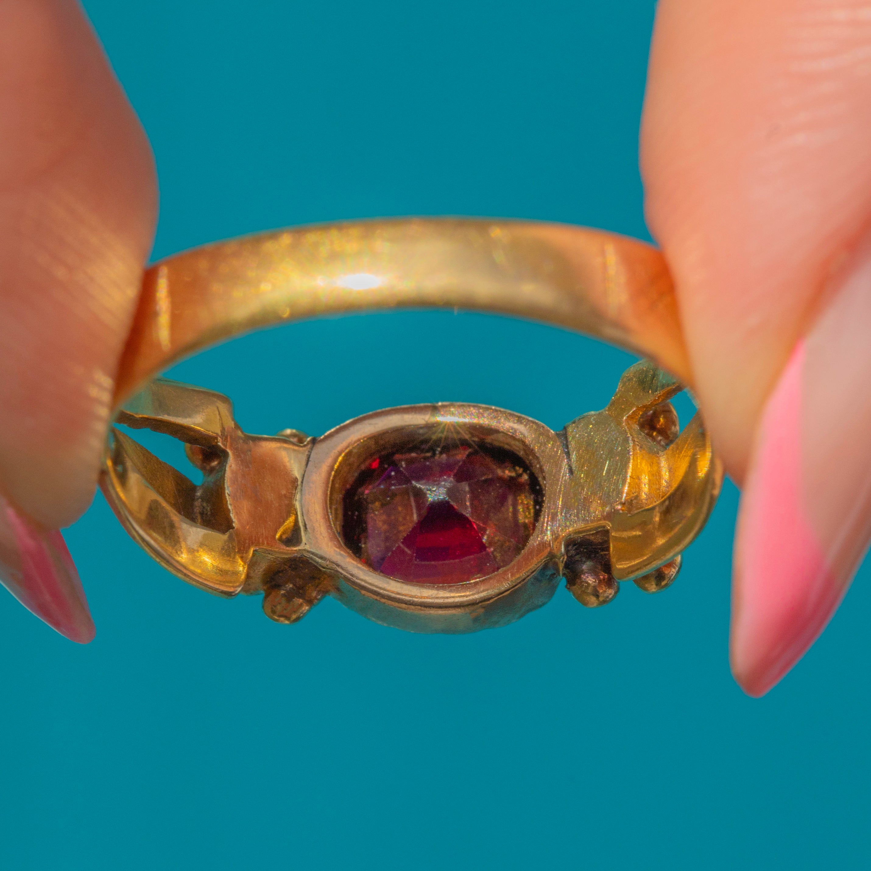Finished with decorative, engraved shoulders, this Victorian ring is a fine example of the unique jewels of the era!