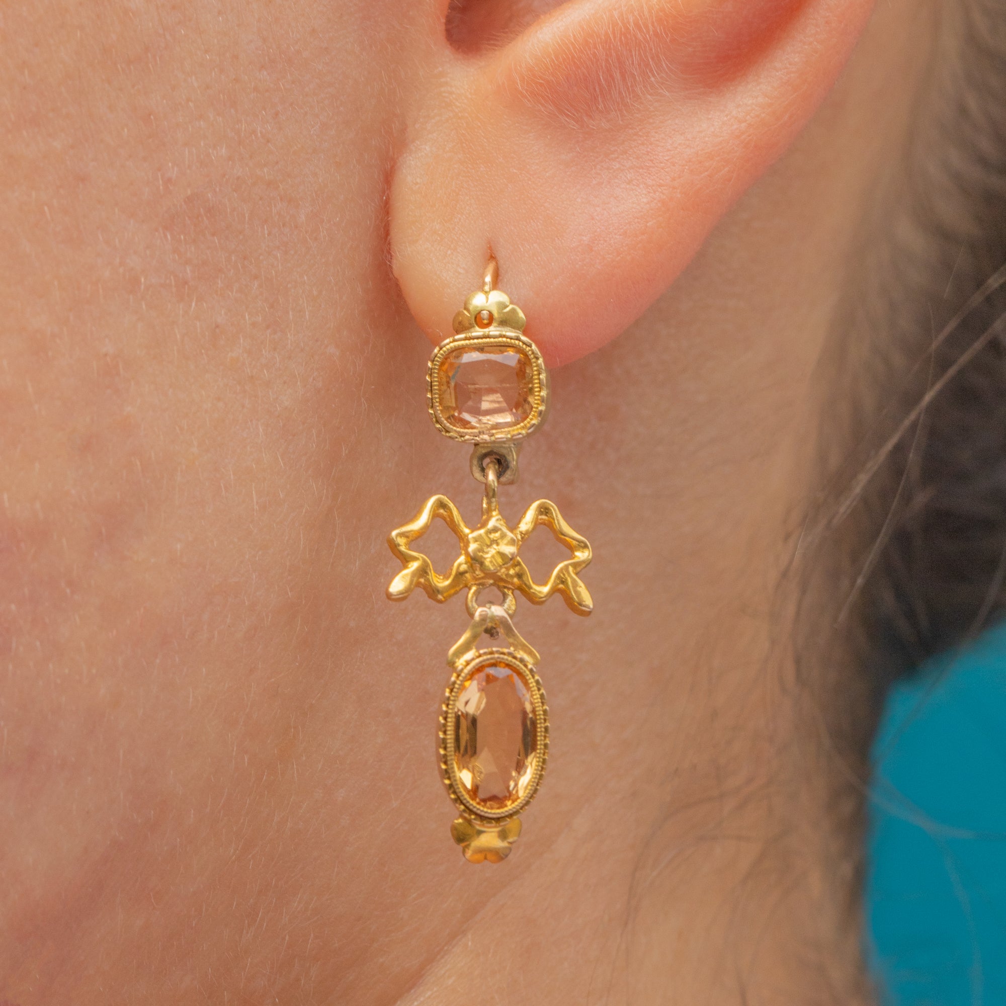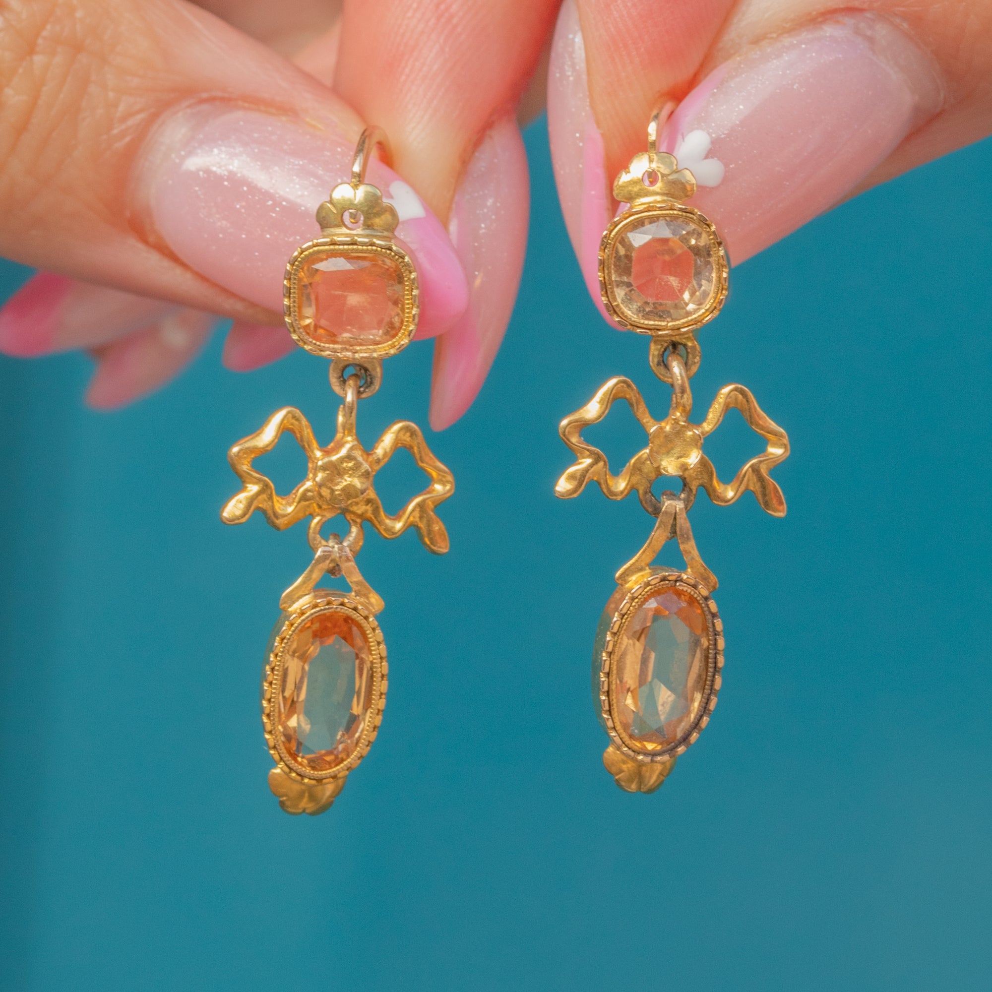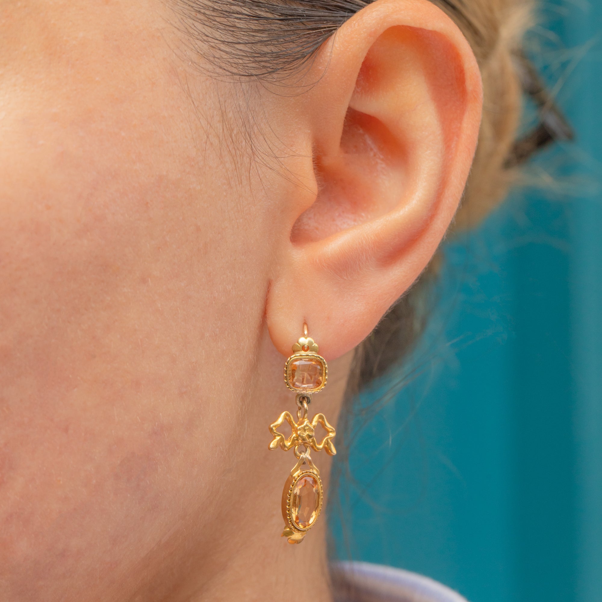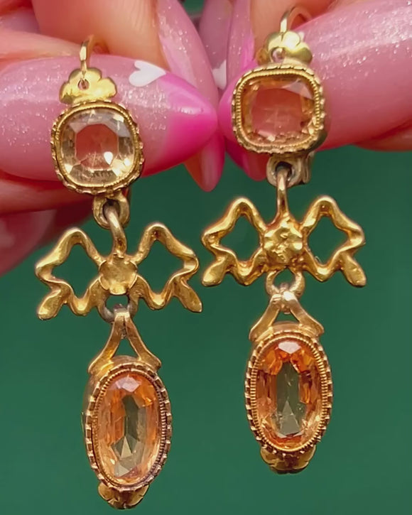 Antique 18ct Gold Imperial Topaz Bow Drop Earrings