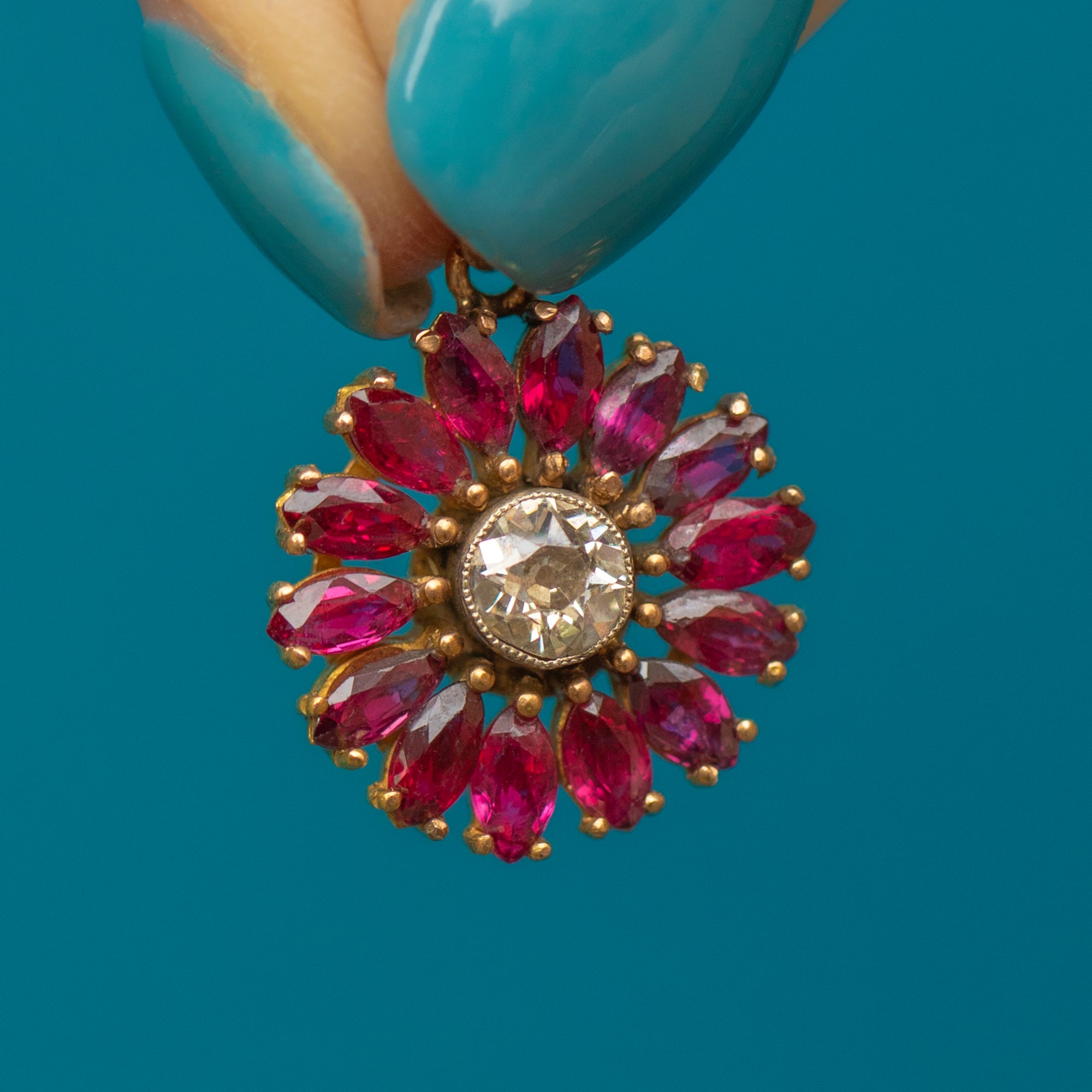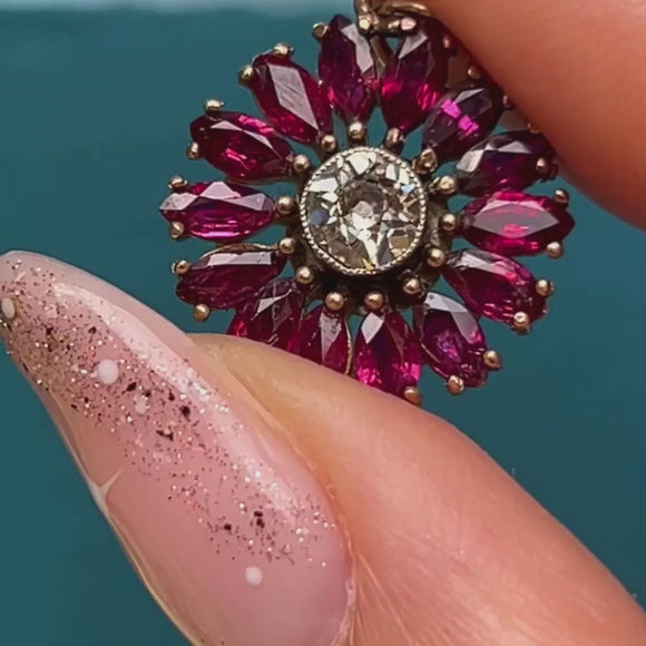 Antique 18ct Gold Ruby Diamond Flower Pendant, 0.50ct Diamond