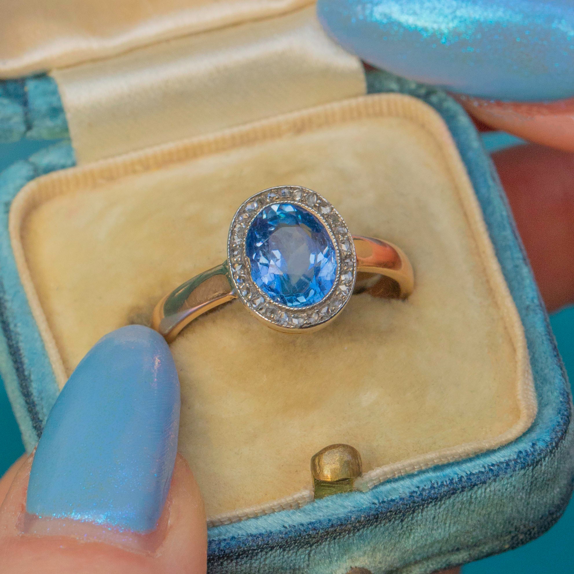 Antique 18ct Gold Sapphire Diamond Oval Cluster Ring - 1.65ct Natural Sapphire