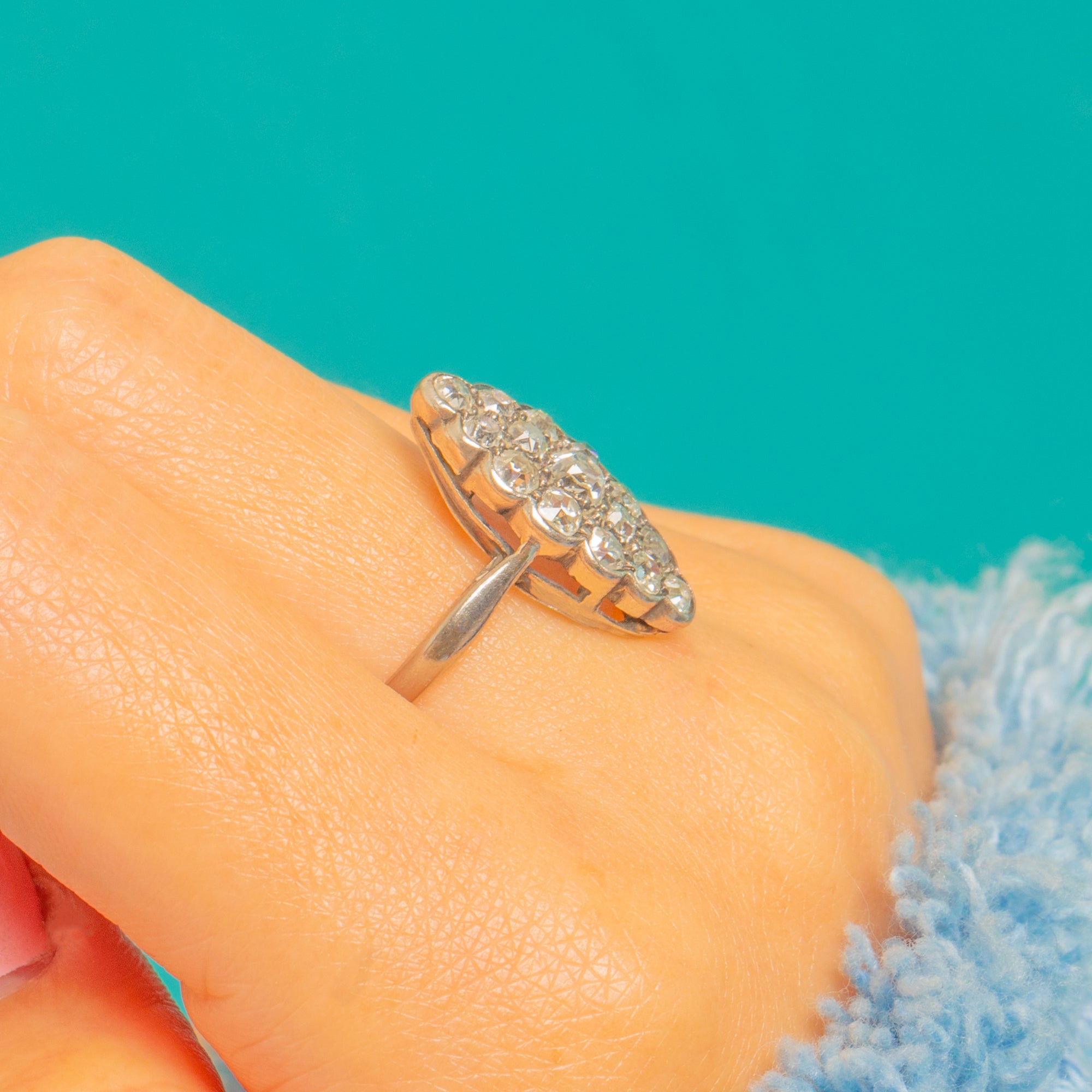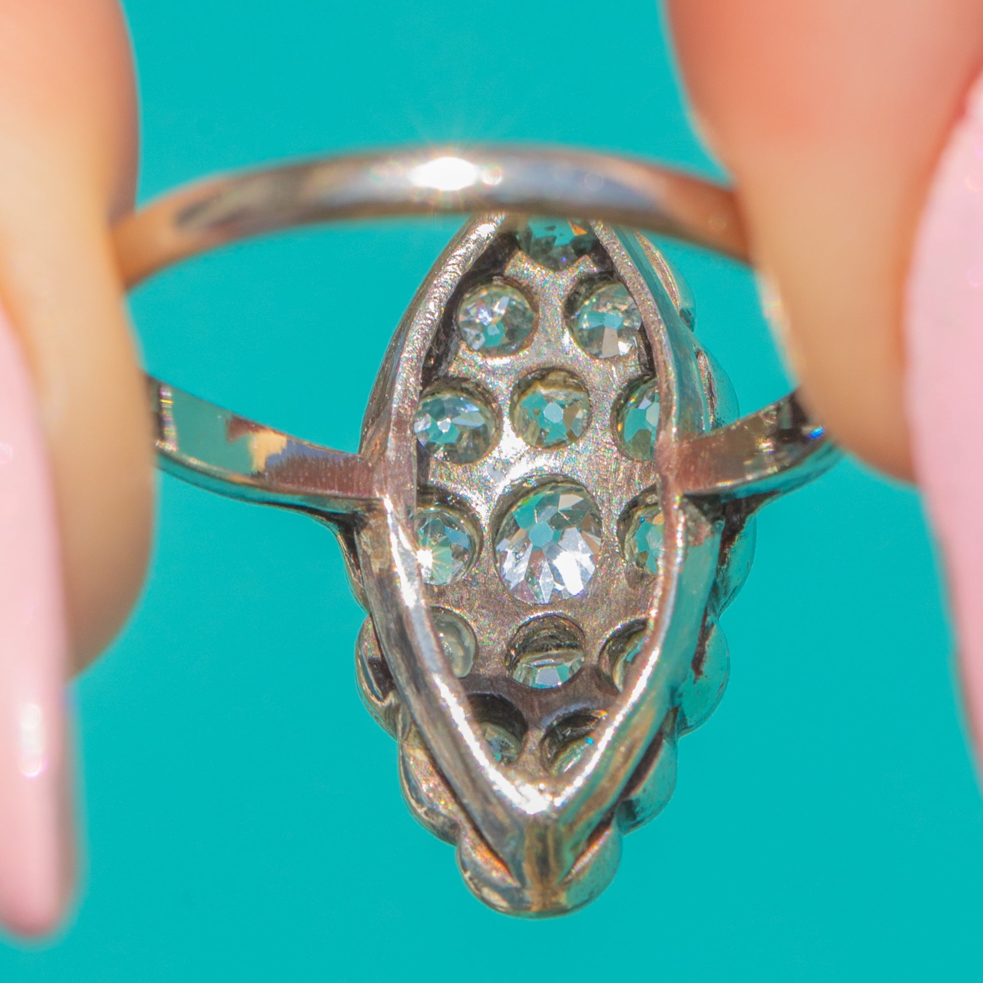 Antique 18ct White Gold Diamond Navette Cluster Ring, 0.60ct
