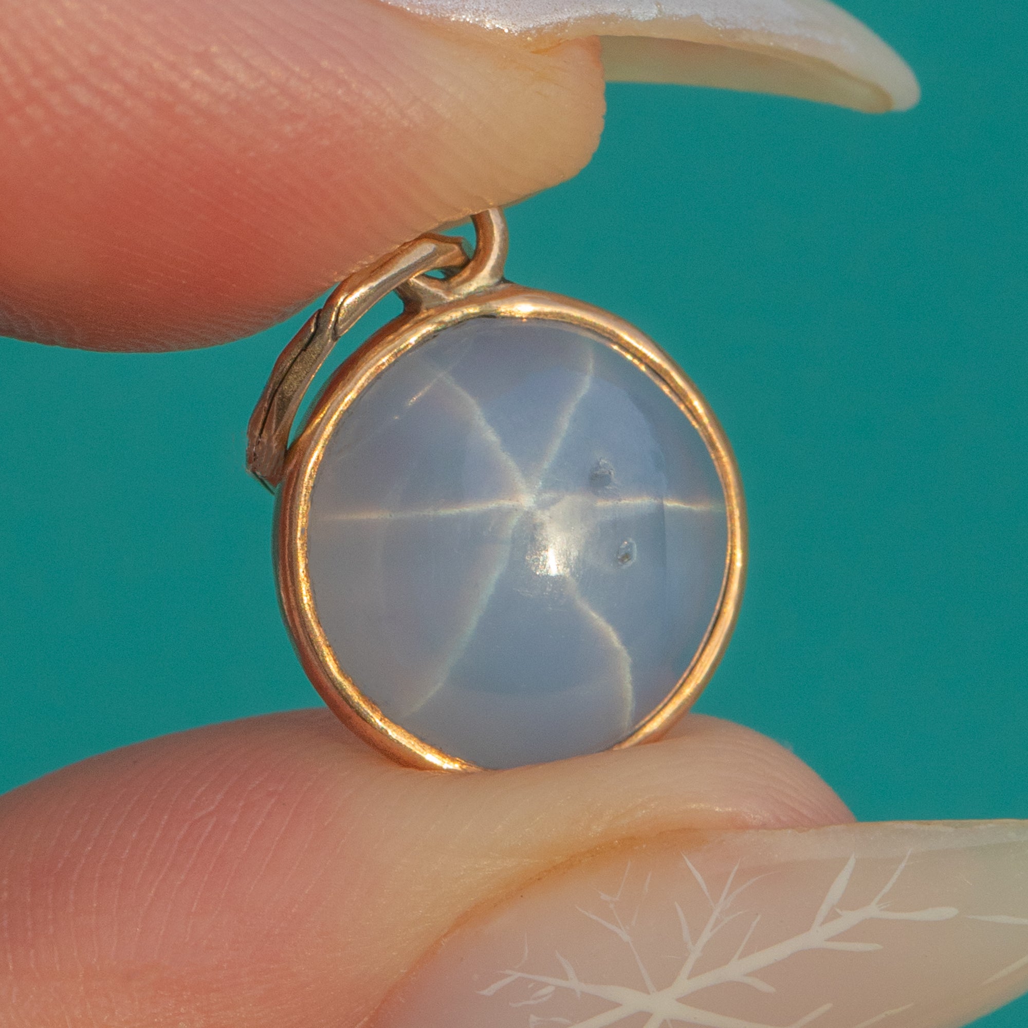 Antique 7.50ct Natural No Heat Round Star Sapphire Charm- Set in 9ct Gold
