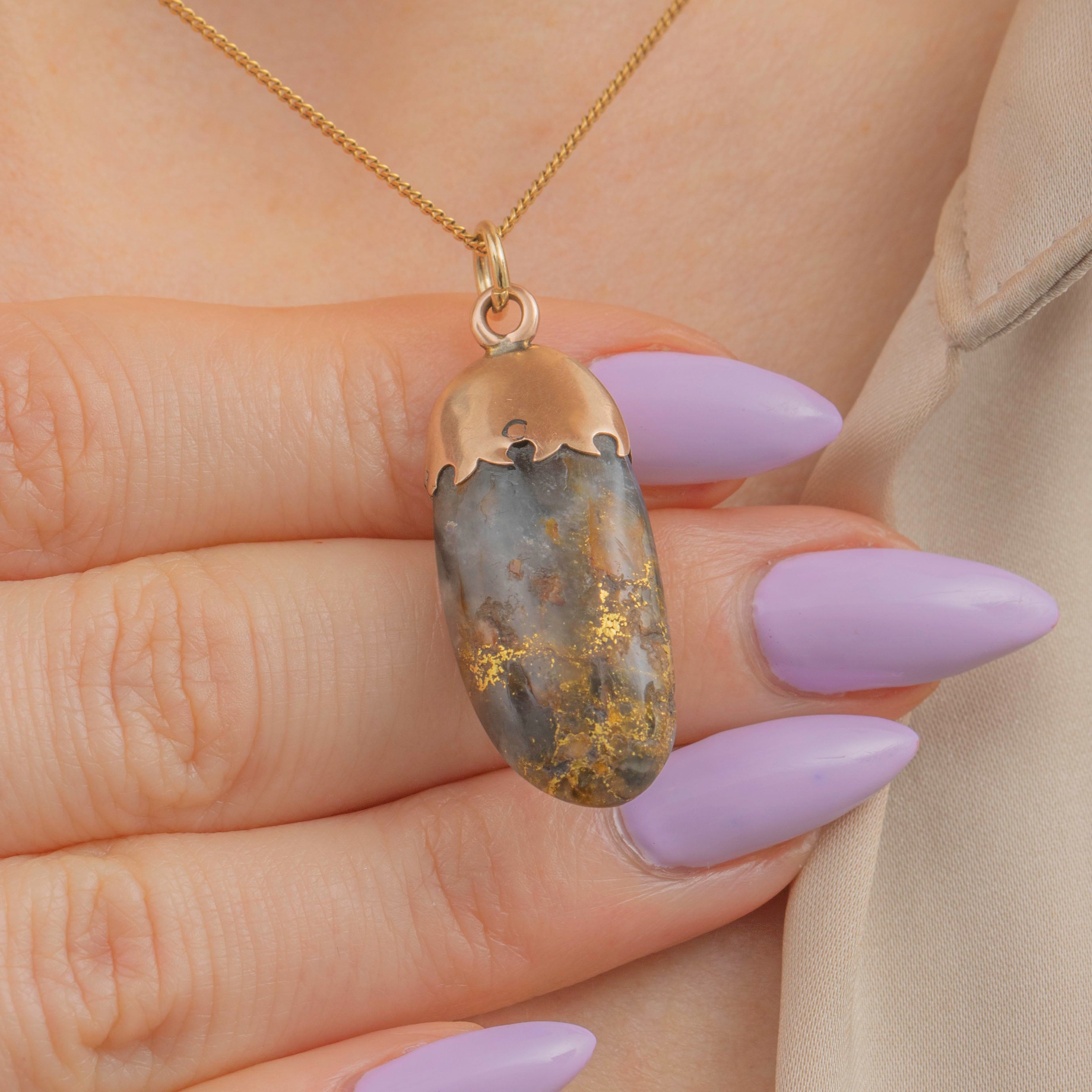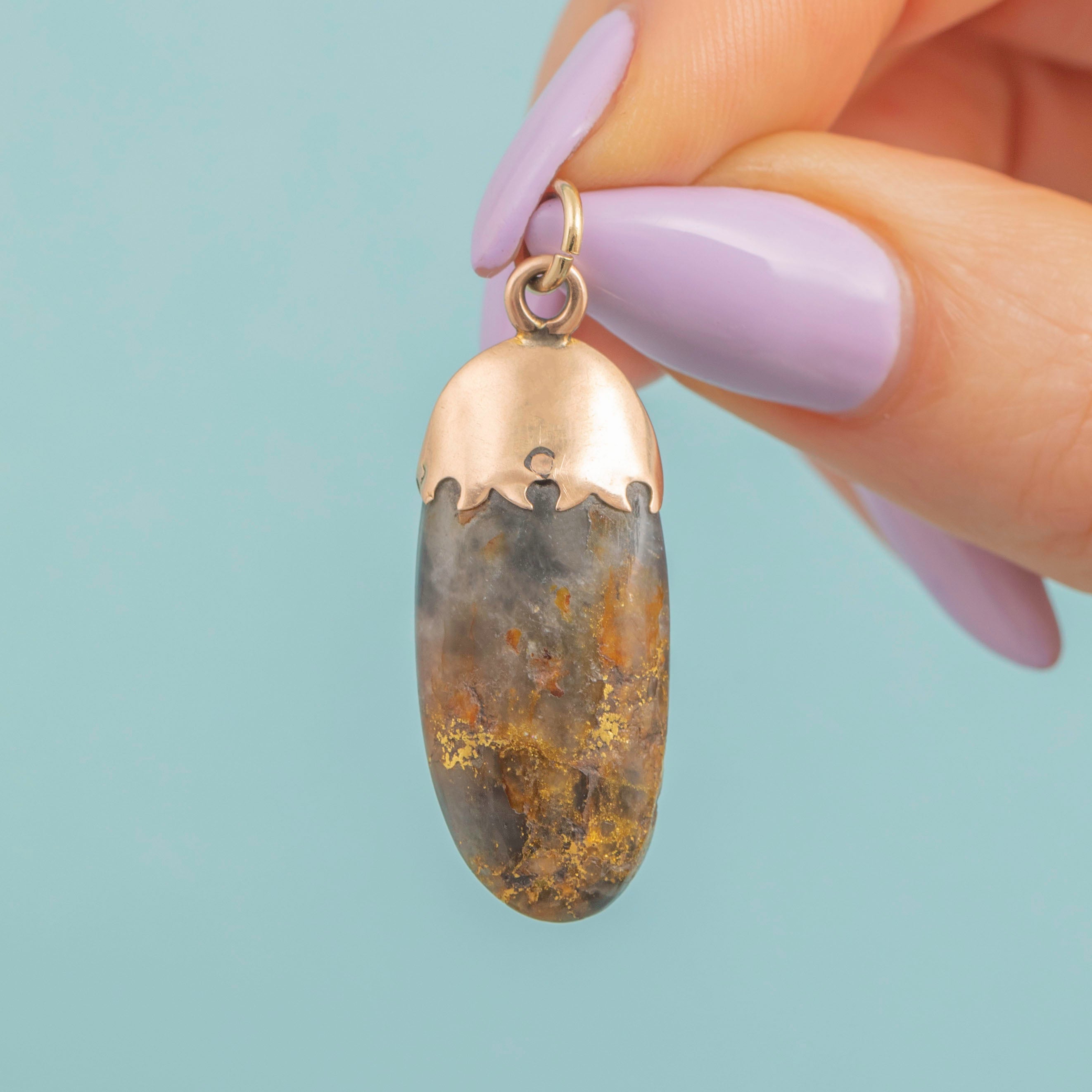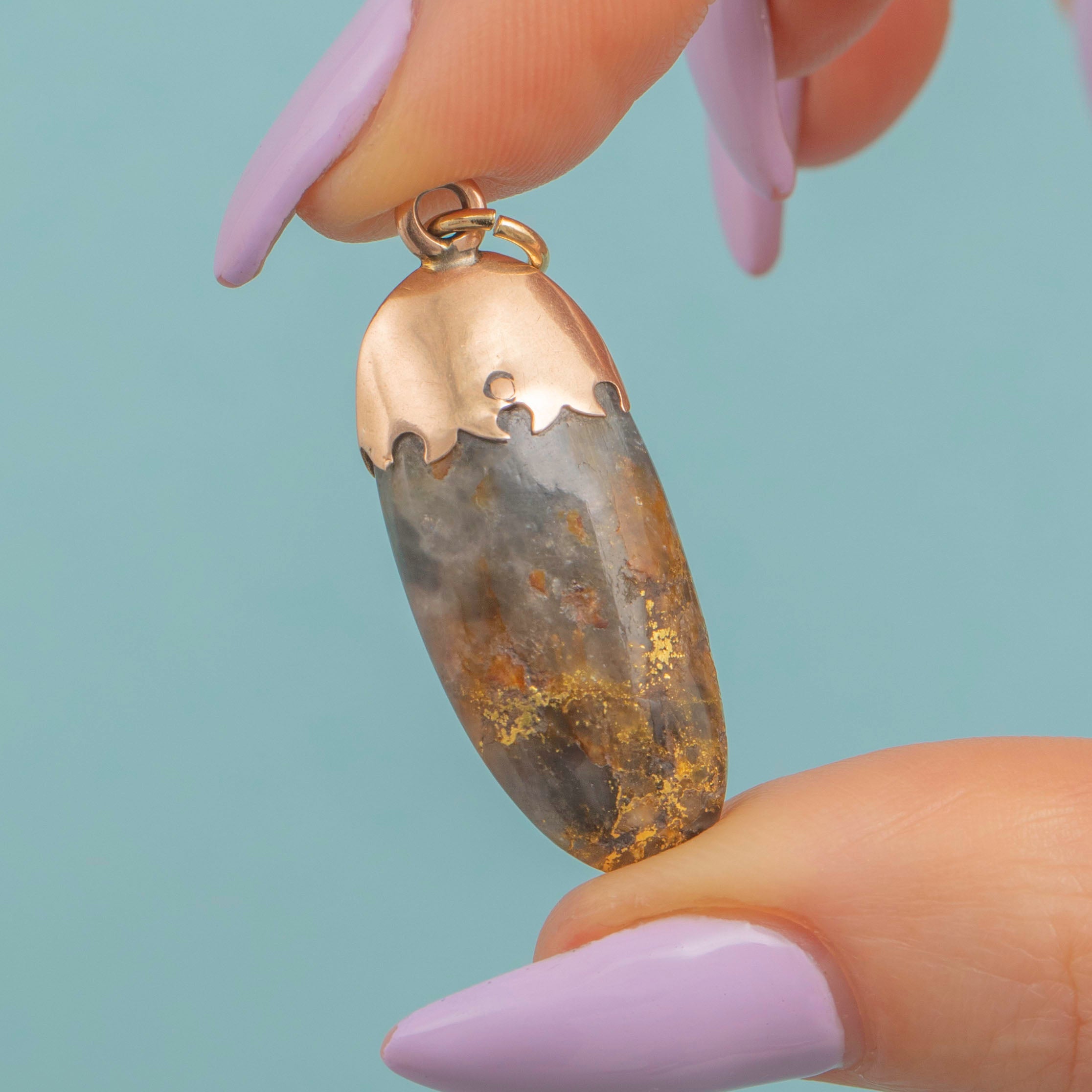 Antique 9ct Gold Pyrite-flecked Agate Pendant