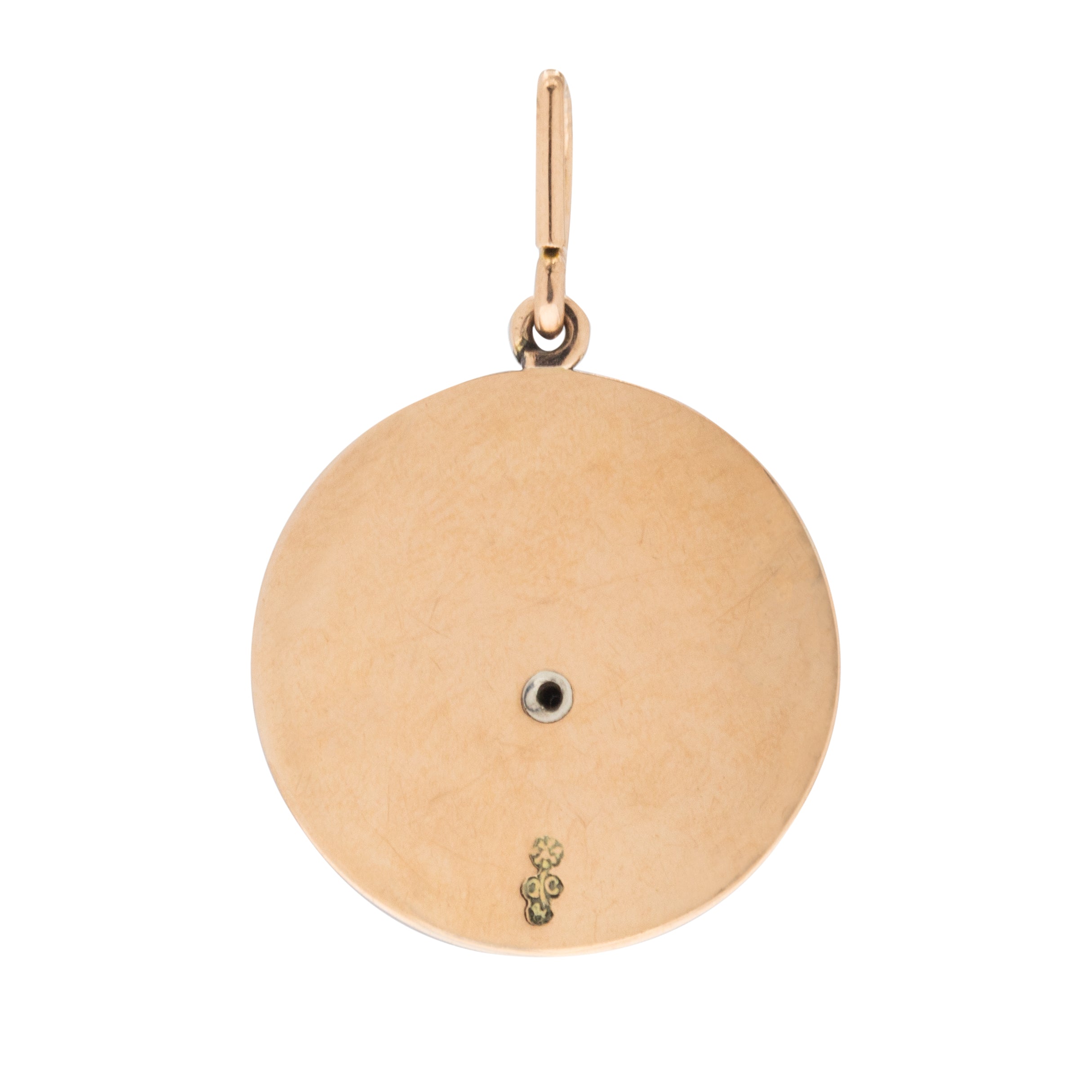 VERY GOOD. This antique 9ct Gold blue Guilloché enamel pendant is in very good condition! The blue Guilloché Enamel is in pristine condition with the crown embellishment securely affixed. Some light wear can be seen on white Enamel by the jump-ring, commensurate with age. When turned over, again there is some light surface wear, but her Child & Child makers mark is still visible adding plenty of charm to this Victorian Gold pendant!