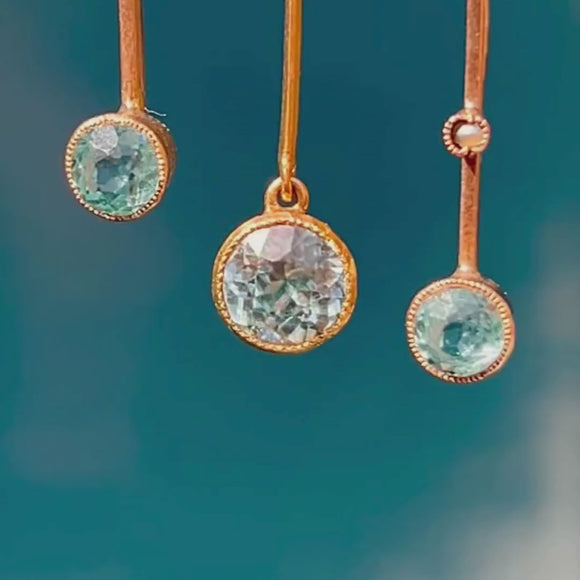 We have one word for this antique 9ct Gold blue Zircon drop pendant: spectacular! Her 0.64cts of starlite blue Zircons shimmer as they catch the light; this is an exquisite piece of Edwardian jewellery that anyone would be envious of.