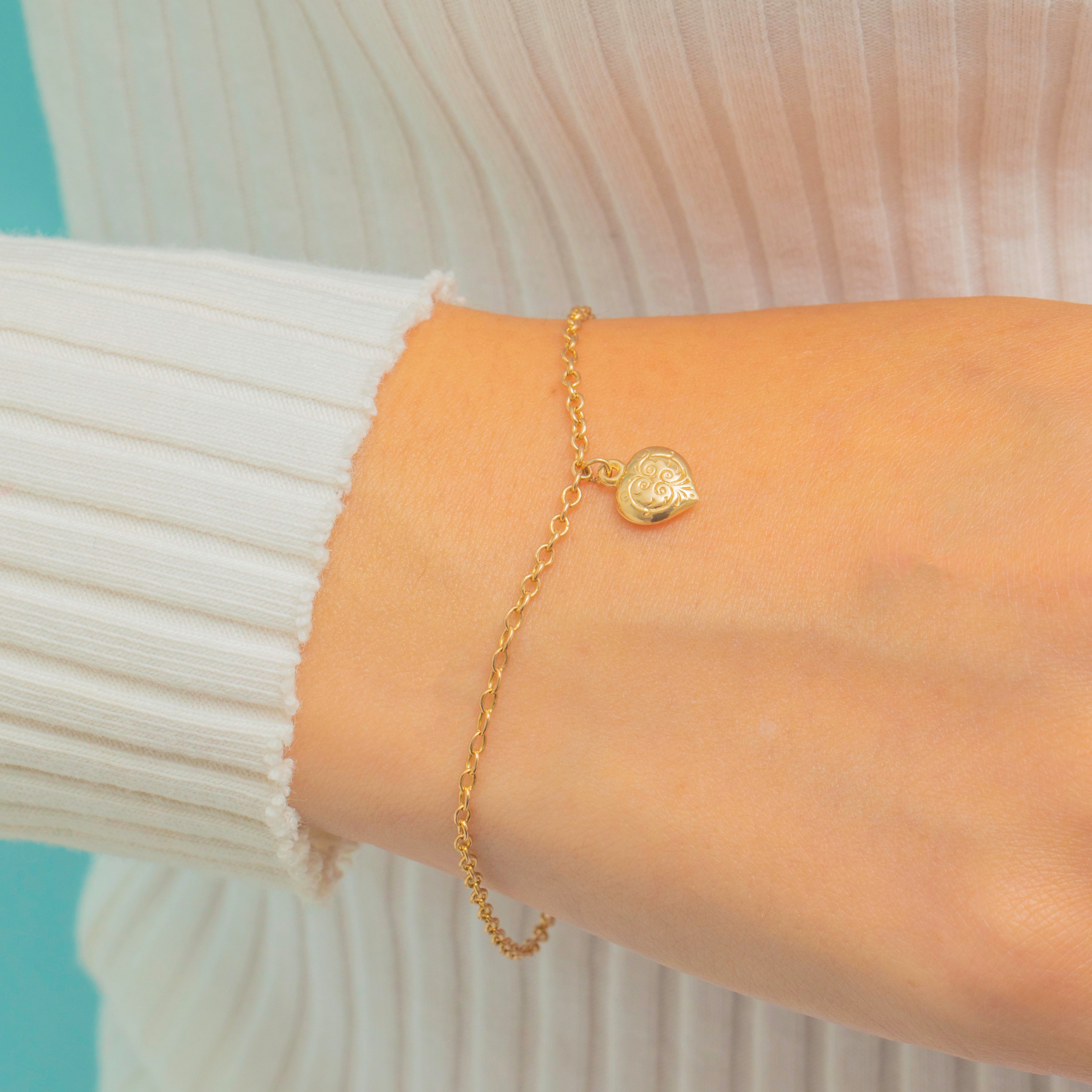 Antique 9ct Gold Bracelet with Engraved Heart Charm