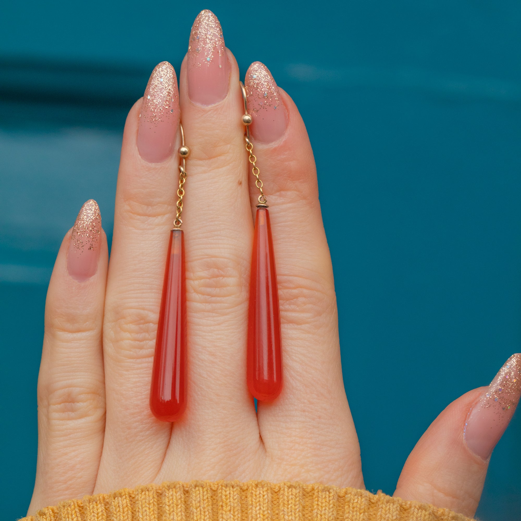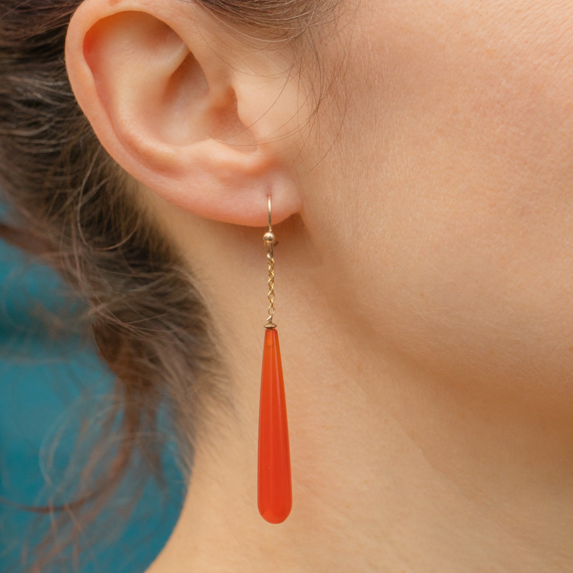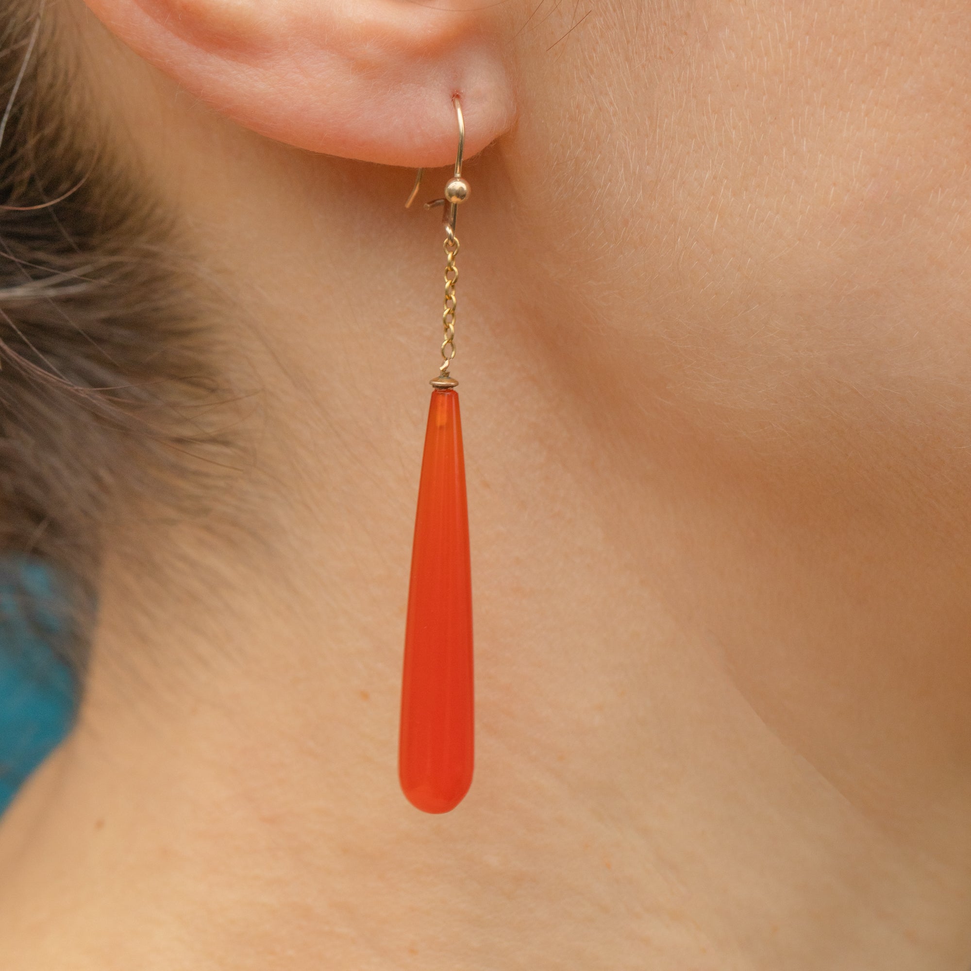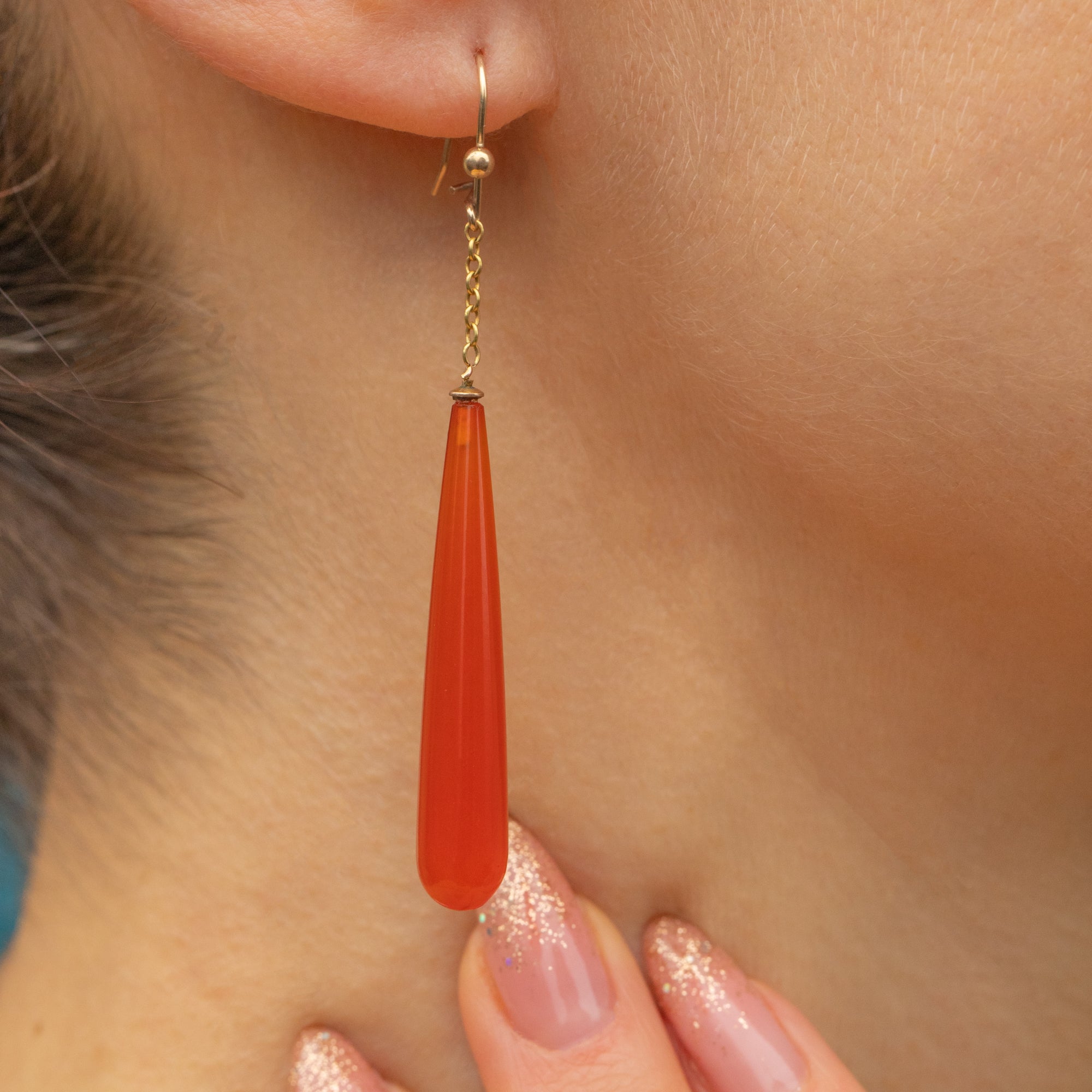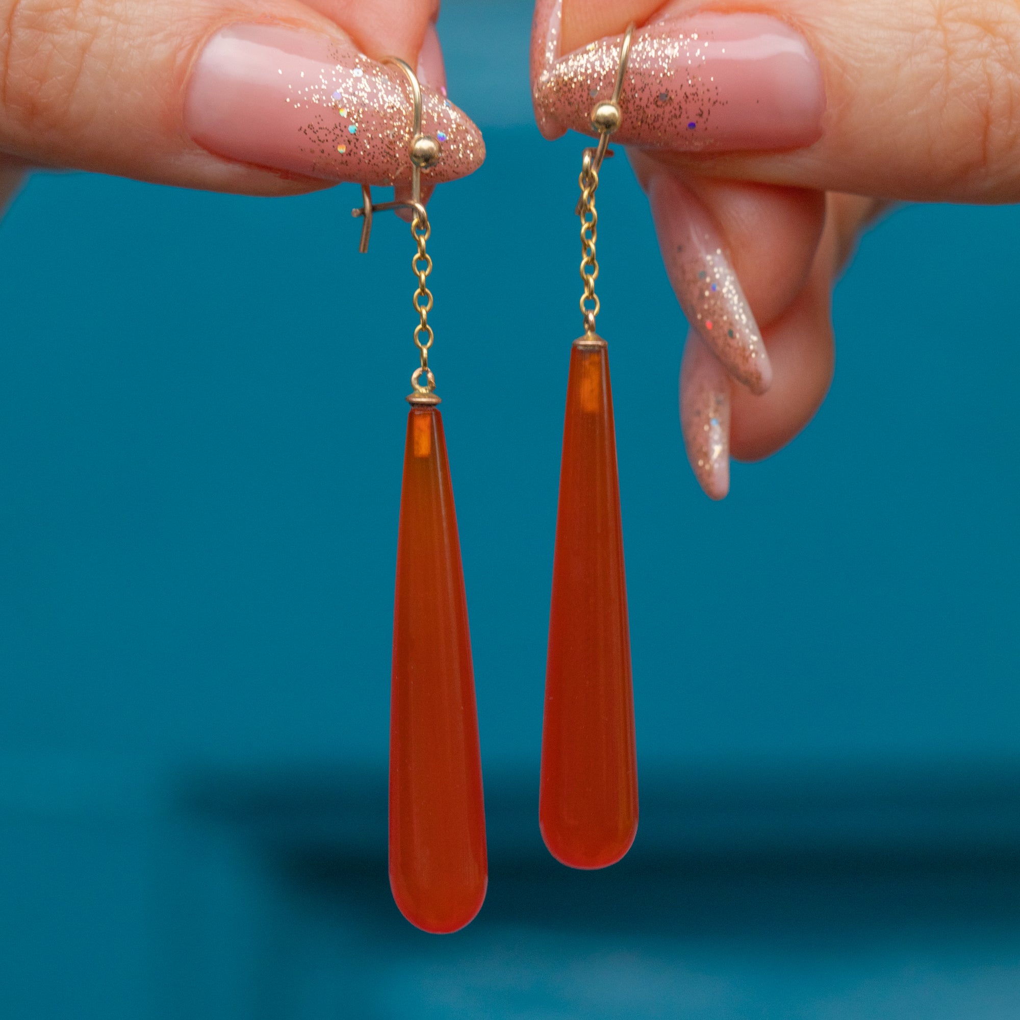 Carnelian drops measure 43.5mm long x 7mm wide (at widest point).