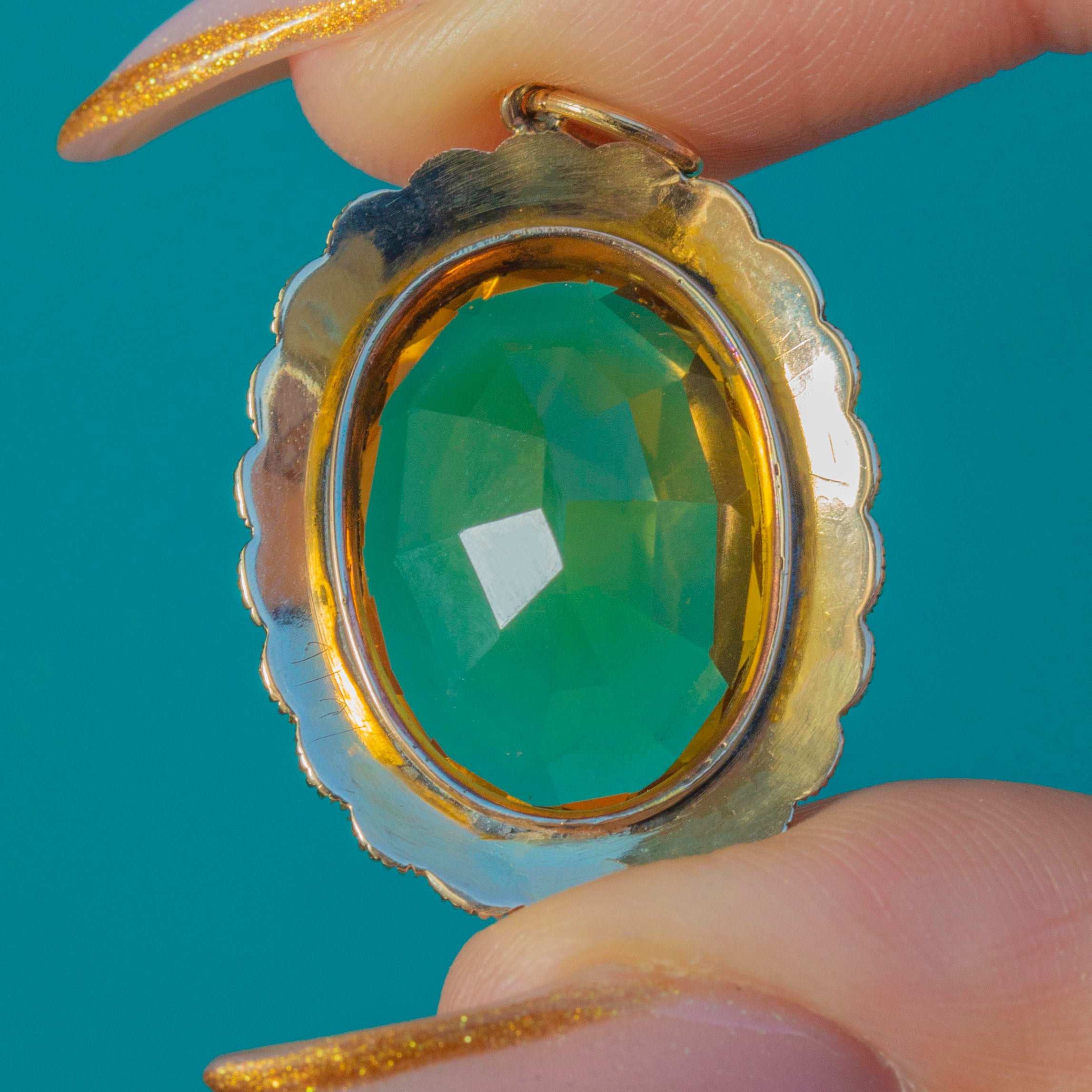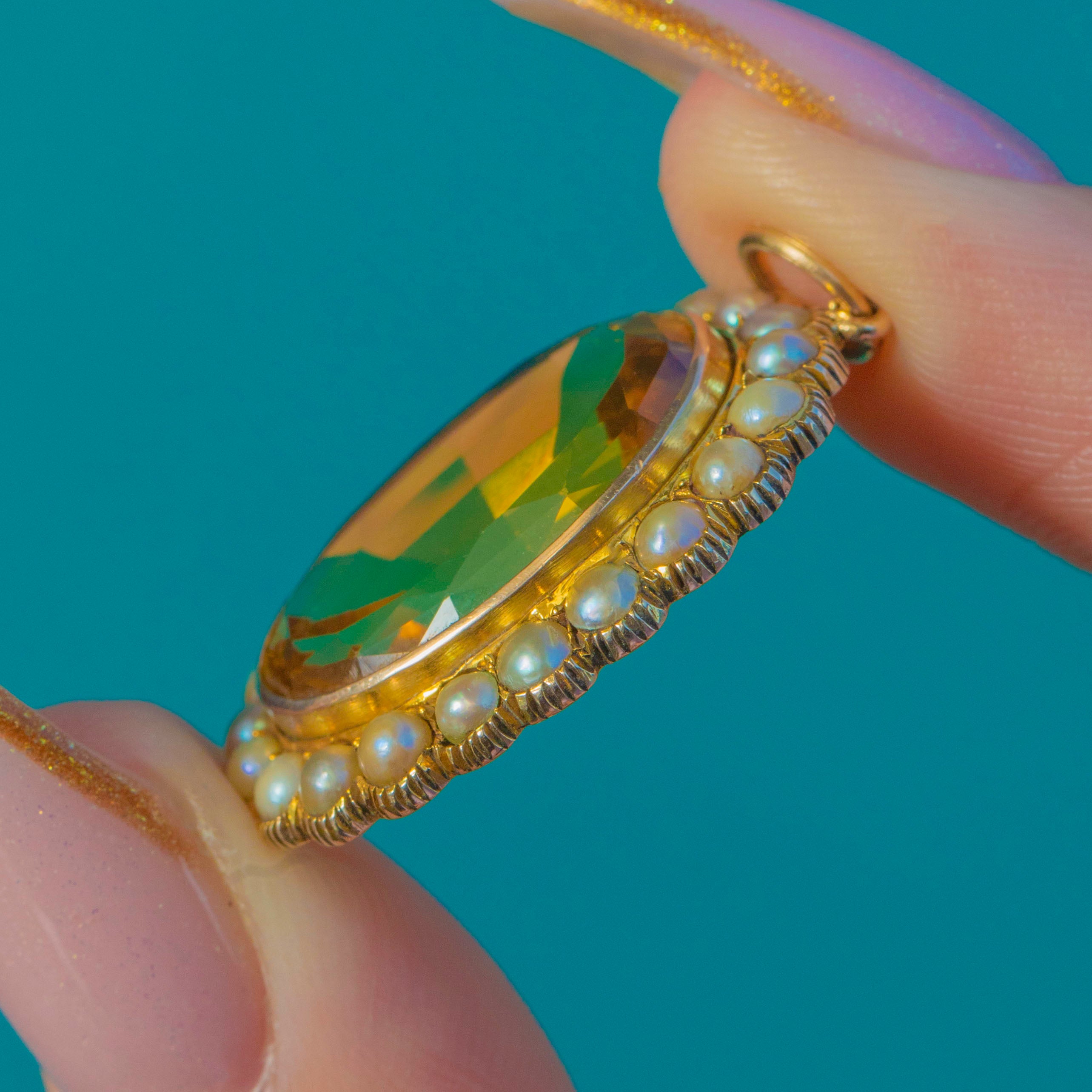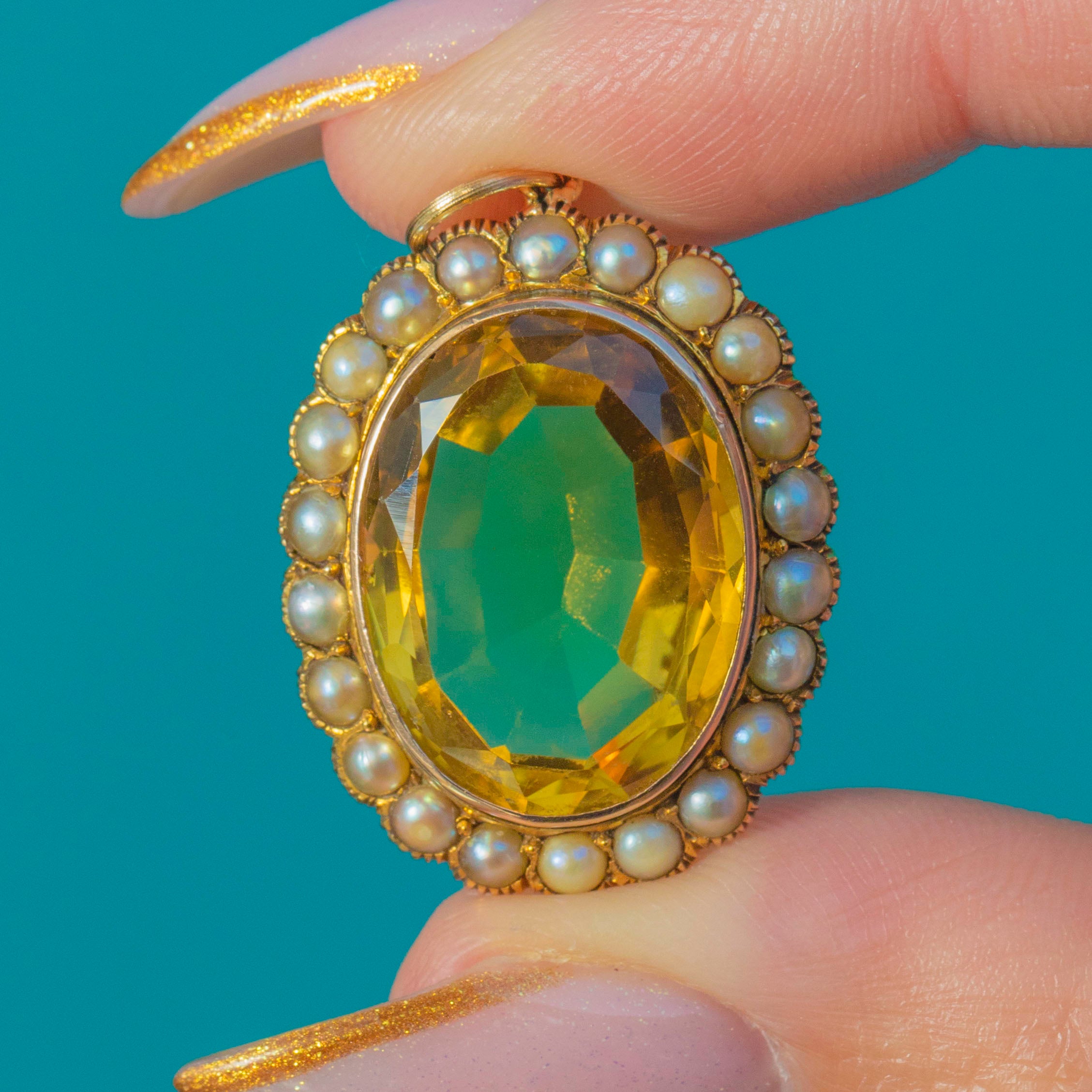 Antique 9ct Gold Citrine Pearl Cluster Pendant 10.40ct