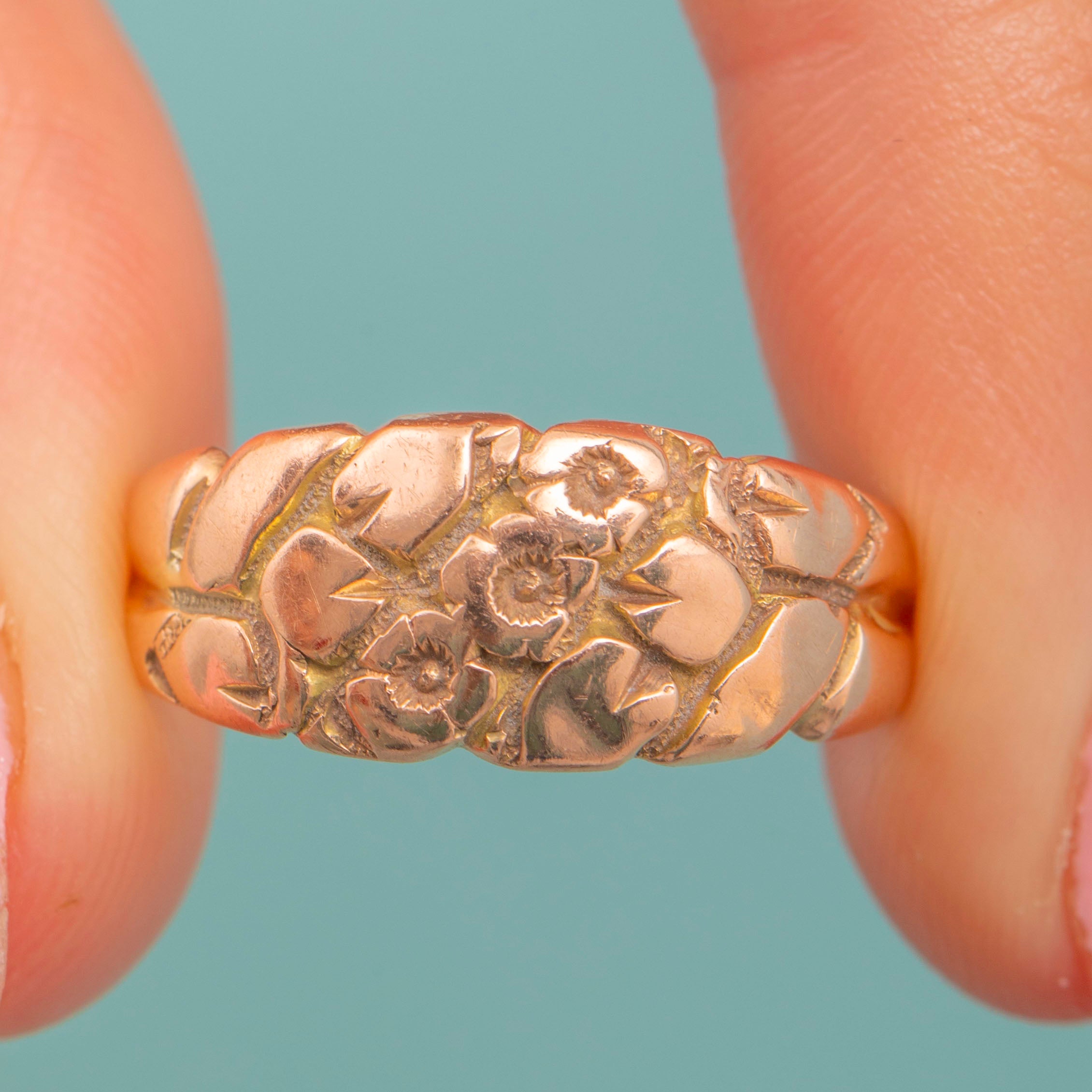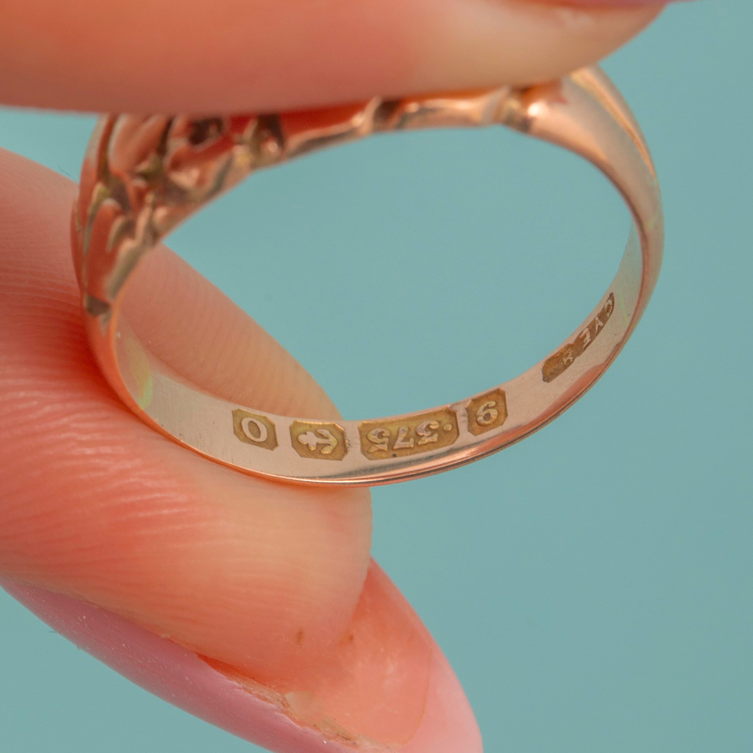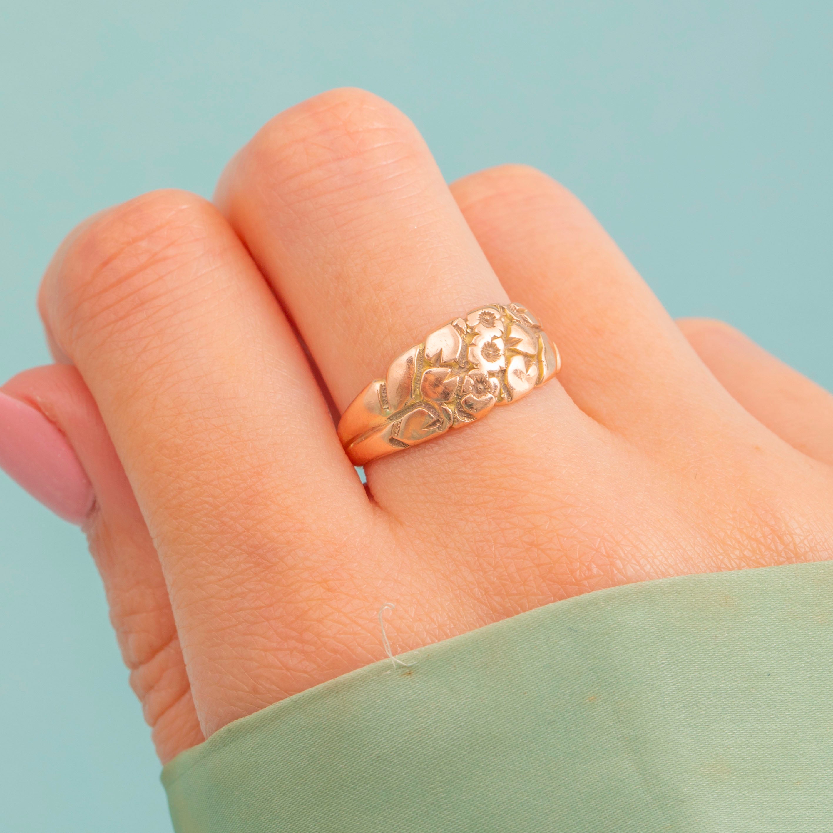 Antique 9ct Gold Floral Engraved Ring c.1913