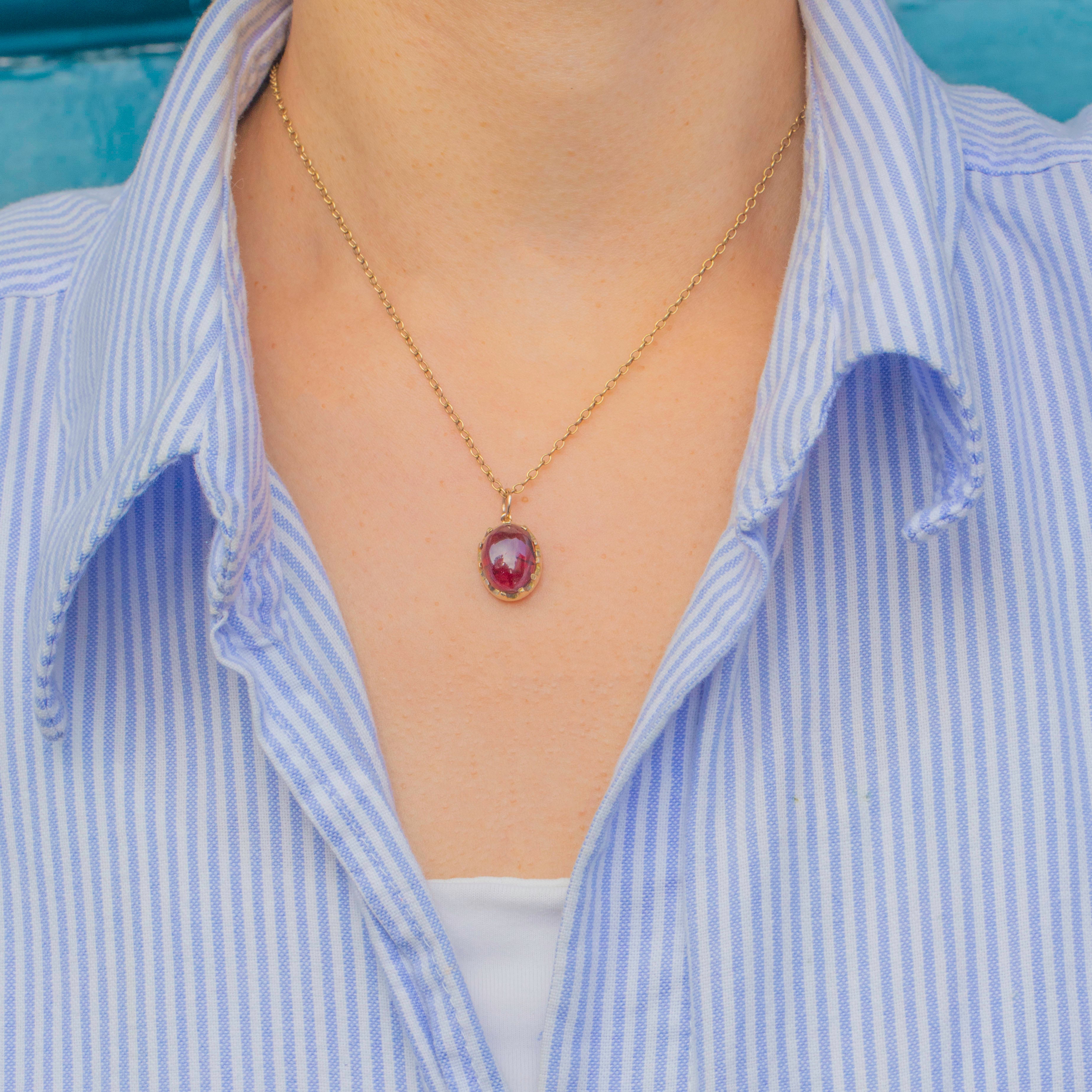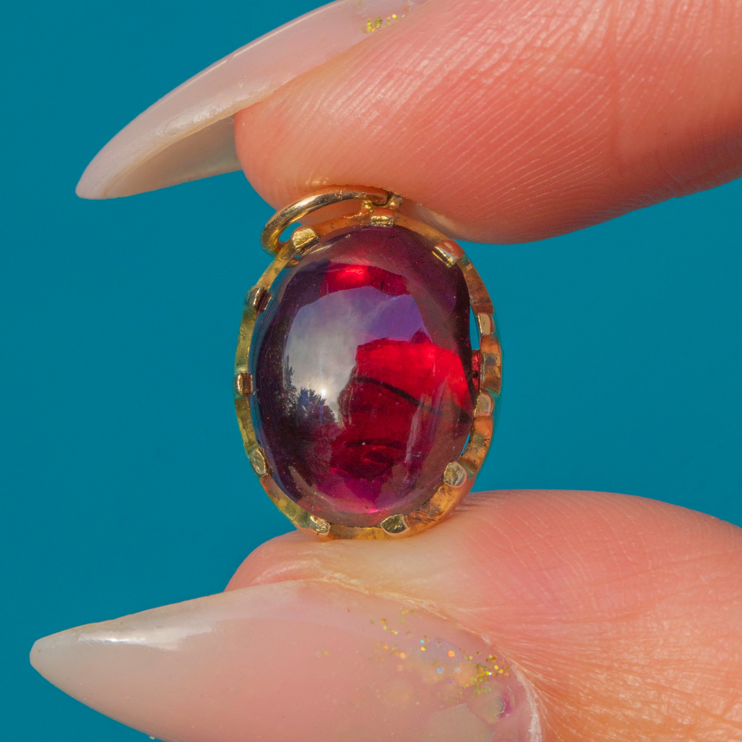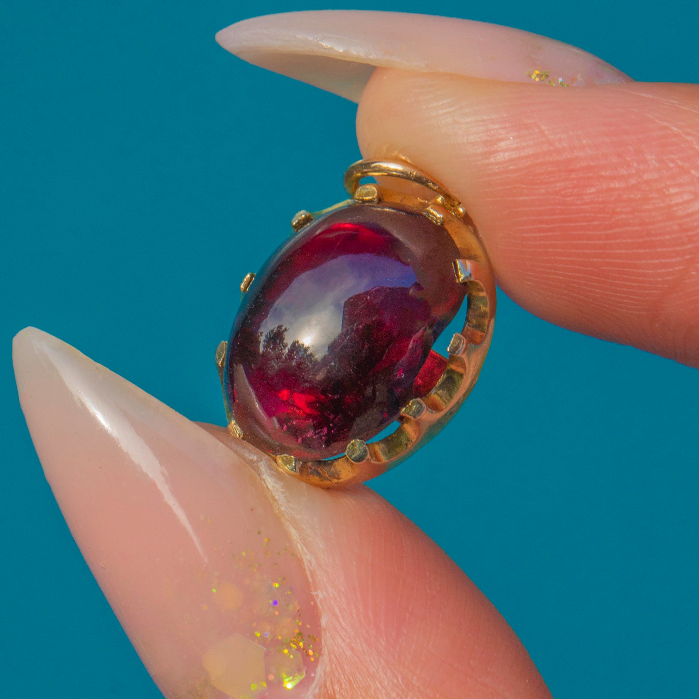 Antique 9ct Gold Garnet Cabochon Charm 1.06ct