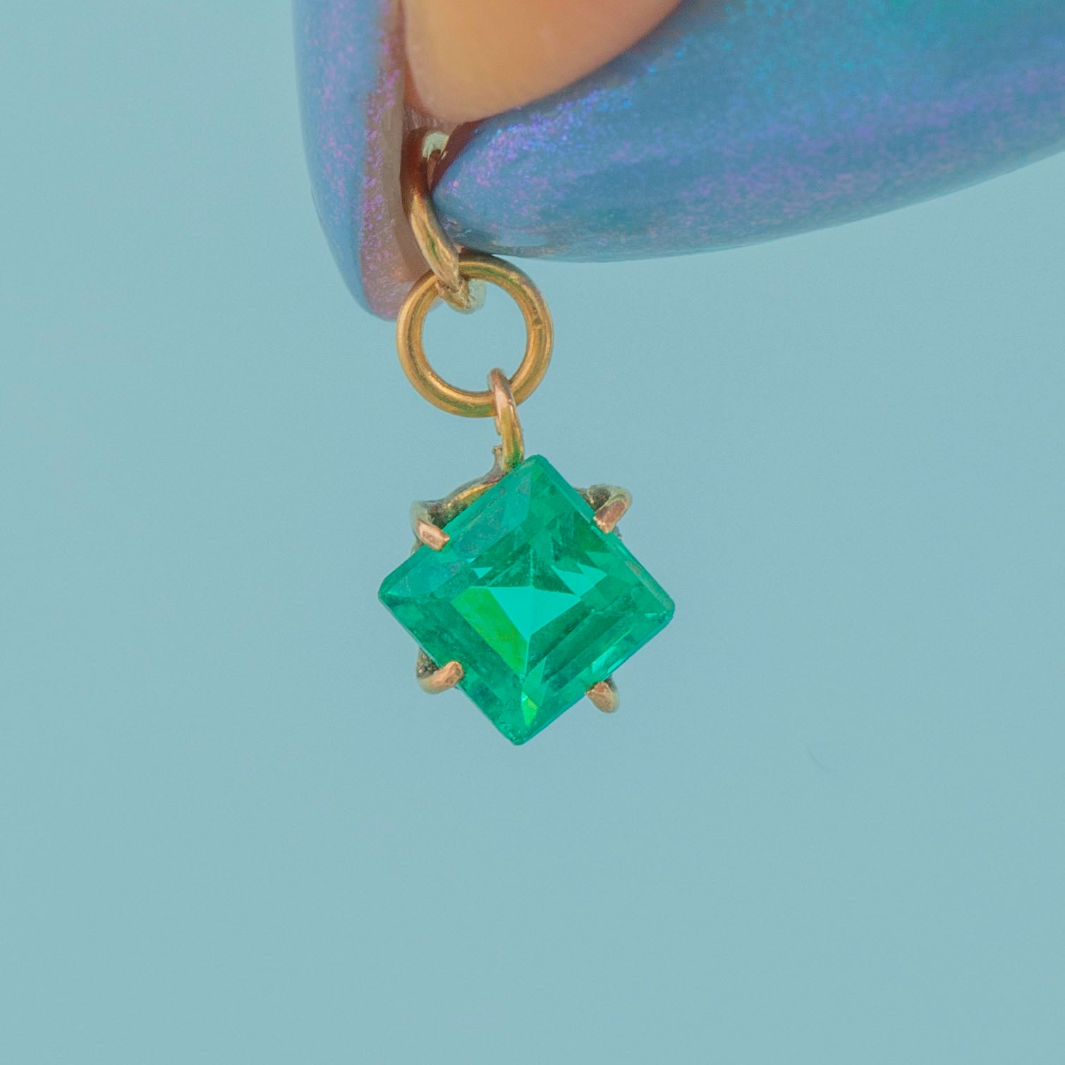 This elegant antique 9ct Gold Green Paste charm showcases a vivid emerald-green Paste stone set in a classic 9ct Gold claw setting. The finely cut Paste stone sparkles beautifully, mimicking the brilliance of a precious gemstone, with the warm Gold setting enhancing its rich hue.