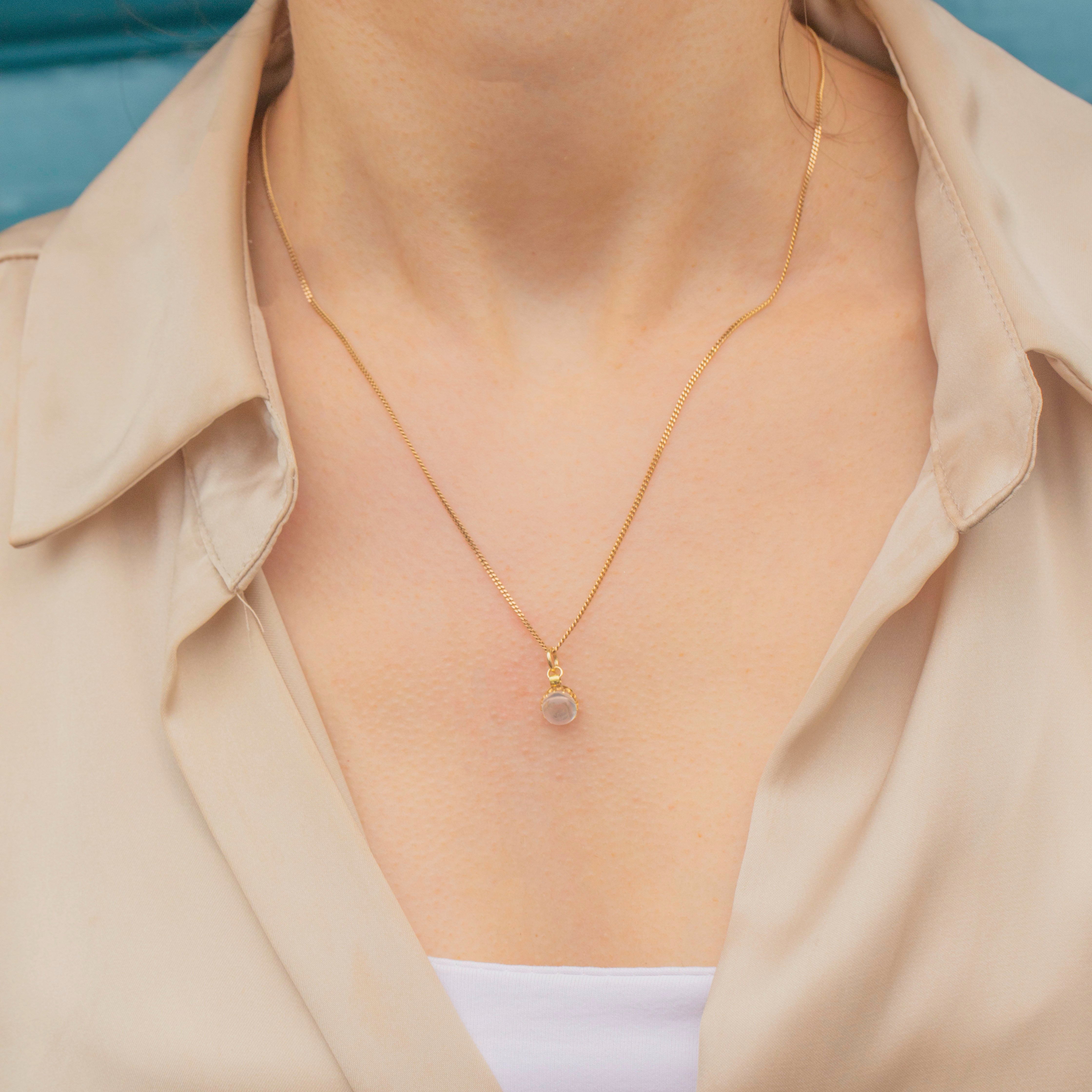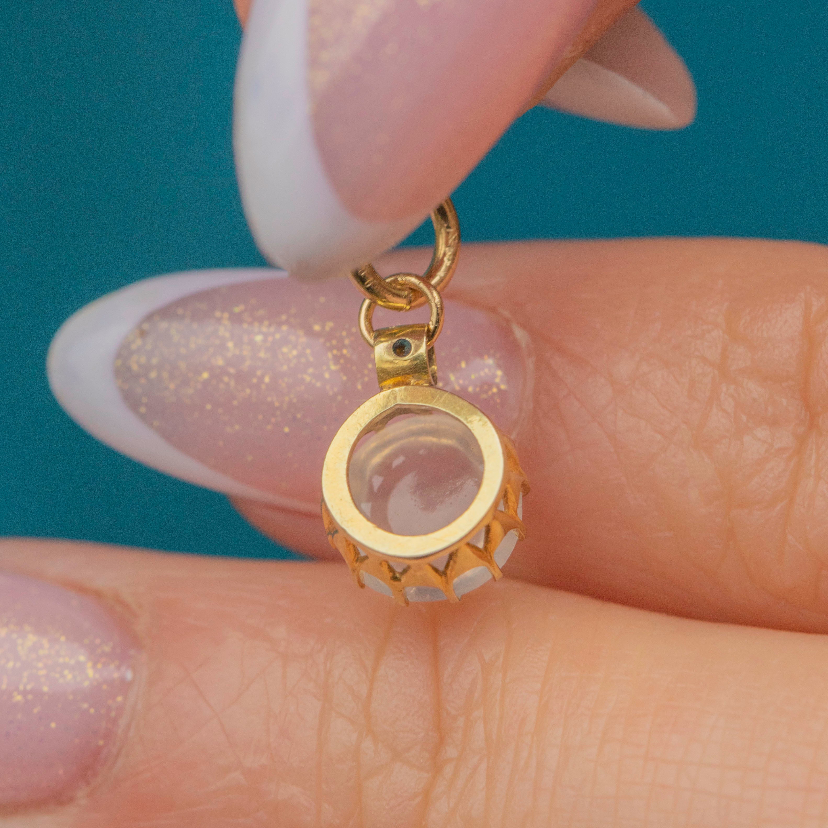 This Antique 18ct Gold Moonstone Cabochon Charm is an ethereal treasure to add to your trove! Her 1.05ct Moonstone cabochon flaunts an irresistible adularescence, with soft milky blue tones streaming across her smooth surface.