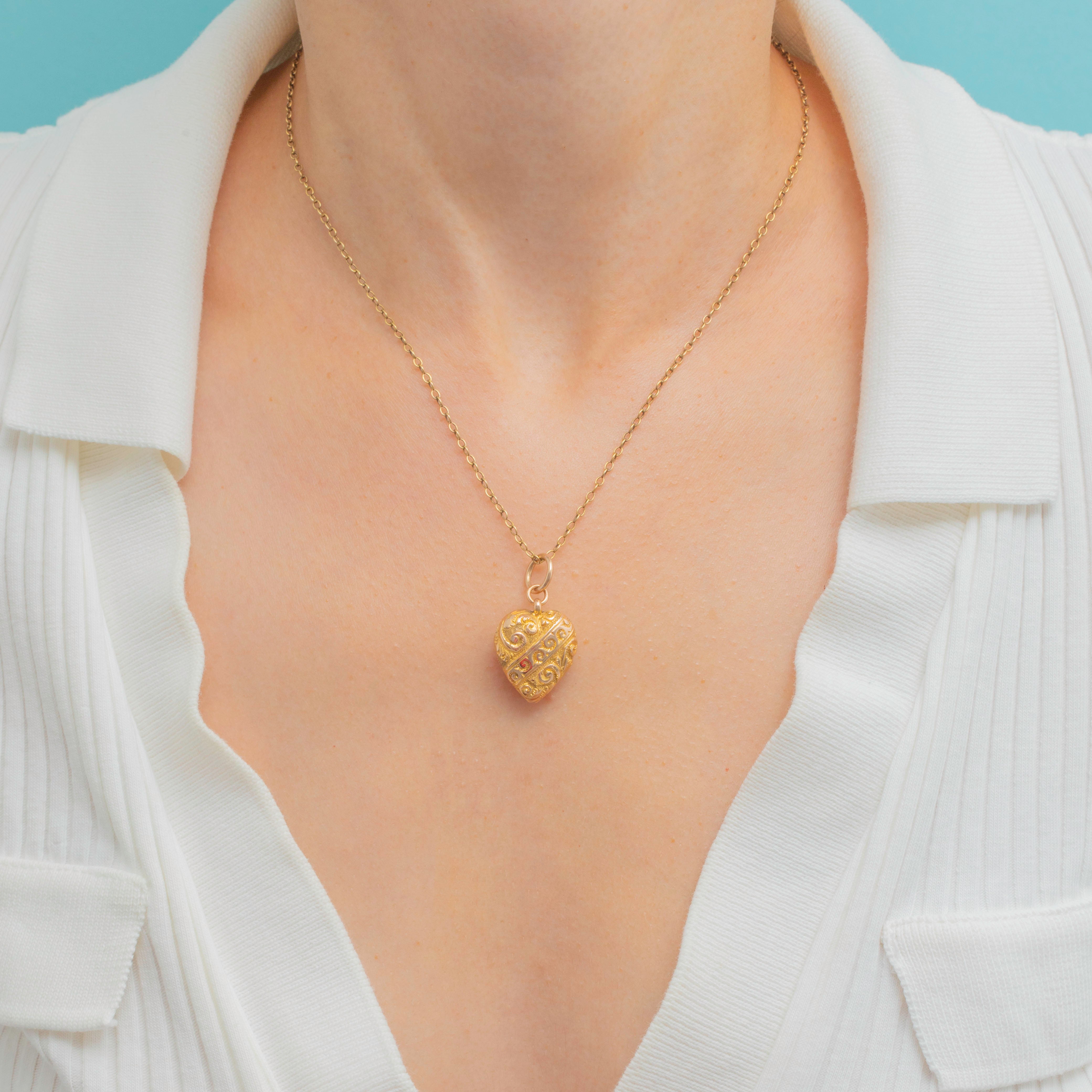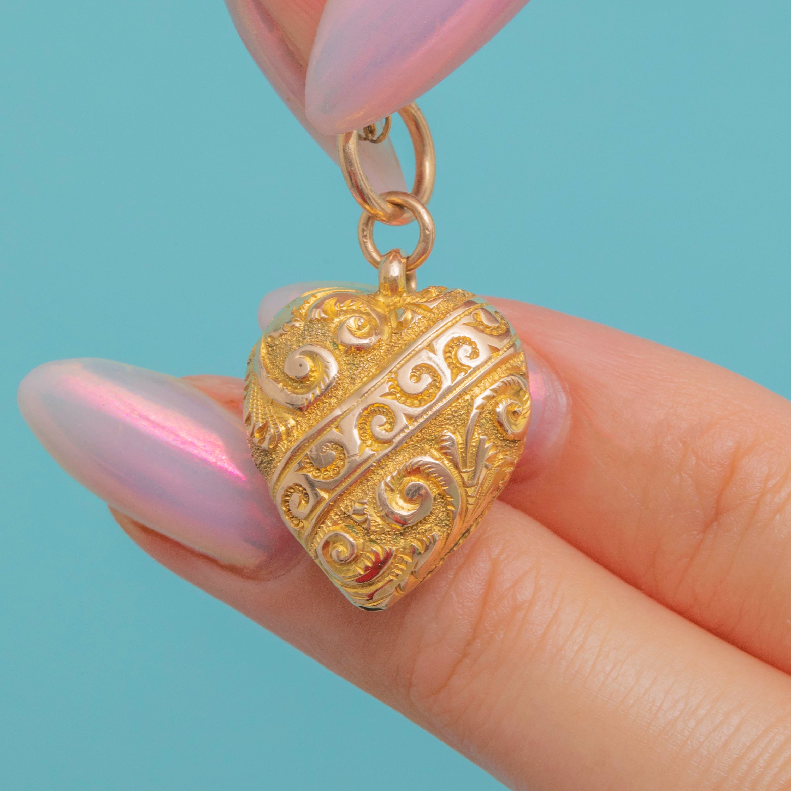 This gorgeous Victorian heart pendant has been crafted from solid, buttery 9ct Gold and carries with it ornate repoussé details that can be admired from every angle.