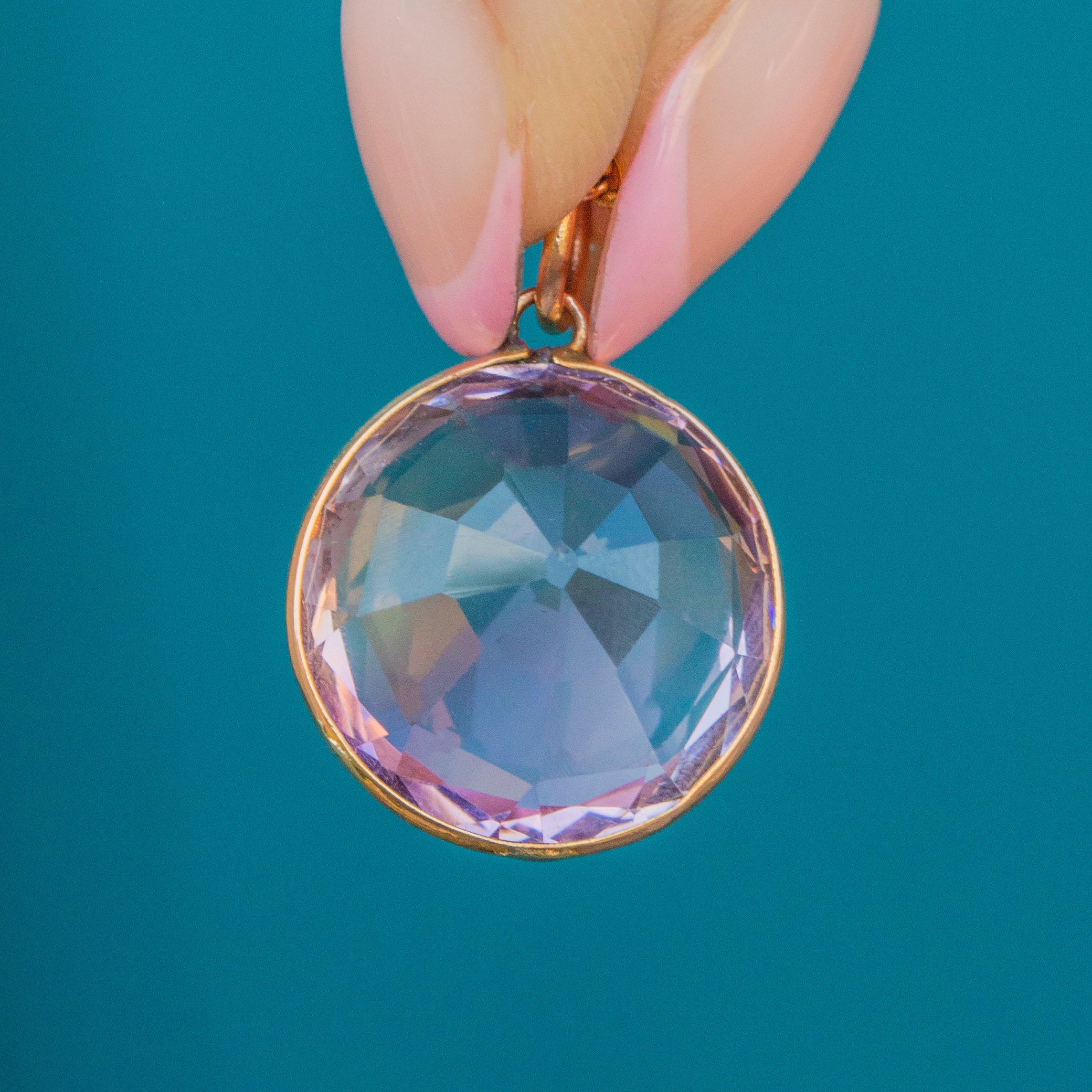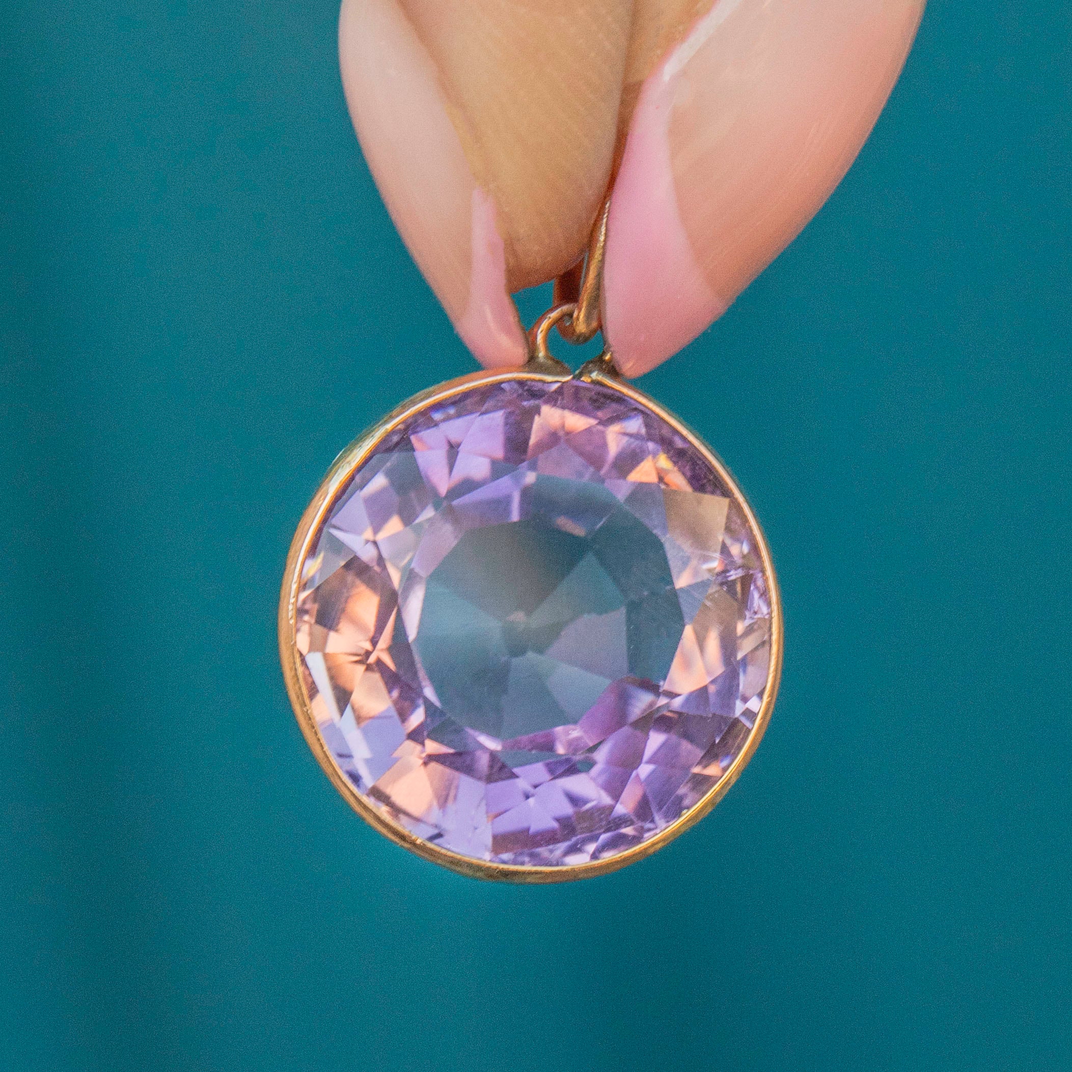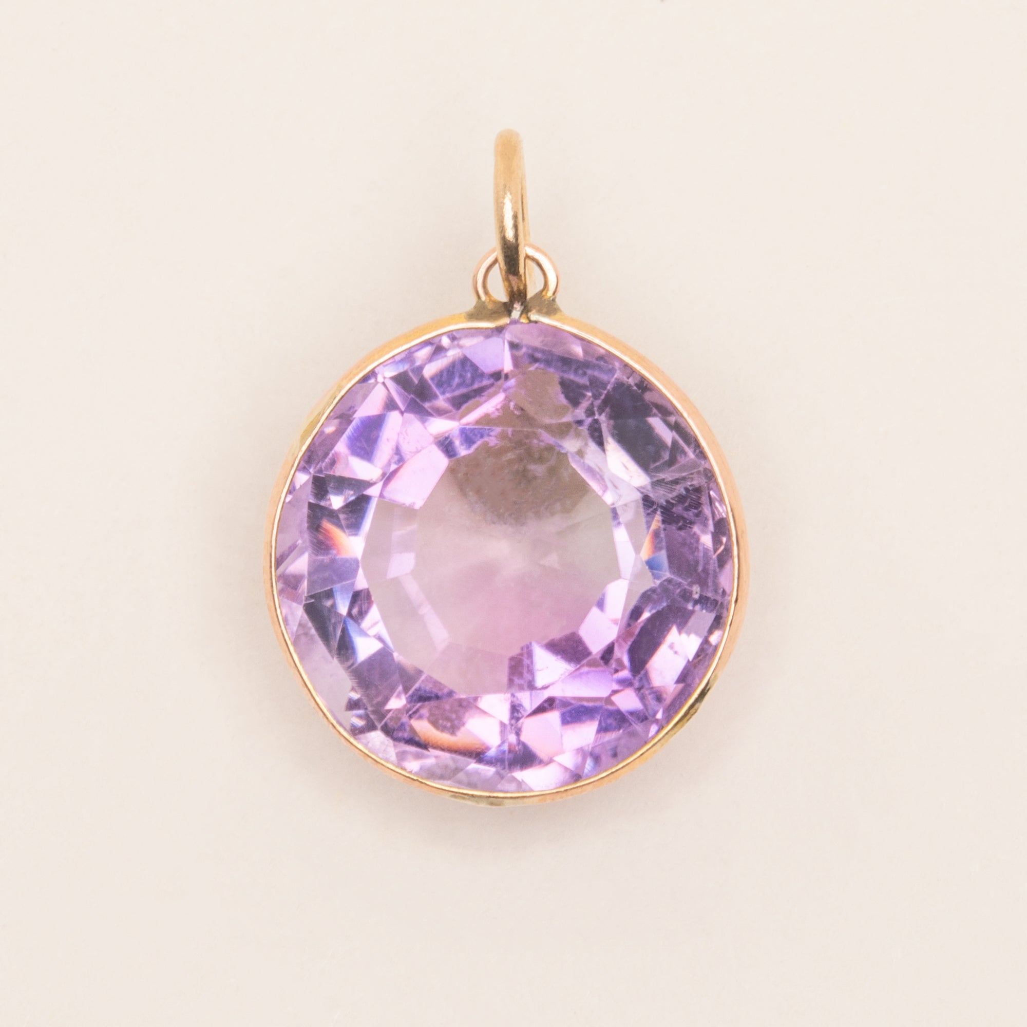 Antique 9ct Gold Round Amethyst Pendant, 8.20ct