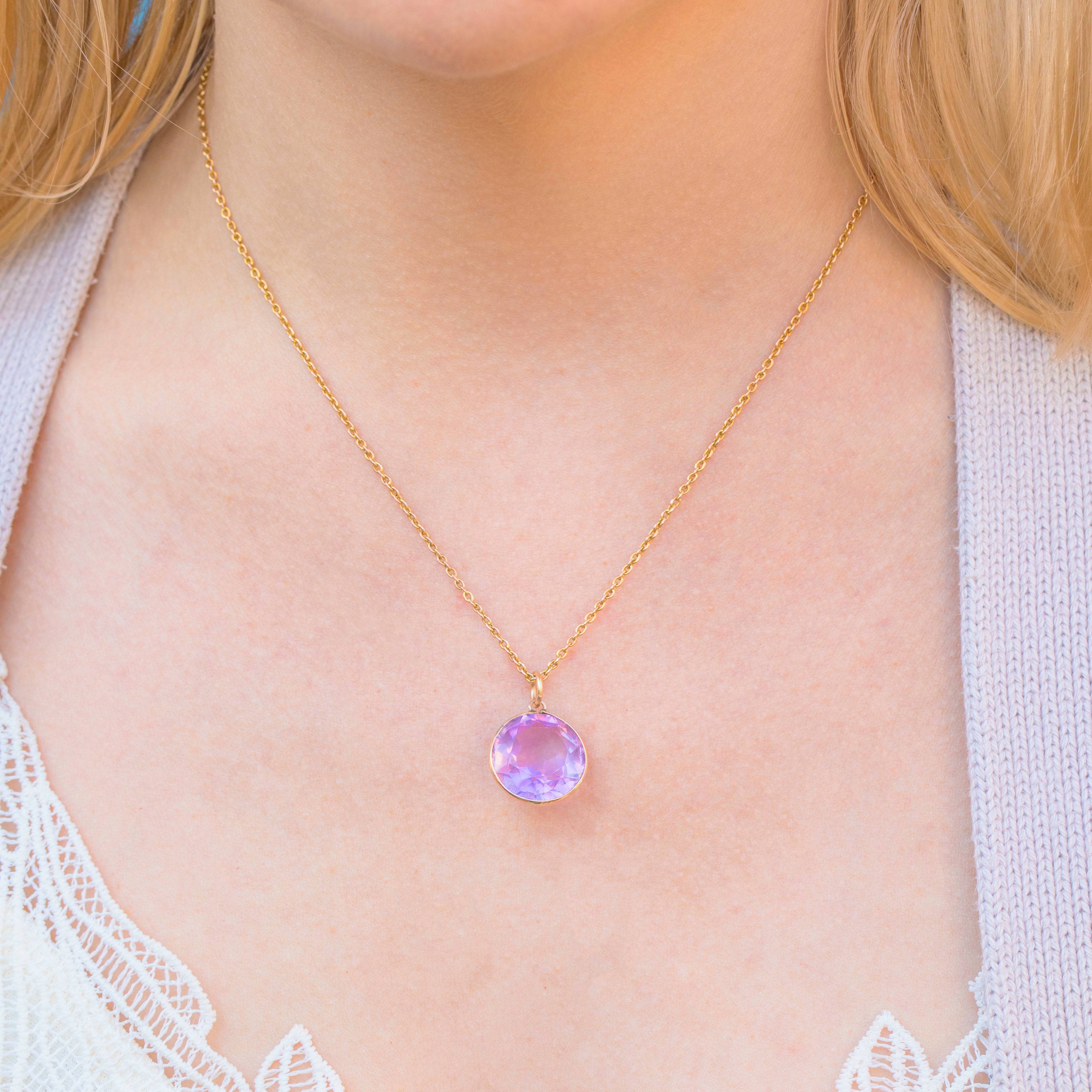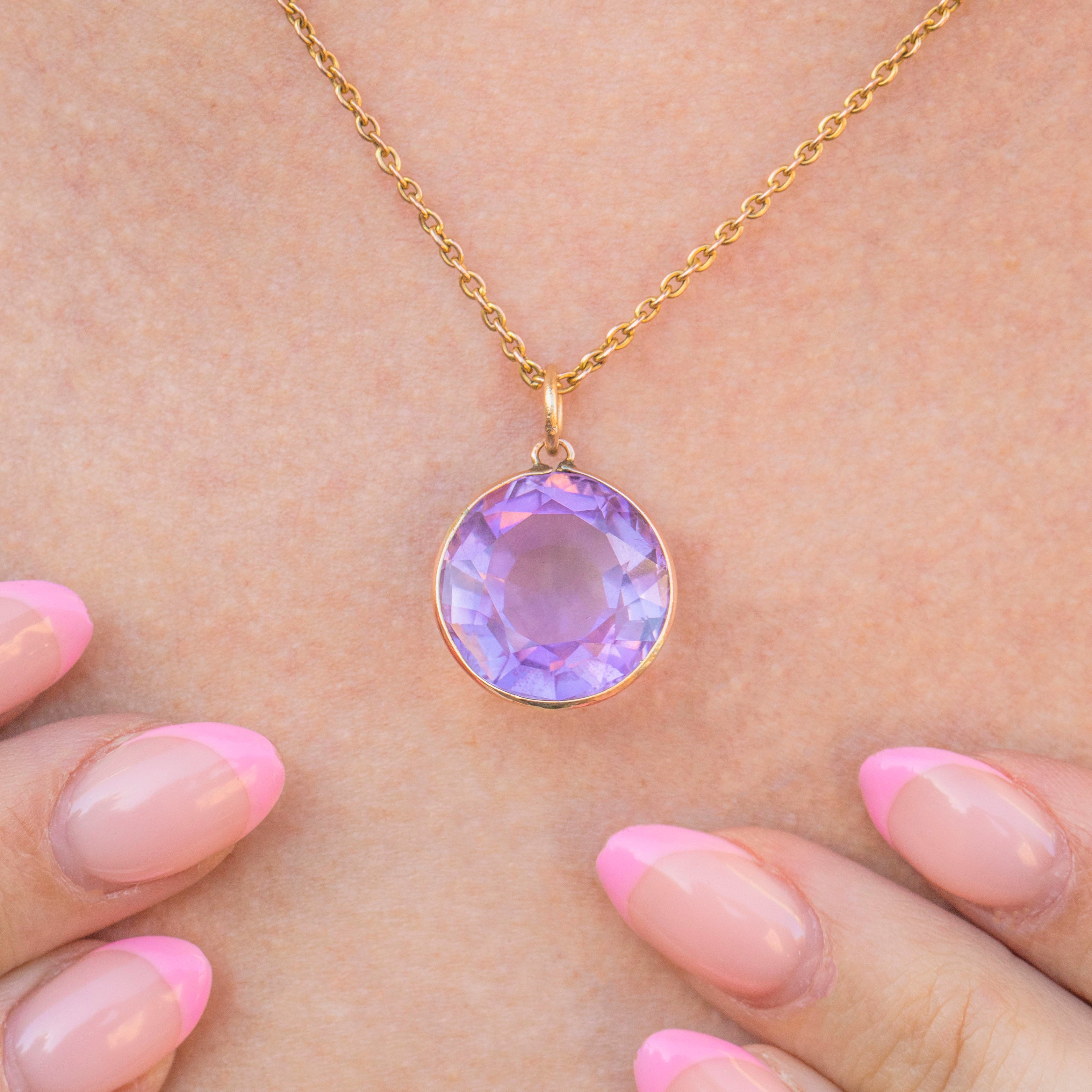 This antique 9ct Gold round Amethyst pendant will make a cute addition to your collection! Boasting a gorgeous lavender hue, the 8.20ct Amethyst is perfectly round and set neatly into a 9ct Gold bezel.