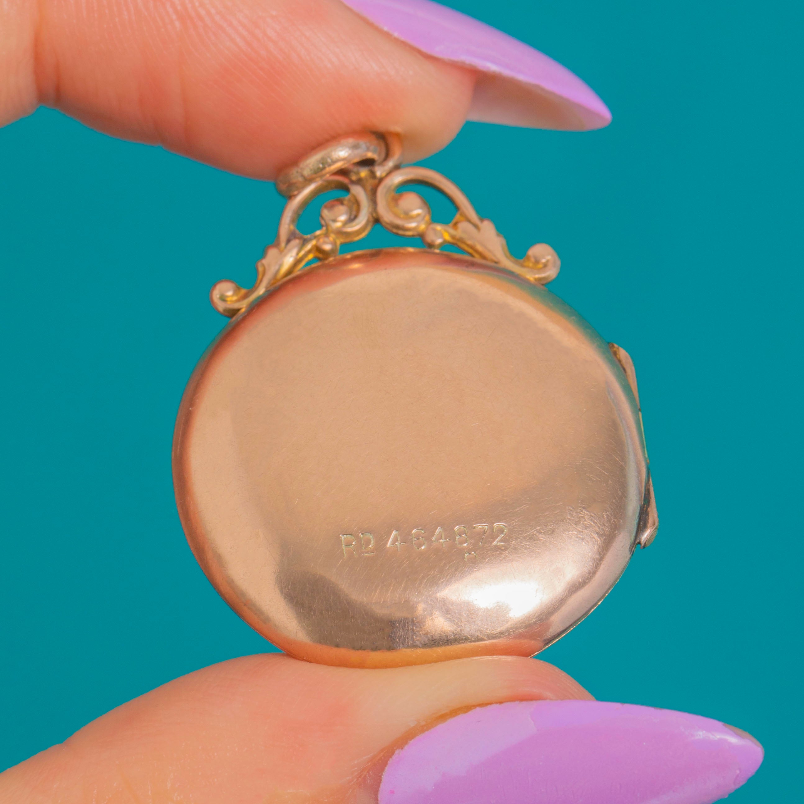 Beautifully crafted circa 1900, the locket’s rococo-inspired scrollwork and softly patinated Gold give it timeless charm.