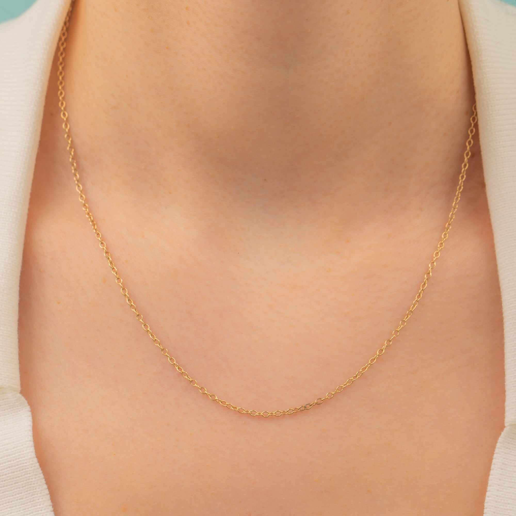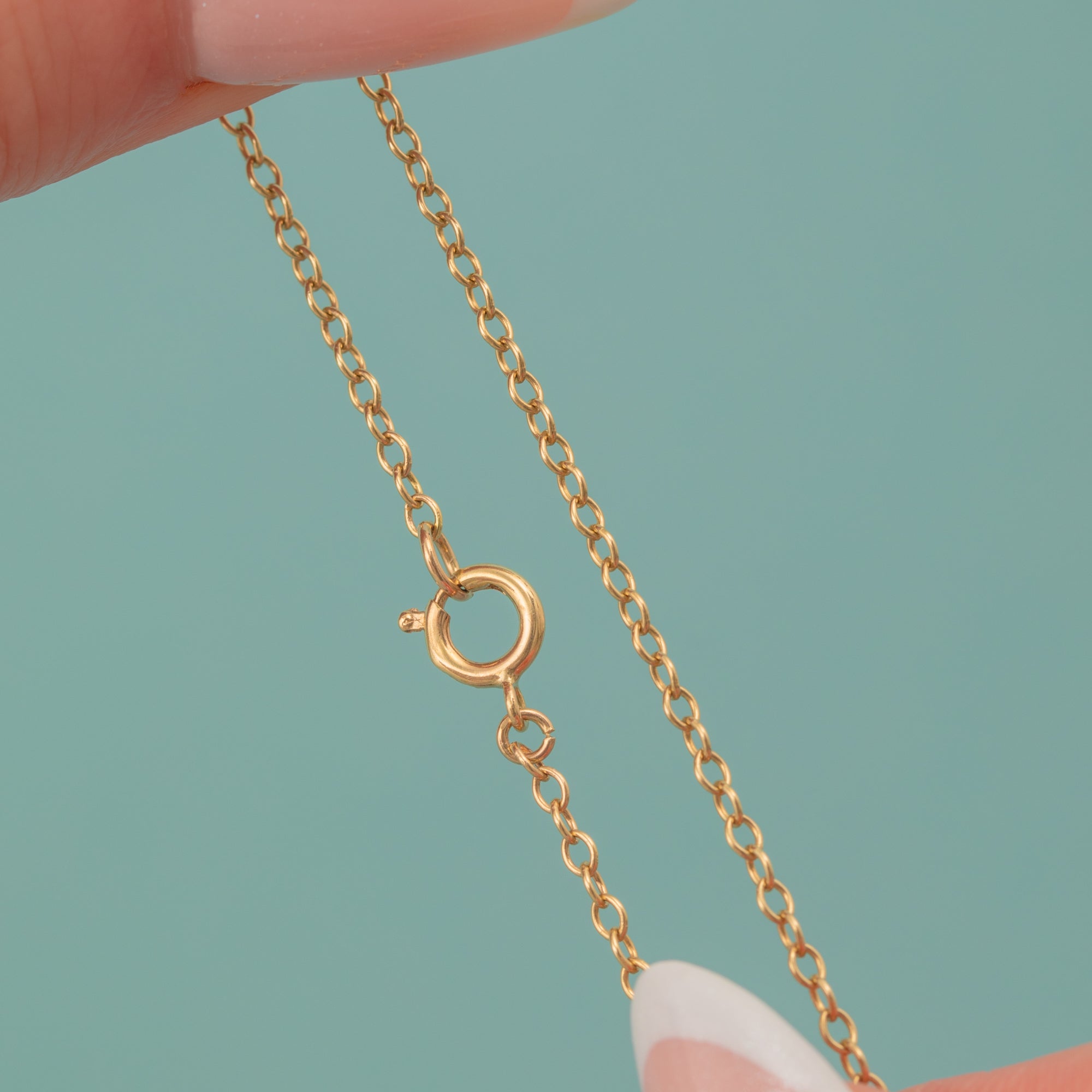 EXCELLENT. This antique 9ct Gold skinny pendant chain is in excellent condition throughout. Each link is perfectly formed and securely connected to the next, and the bolt-ring is in fine working order. A must-have for your collection!