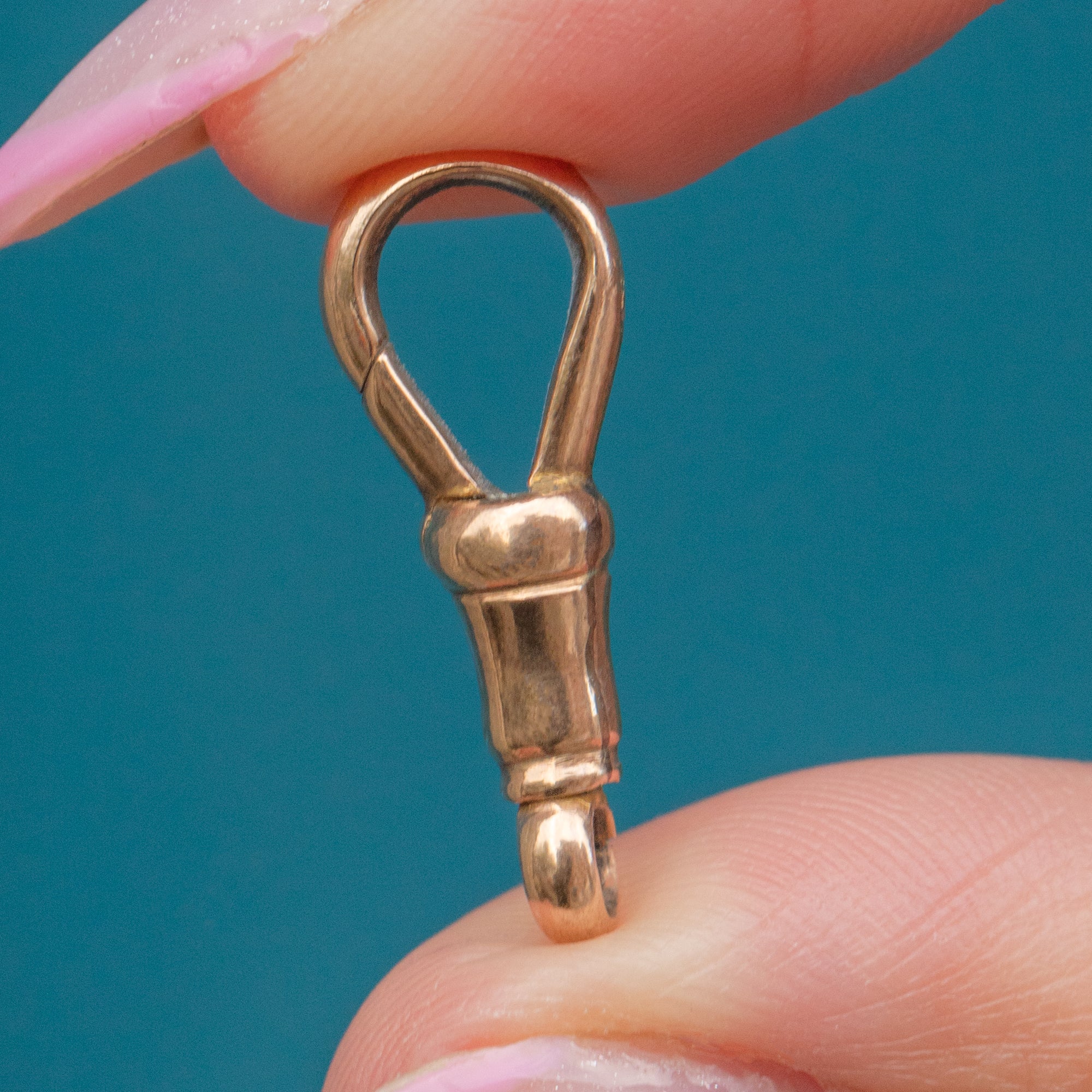 This charming Victorian 9ct Gold dog clip is a classic antique accessory, ideal for attaching charms, fobs or pendants to your favourite skinny Gold chain or Albert. The swivel mechanism works smoothly, and the rich hue of the Gold gives it timeless appeal.