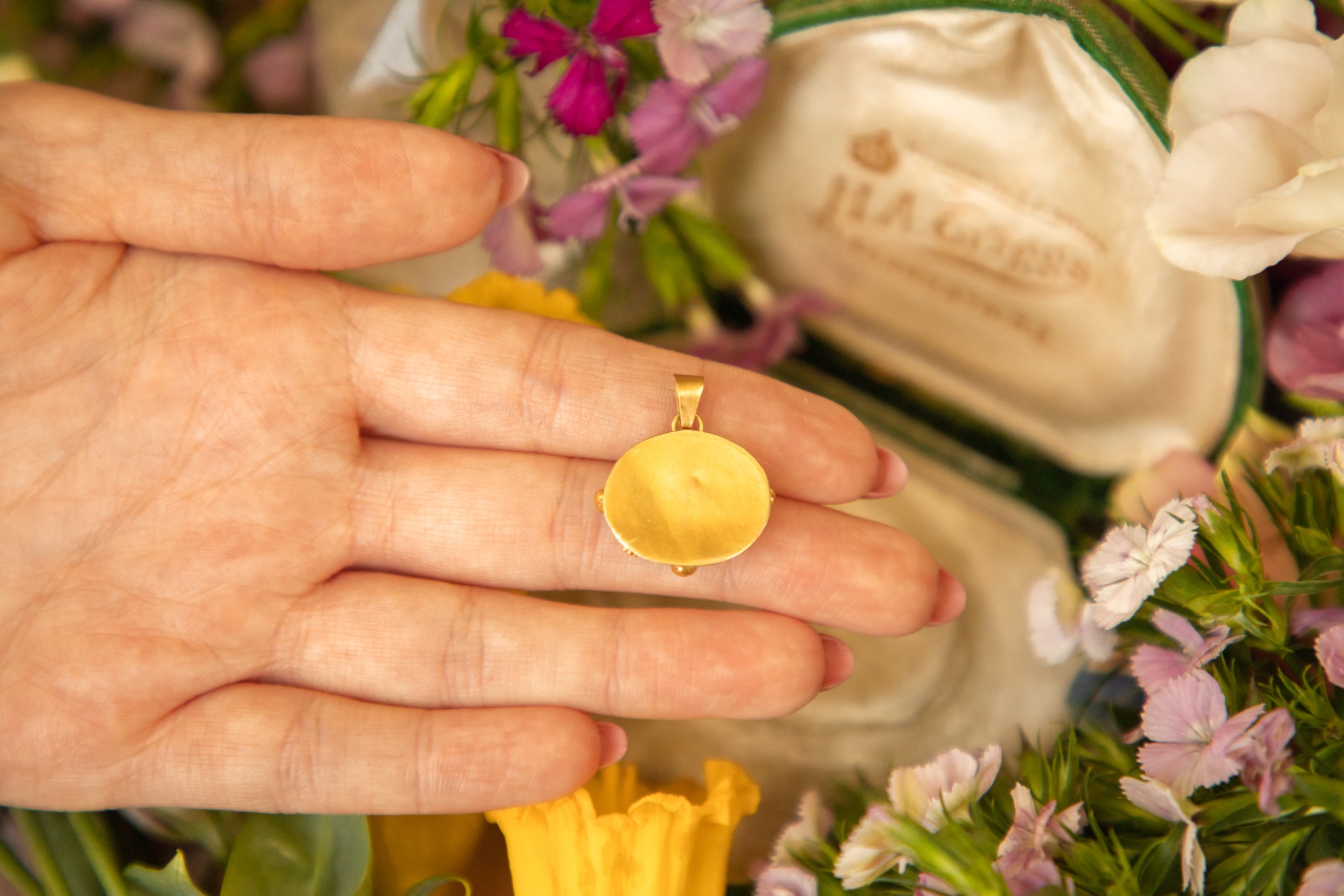 Perfect for any astrology enthusiast in your life, she would make a gorgeous gift for a Taurus baby! The rich burnt orange hue of the Agate pairs so wonderfully with the bright Gold, you will never tire of her. Complete with a pretty antique bale, she will slide easily onto a Gold chain and sit smooth against your skin all day long.