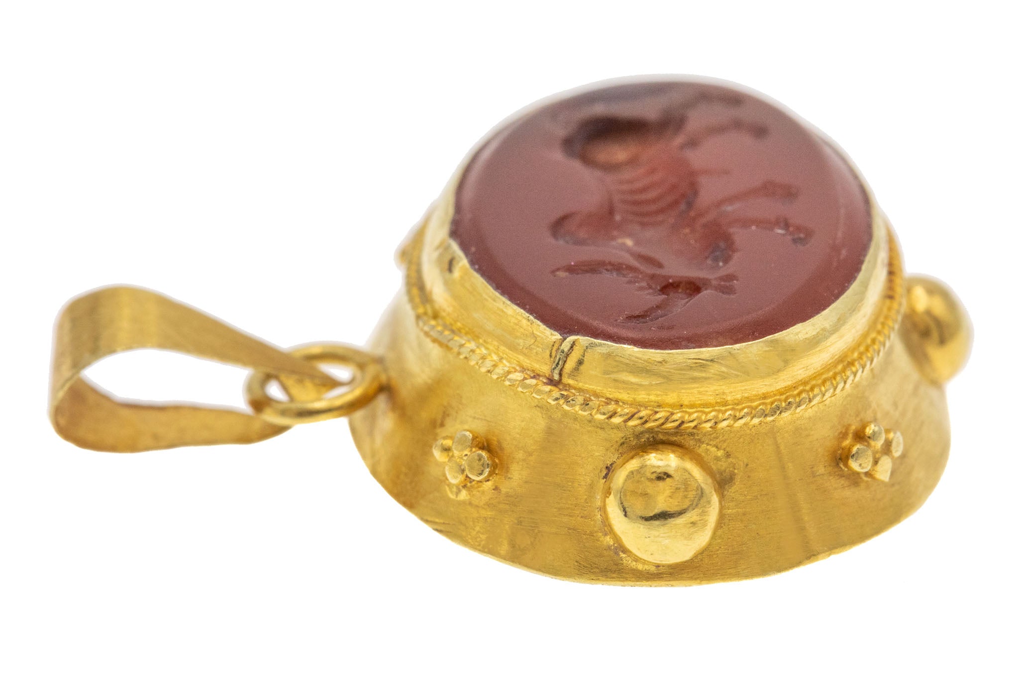 Antique 9ct Gold "Taurus" Bull Agate Intaglio Pendant