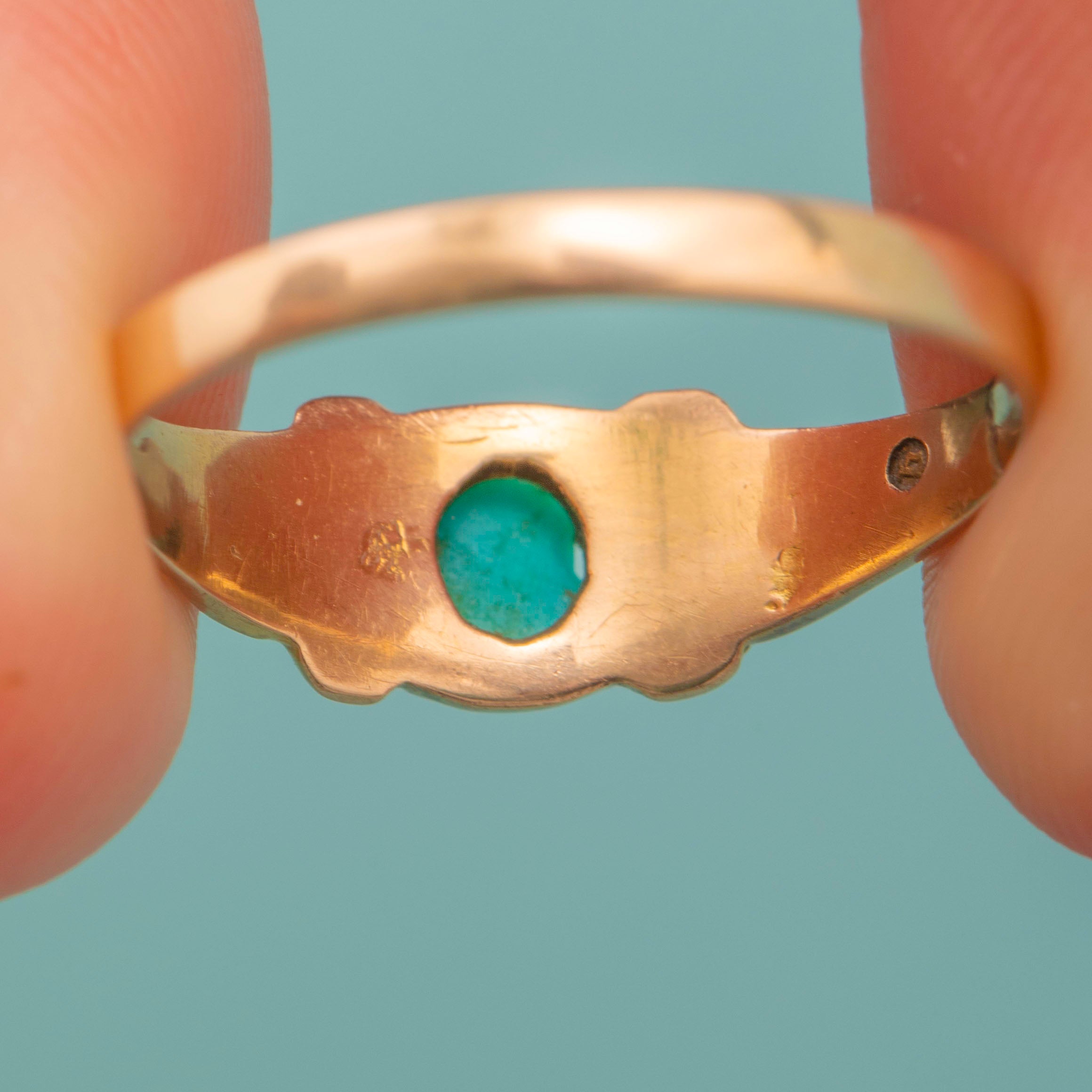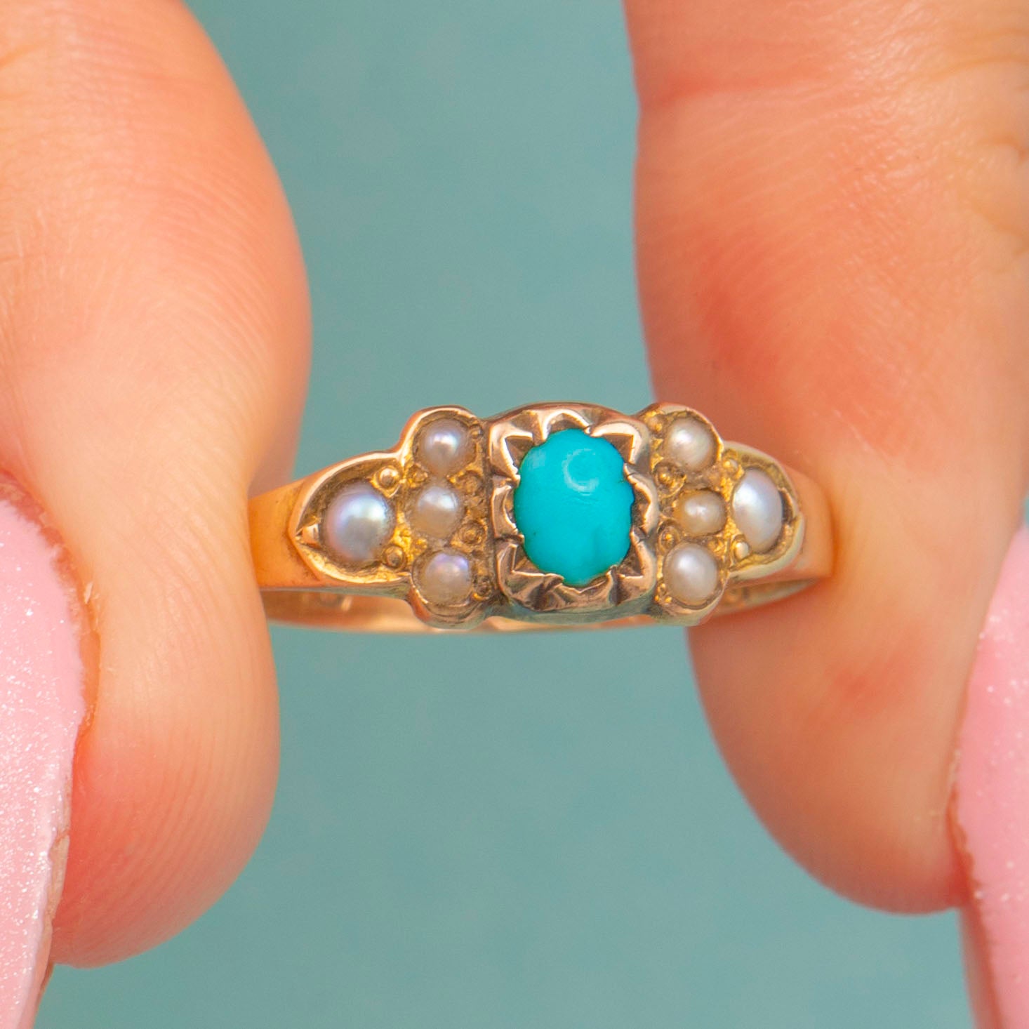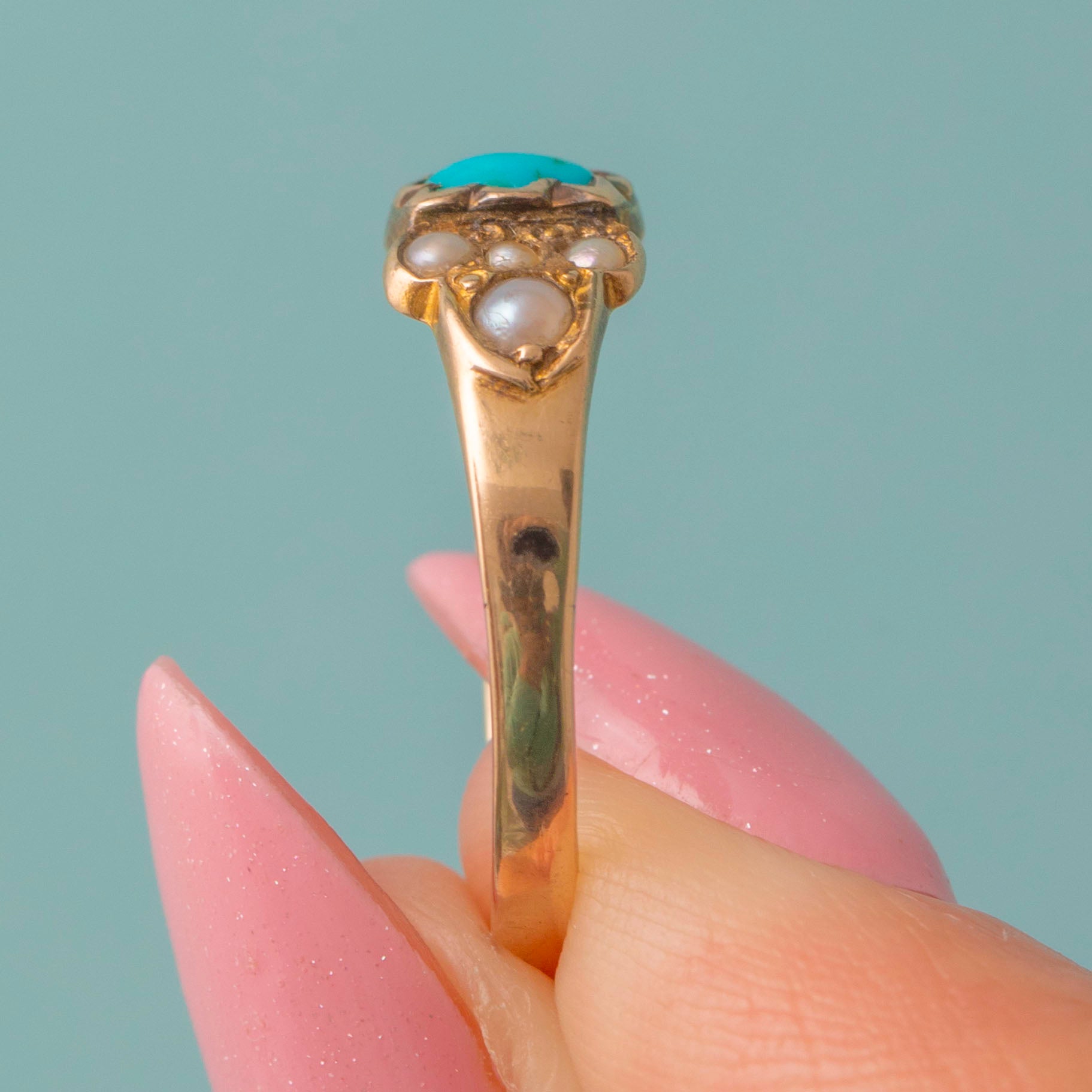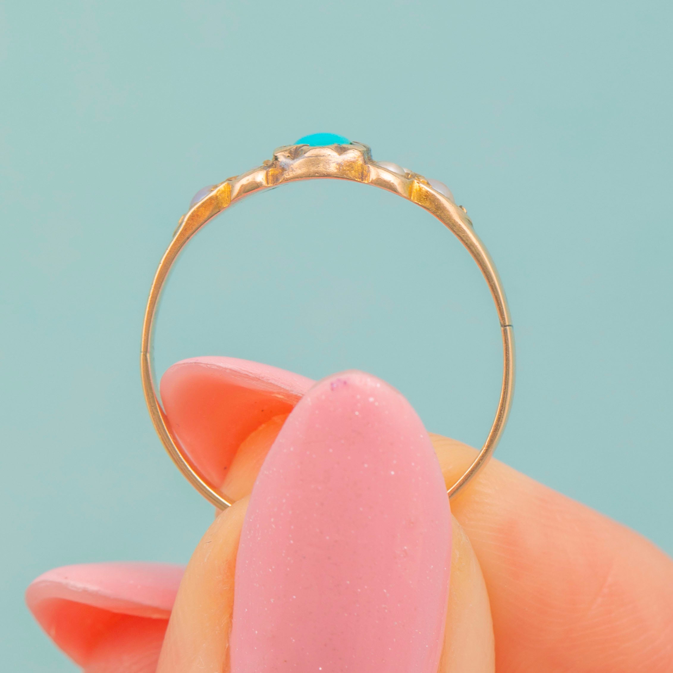 Antique 9ct Gold Turquoise Pearl Ring, c.1876