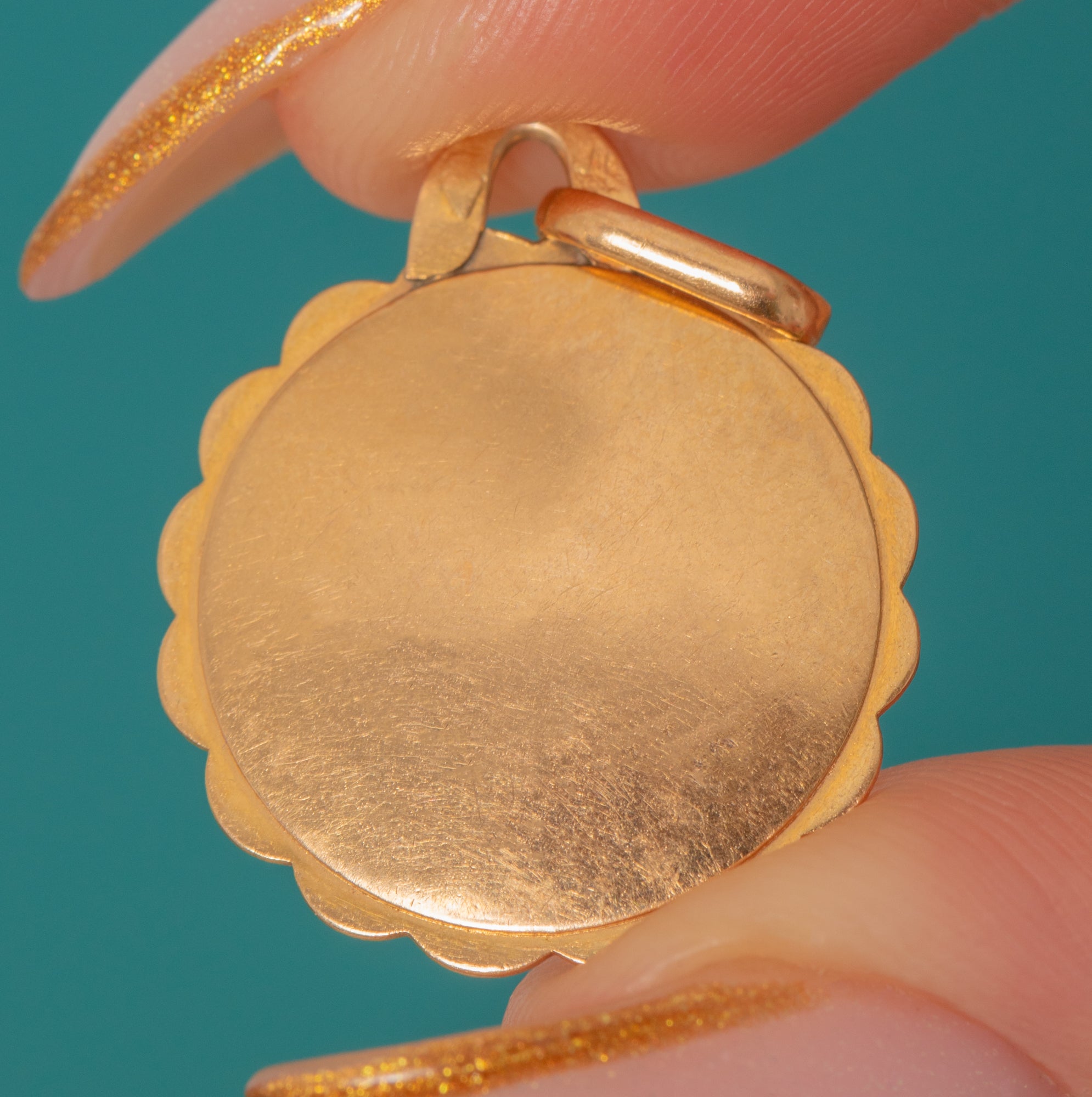 This exquisite antique French Saint Augis love token is a timeless emblem of devotion. Crafted in 18ct Gold, the medal bears the famous rebus “+ qu’hier – que demain,” meaning “More than yesterday, less than tomorrow.”