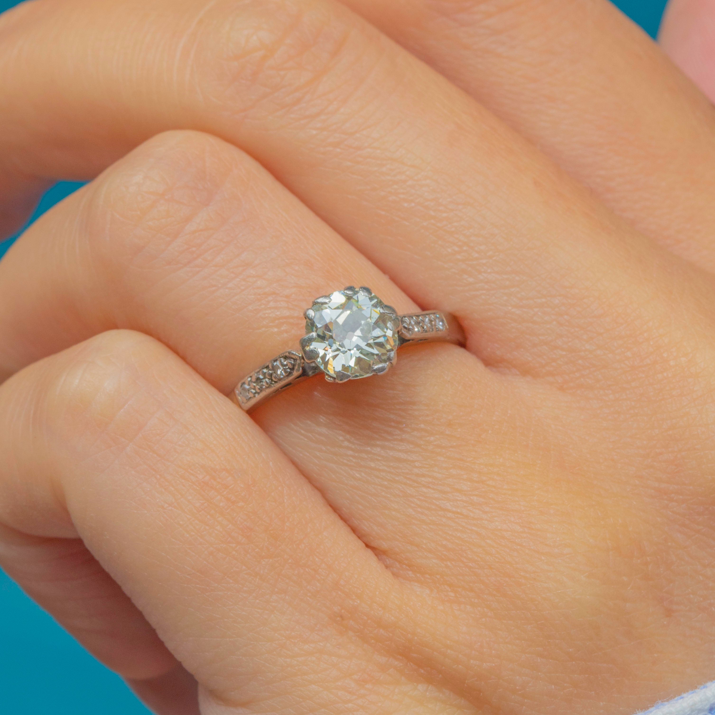 A classic Art Deco solitaire ring featuring an Old European Cut Diamond of impressive size! The perfect 1.00ct VS clarity antique Diamond set in a refined solid Platinum mount.