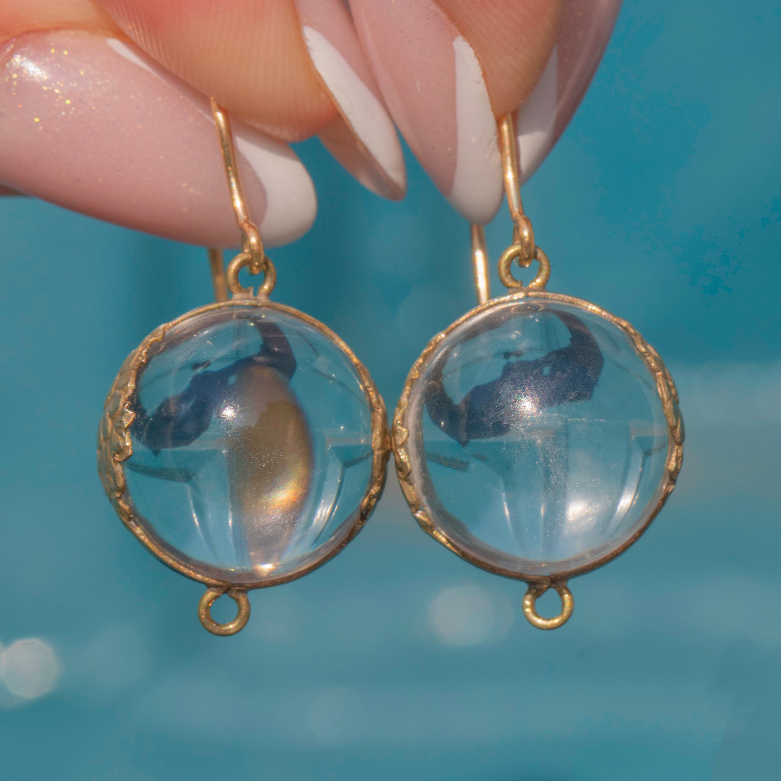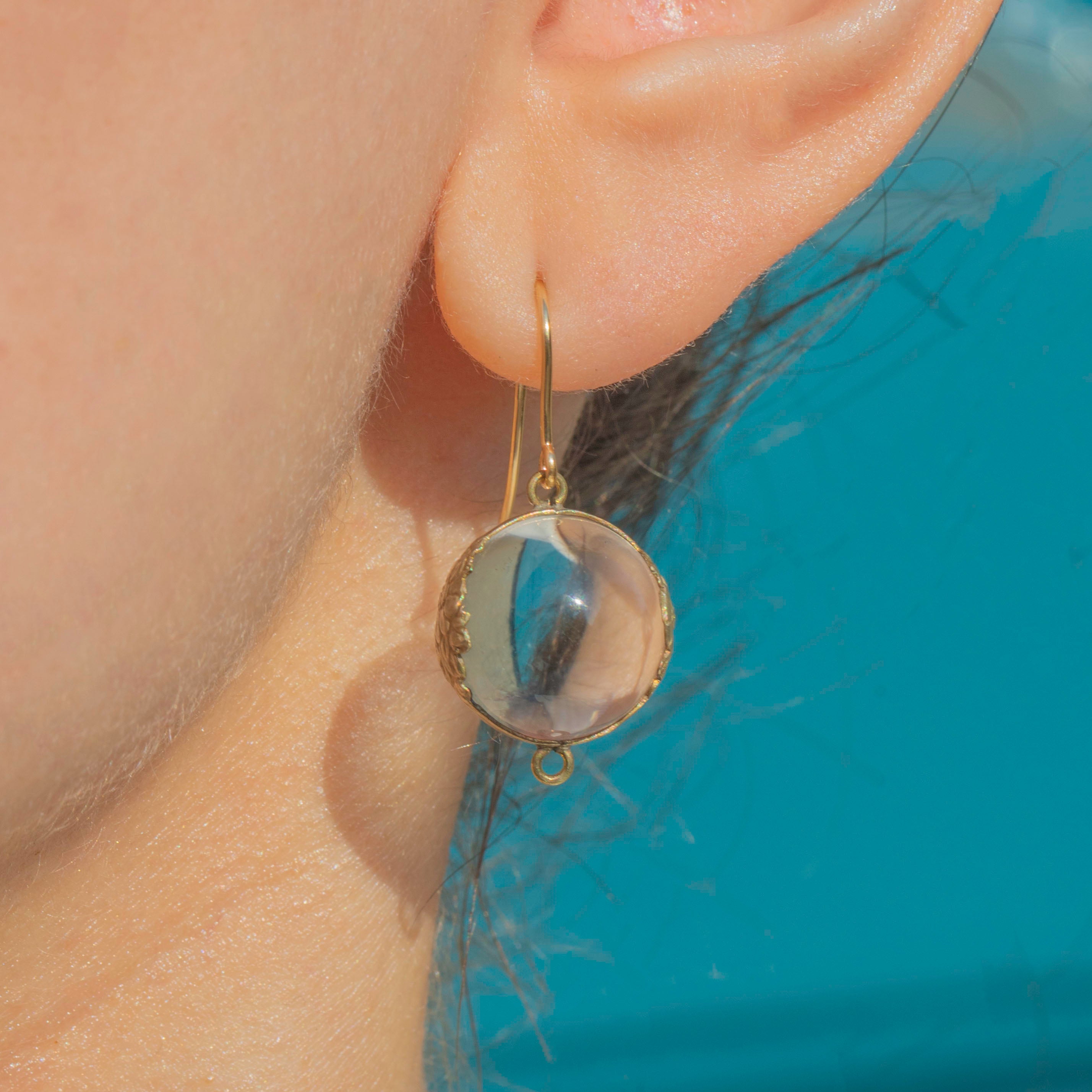 These antique Pools of Light Rock Crystal drop earrings are an enchanting pair! Suspended from 9ct Gold hooks, these drop earrings refract the light beautifully, creating that highly desirable glow!