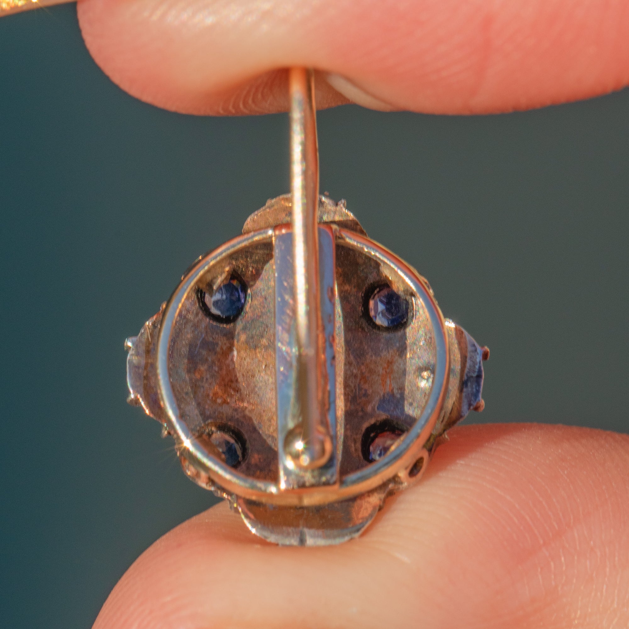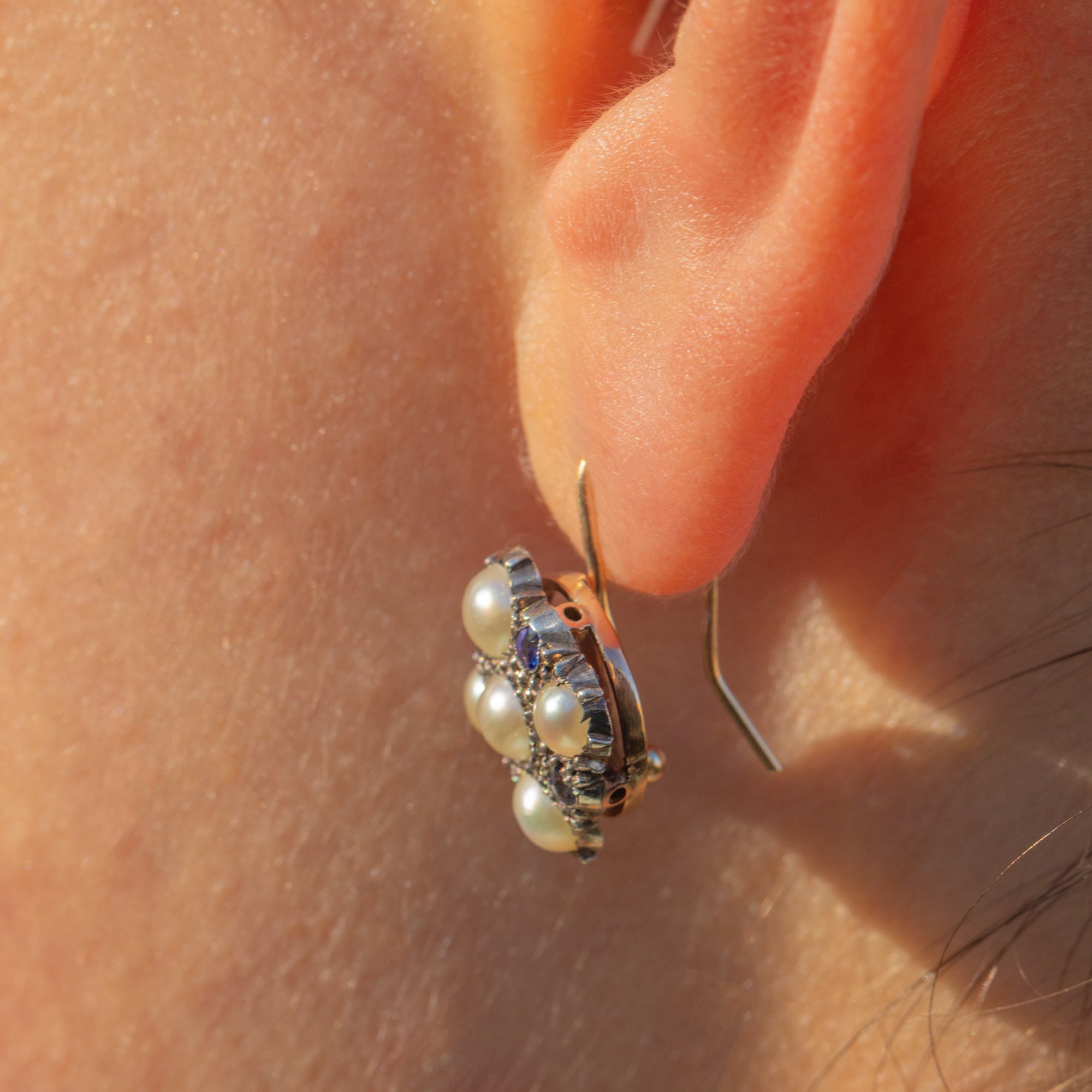 Displayed in Silver settings with 9ct Gold hooks, they have a flattering drop and a delicate antique presence on the ear. Light, wearable and full of Edwardian charm, they make a feminine and timeless addition to any antique jewellery collection.