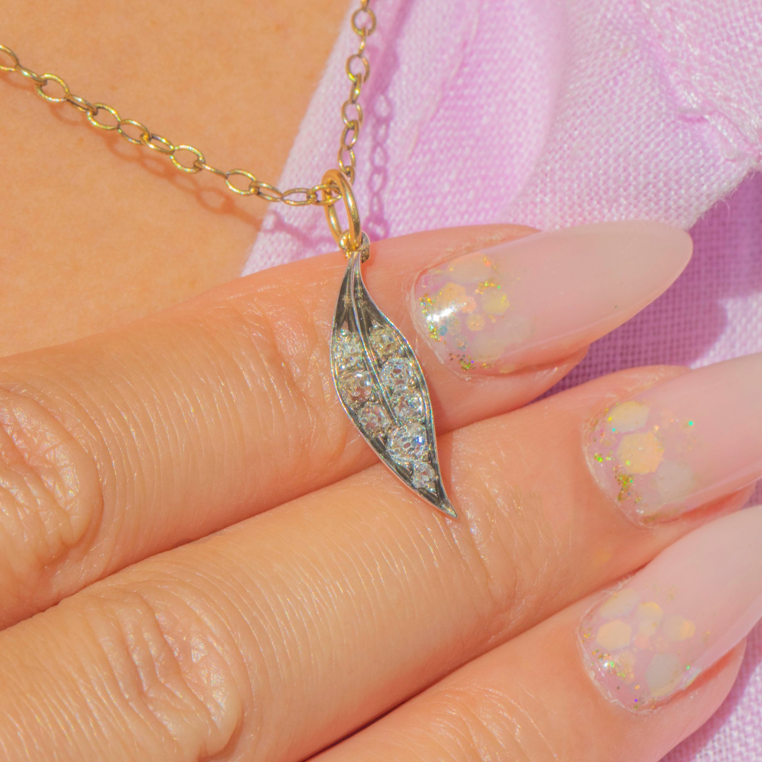 Antique Victorian Diamond Leaf Charm