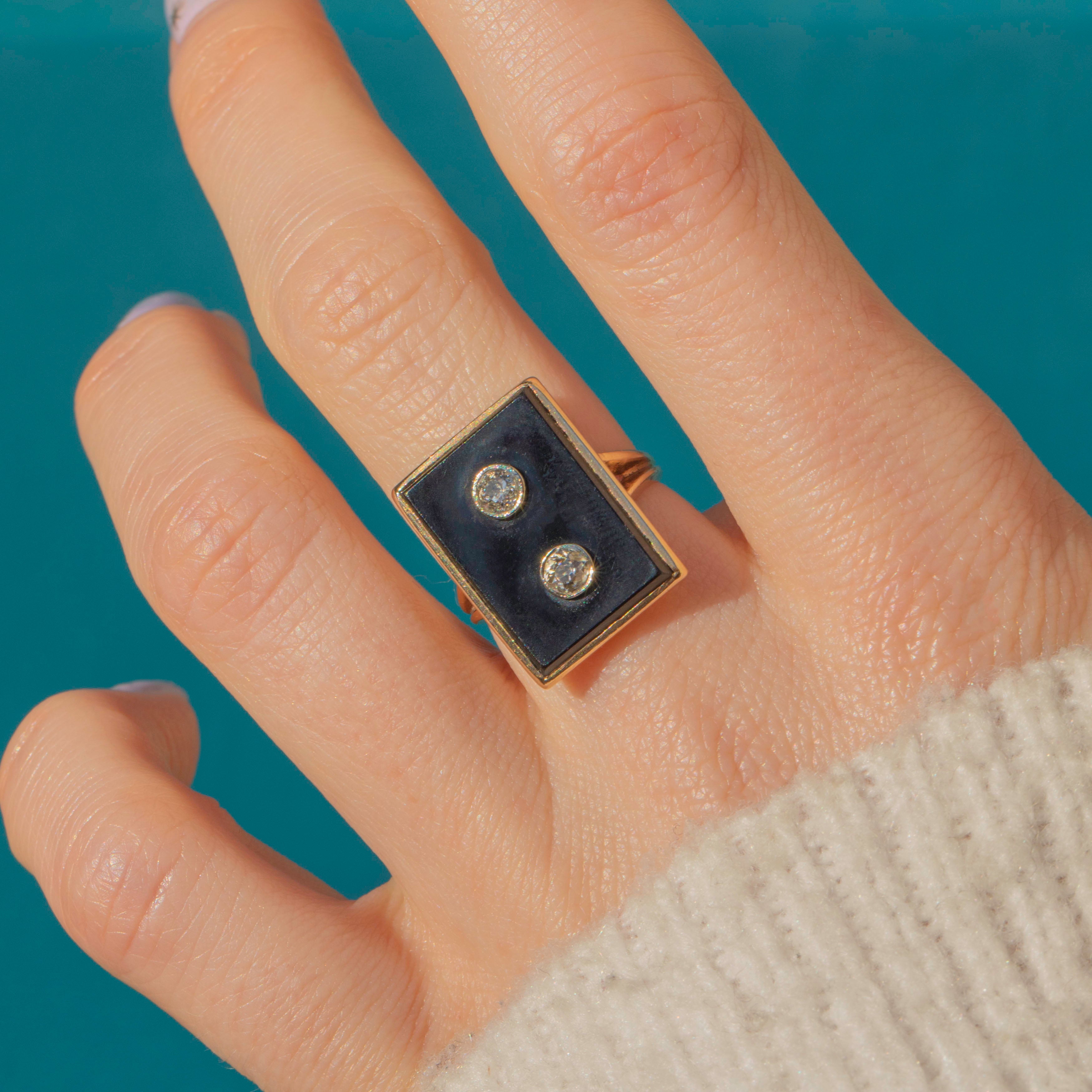 Art Deco 14ct Gold Onyx Diamond Panel Ring, Old-European Cut Diamonds Item added