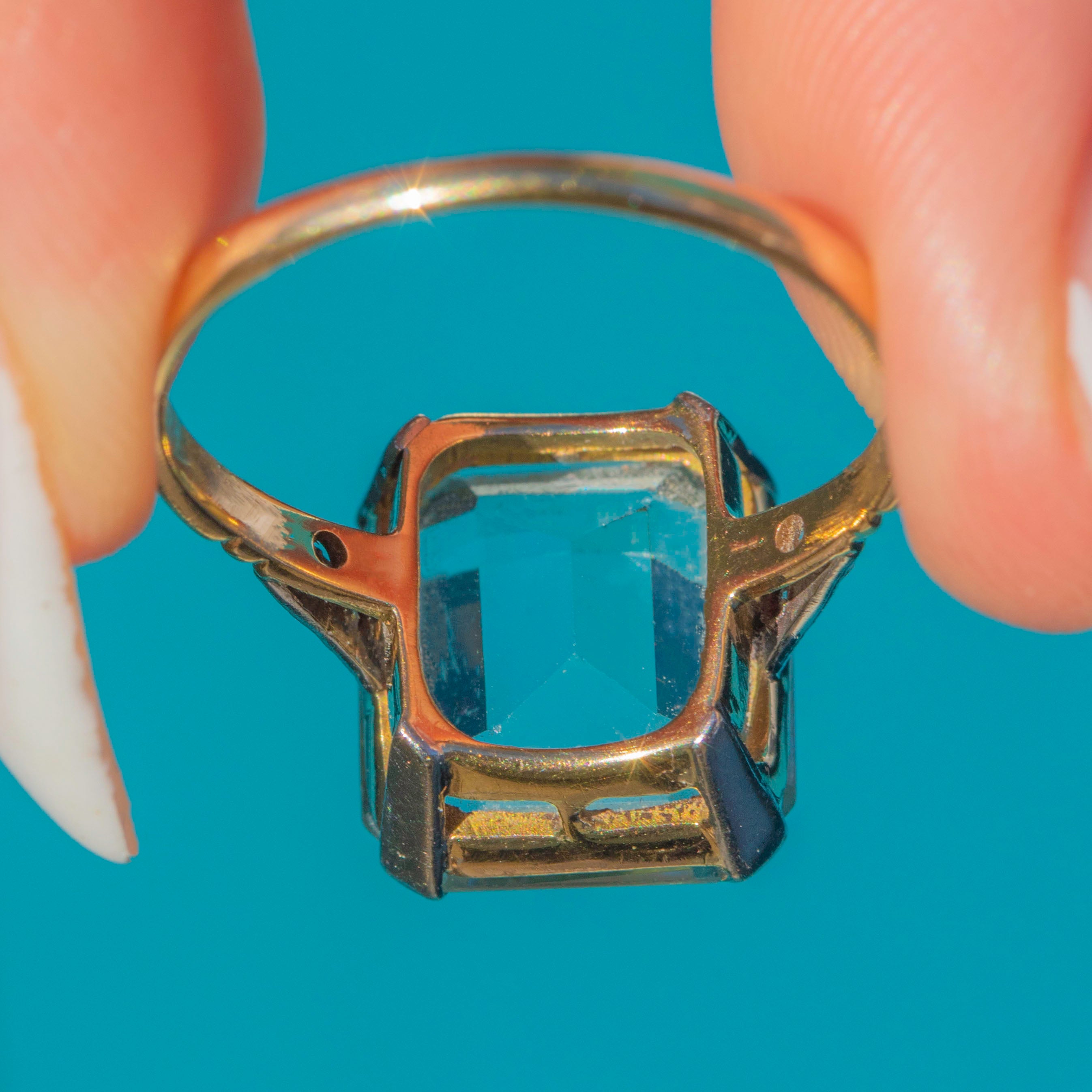 Art Deco 18ct Gold Aquamarine Ring 5.50ct