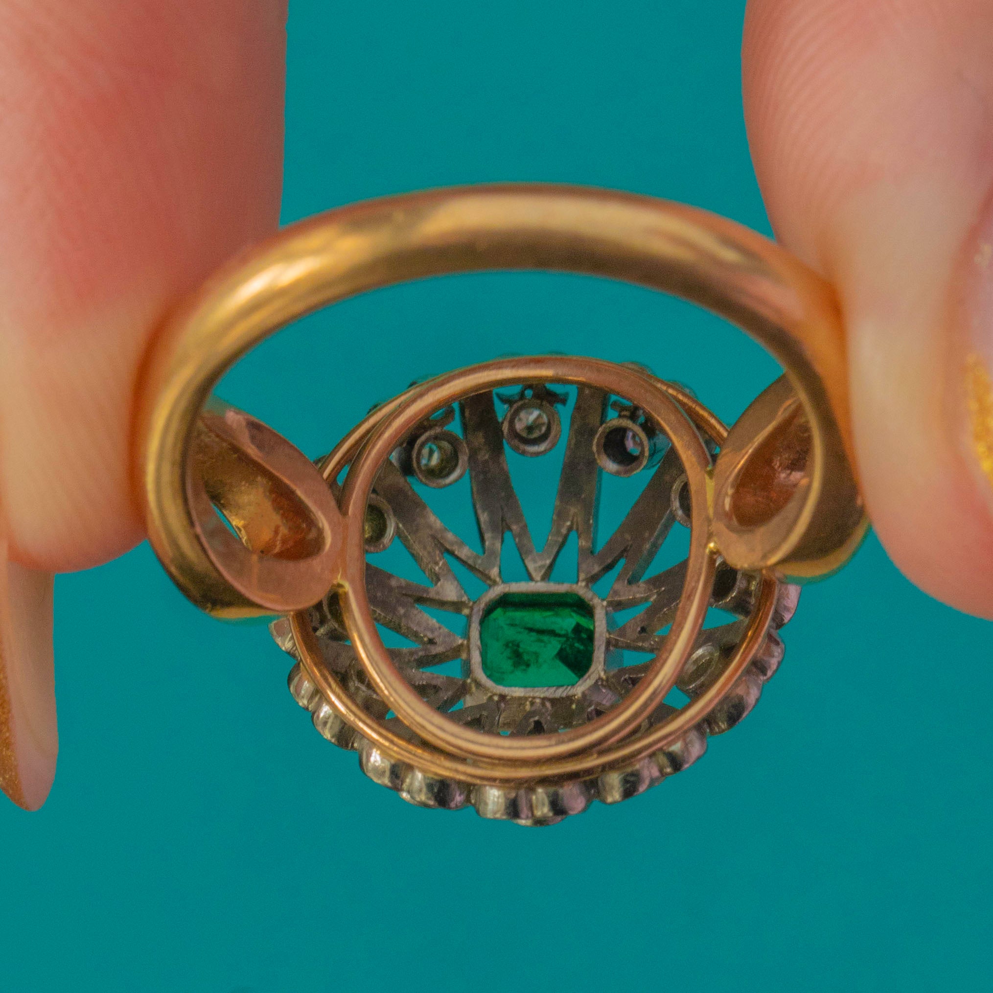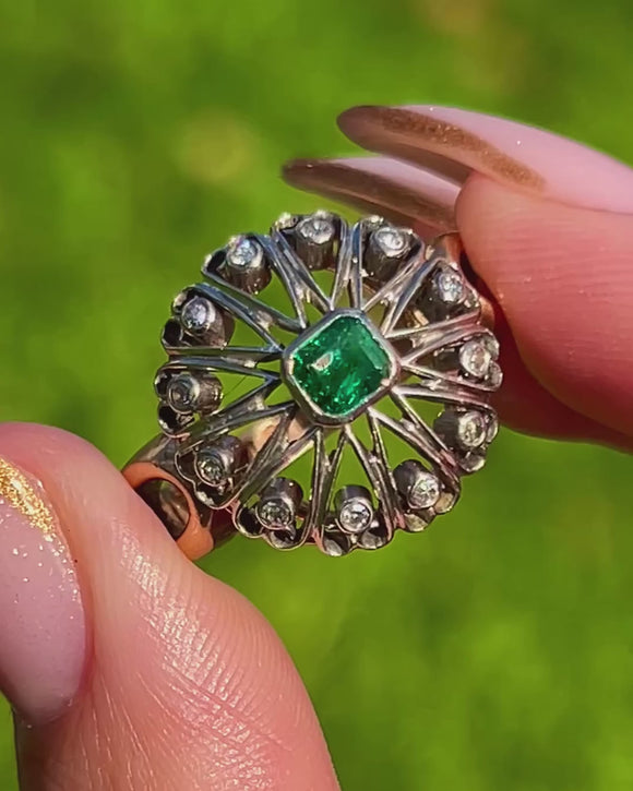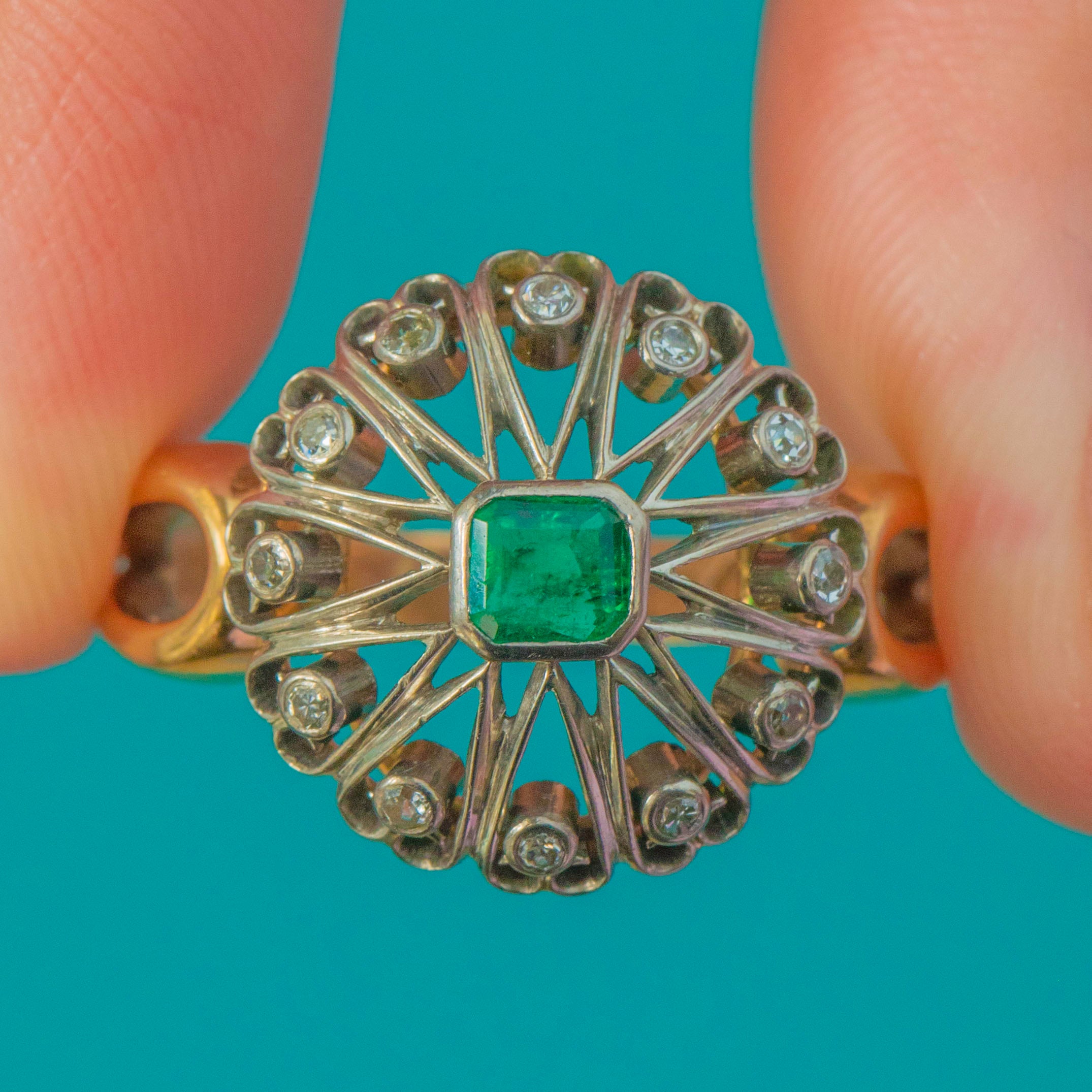 Art Deco 18ct Gold Emerald Diamond Star Cluster Ring