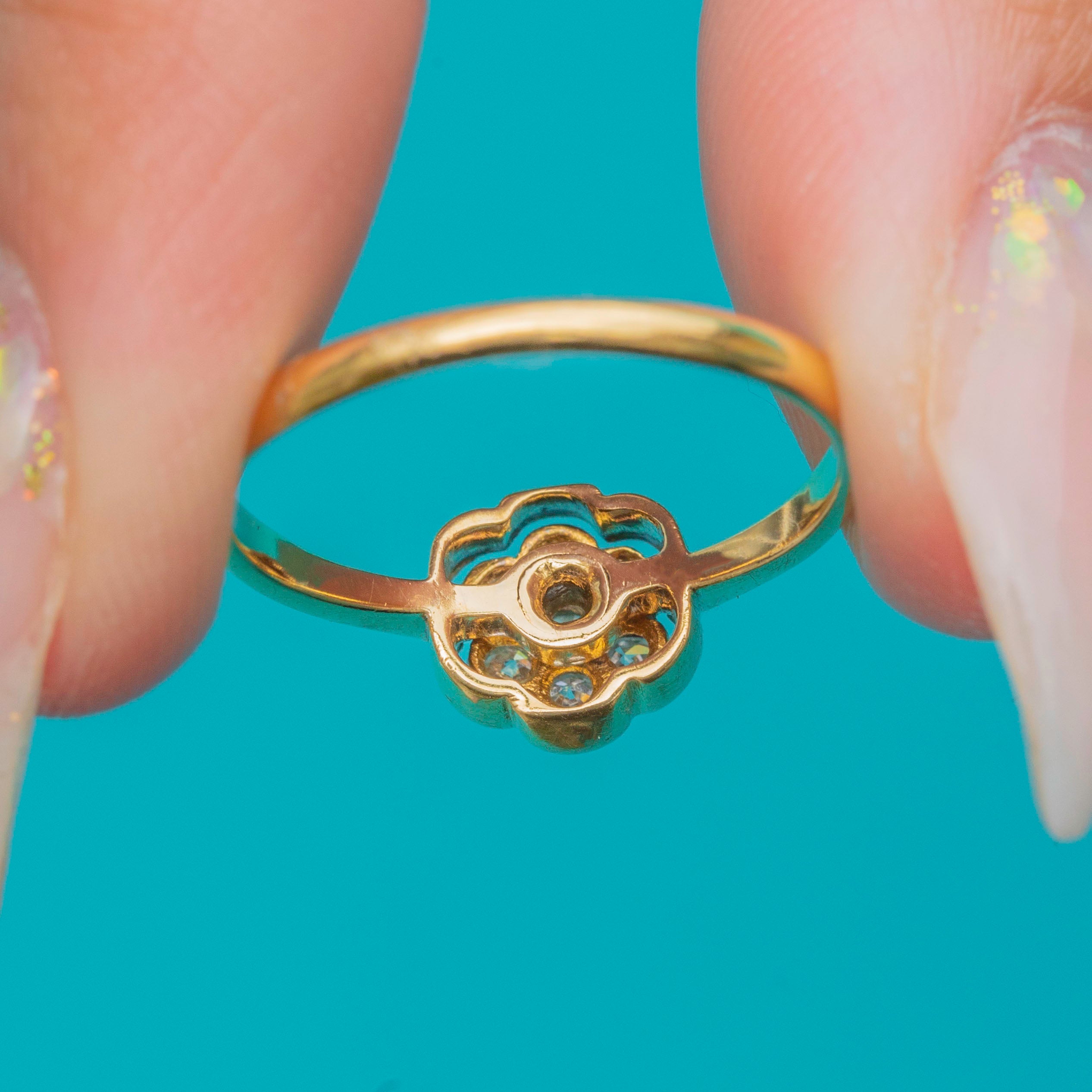 Art Deco 18ct Gold Old Mine Cut Diamond Flower Cluster Ring c.1920s