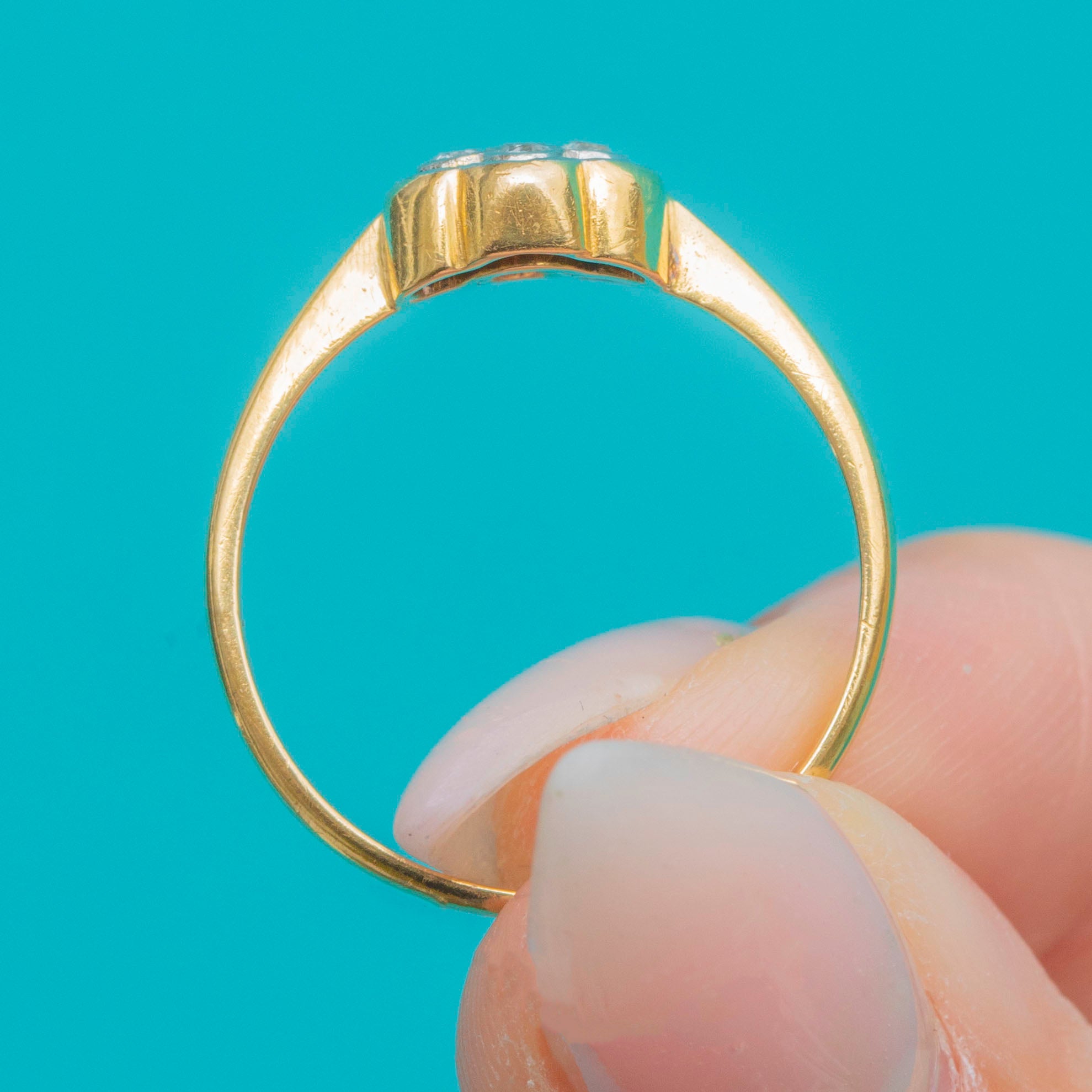 Art Deco 18ct Gold Old Mine Cut Diamond Flower Cluster Ring c.1920s Item added