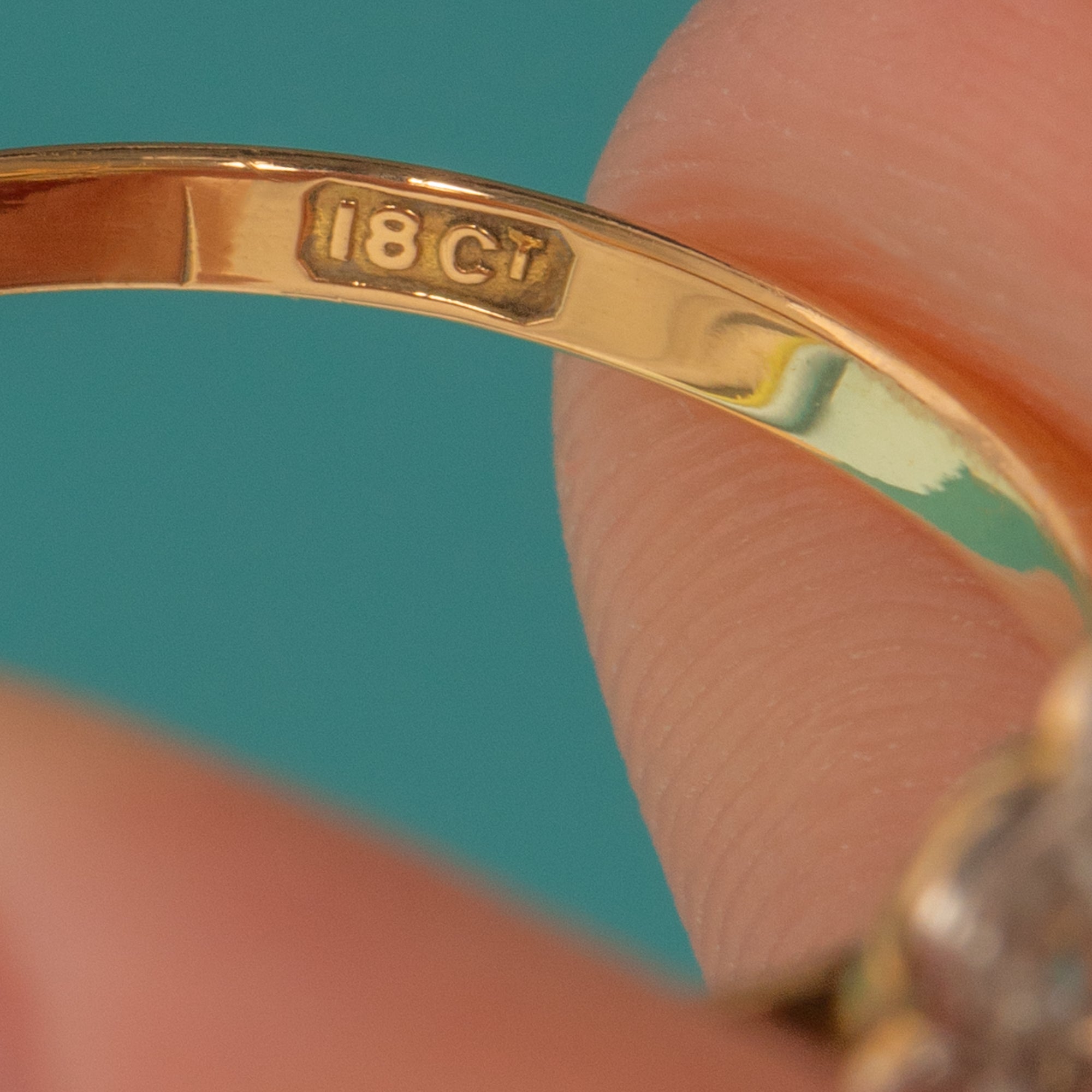 EXCELLENT: Diamonds are bright and secure with no chips or notable facet wear visible under close inspection. The Platinum head and 18ct Gold shank are crisp with only minimal light surface wear, consistent with careful wear. No obvious resizing or restoration marks observed.
