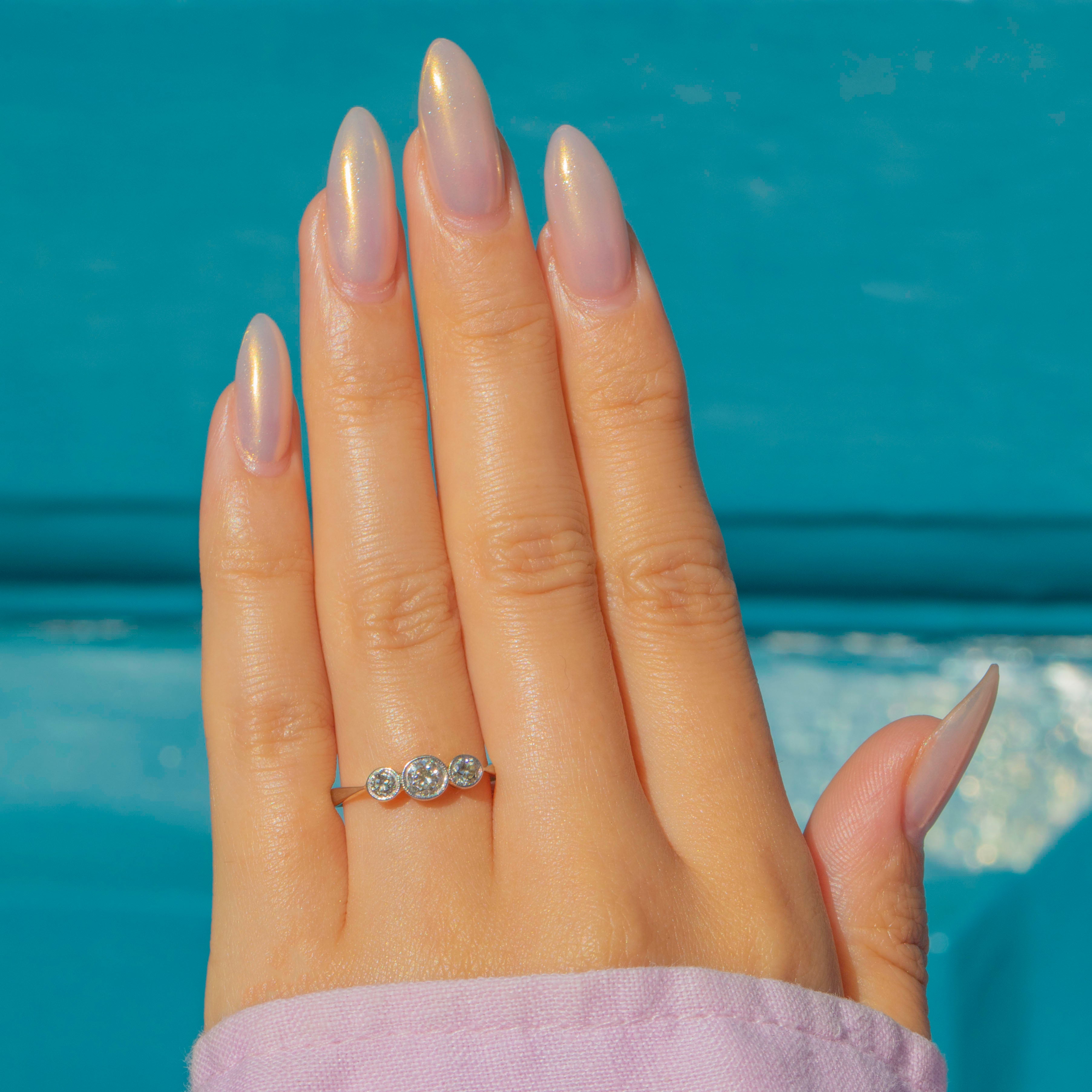 The stones are bezel-set, lending a smooth, refined finish while highlighting their bright sparkle.