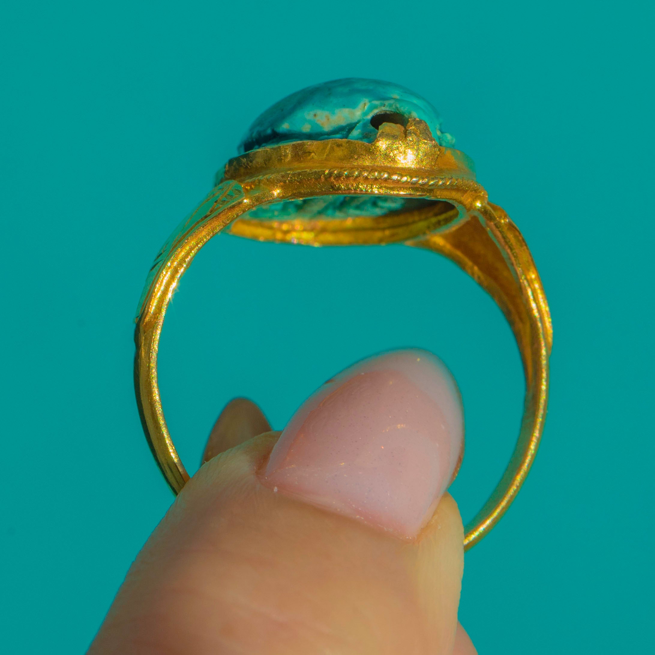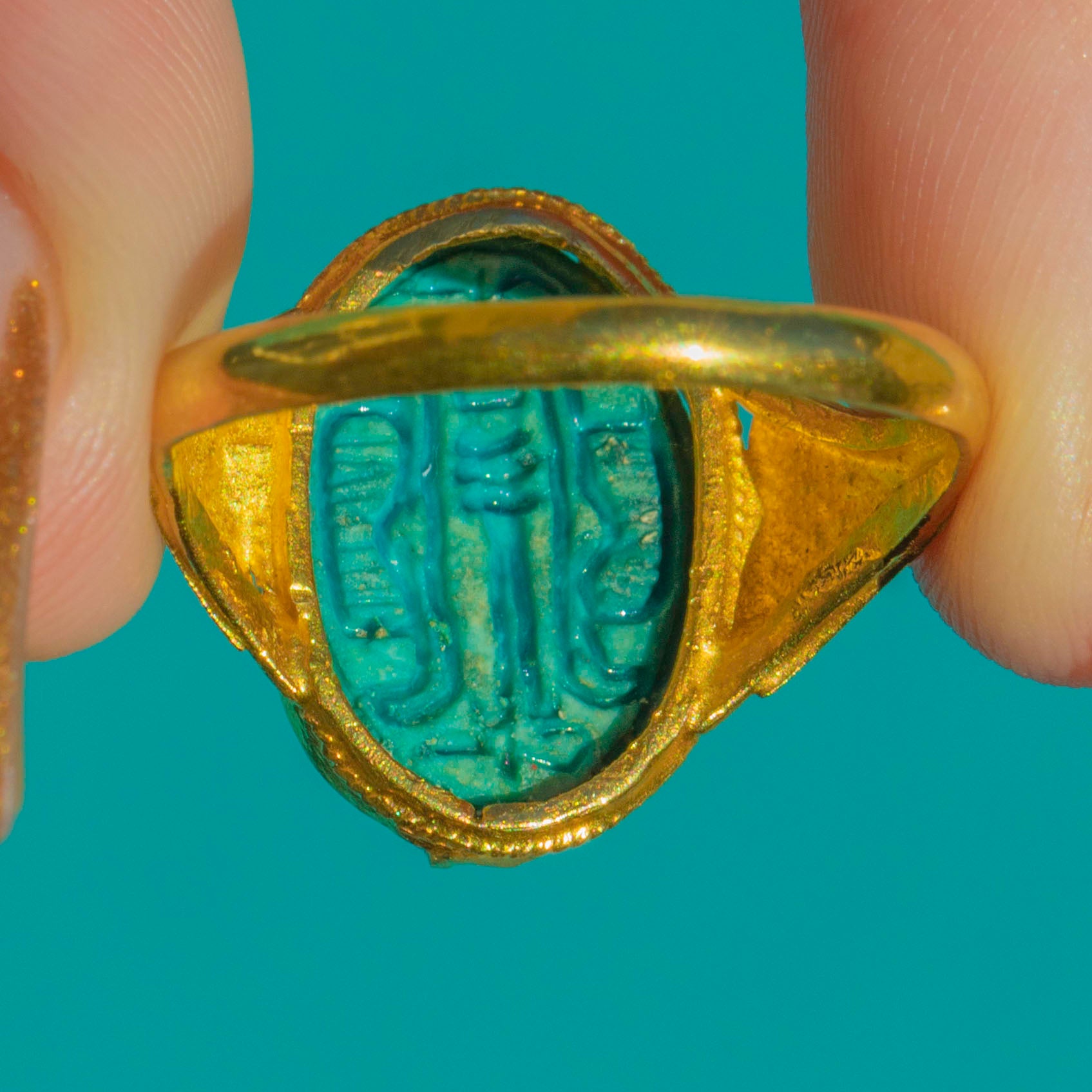 Art Deco 22ct Gold Archaeological Revival Faience Scarab Beetle Ring Item added