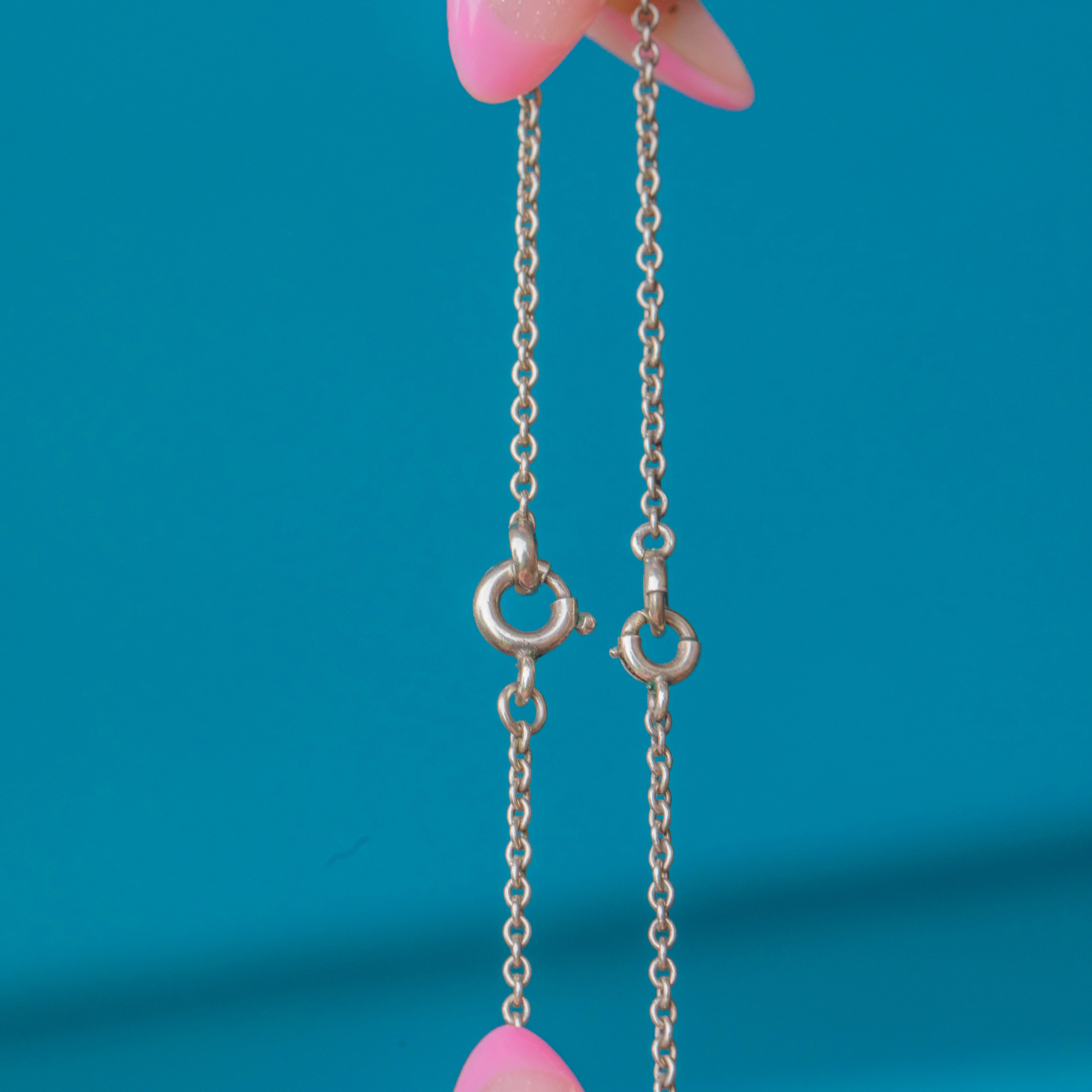 The pendant is accompanied by an 18" Silver chain made of two equal sections, each fitted with its own clasp, a subtle yet intriguing design quirk typical of the period’s innovative craftsmanship. An effortlessly sophisticated piece that wears beautifully day or night.