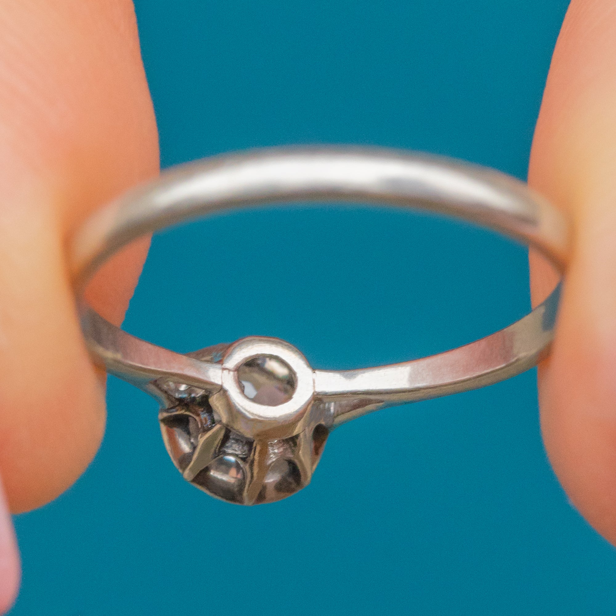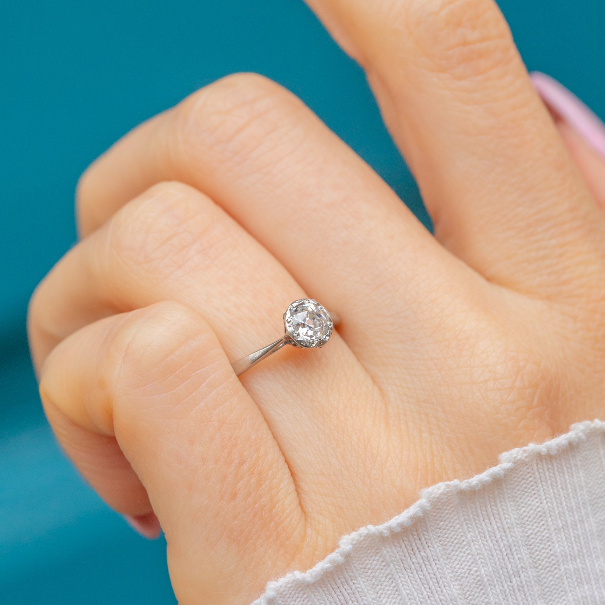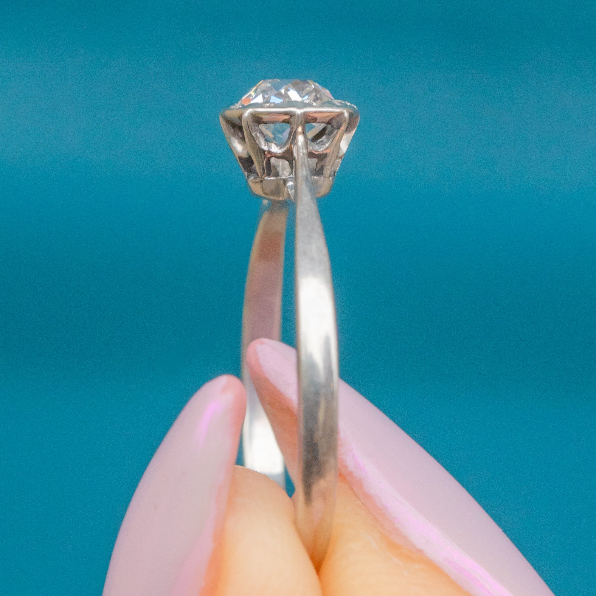 A timeless Art Deco Platinum solitaire ring set with a sparkling 0.40ct Diamond, full of life and fire. The clean, minimal lines and elegant proportions perfectly capture the refined simplicity of the 1920s, allowing the beautiful old-cut Diamond to take centre stage.