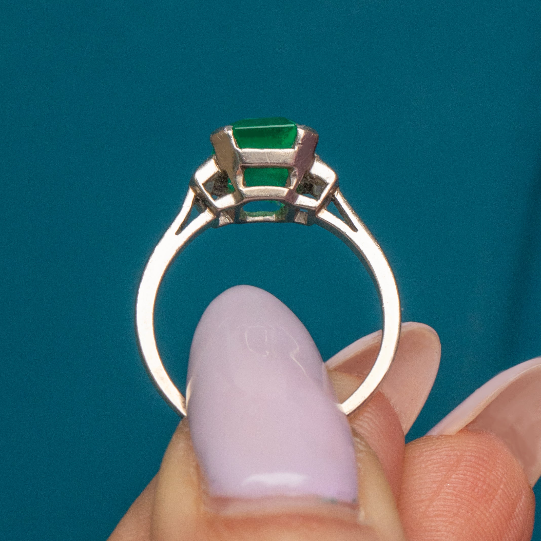 Art Deco Platinum Emerald Diamond Ring, 1.60ct