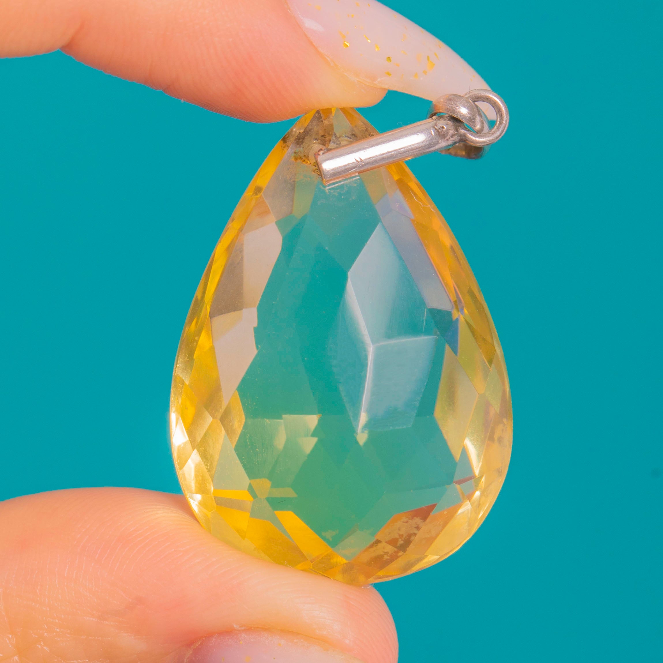 Art Deco Silver Faceted Citrine Pear Pendant 40.00ct