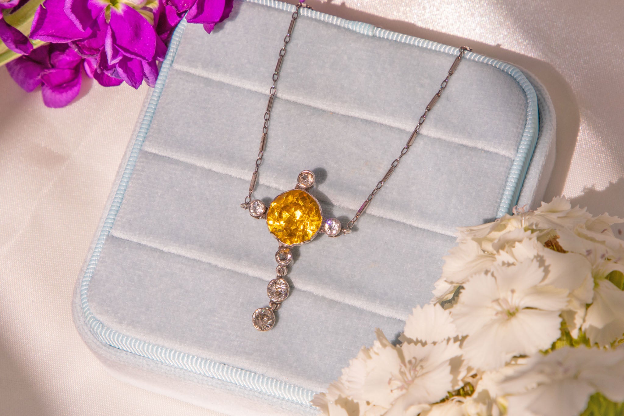 EXCELLENT. This Art Deco Silver foiled yellow & white Paste integral necklace is absolutely stunning. The Paste gemstones are all secure and the yellow Paste has retained its foiling beautifully. The settings to the stones have remained intact, the chain links are all secure and the piece closes securely with its bolt ring.