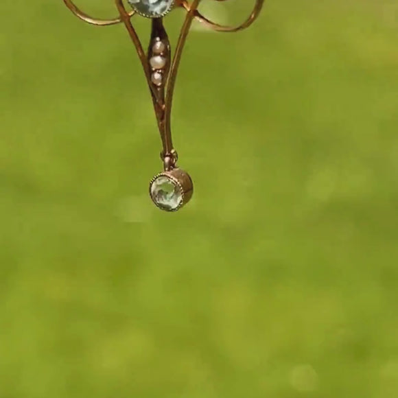 Art Nouveau 9ct Gold Aquamarine Pearl Lavalier Pendant, 0.95ct