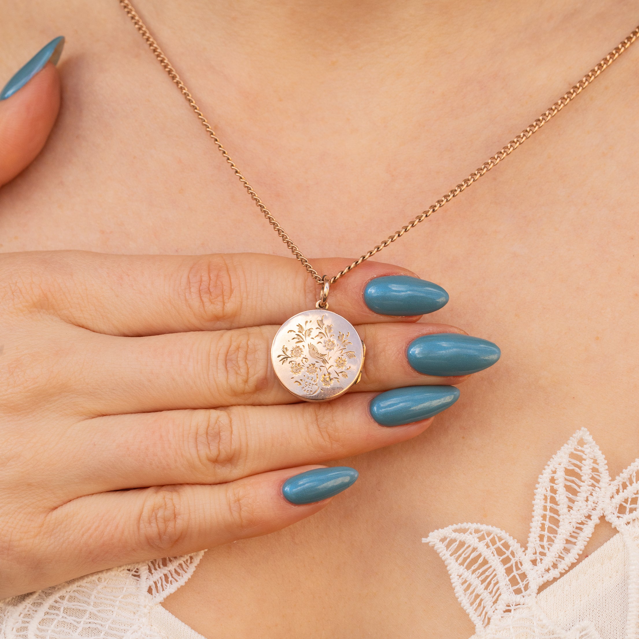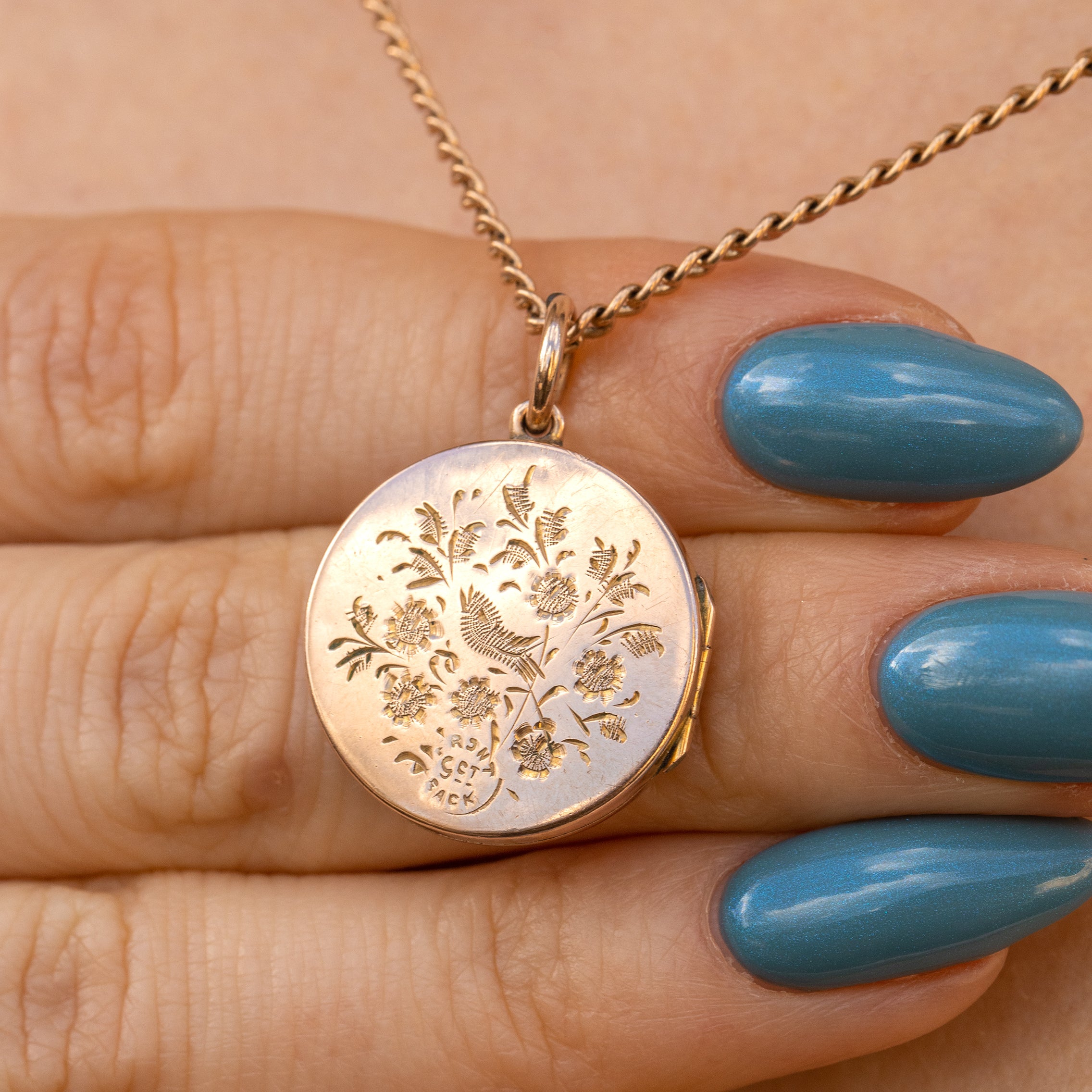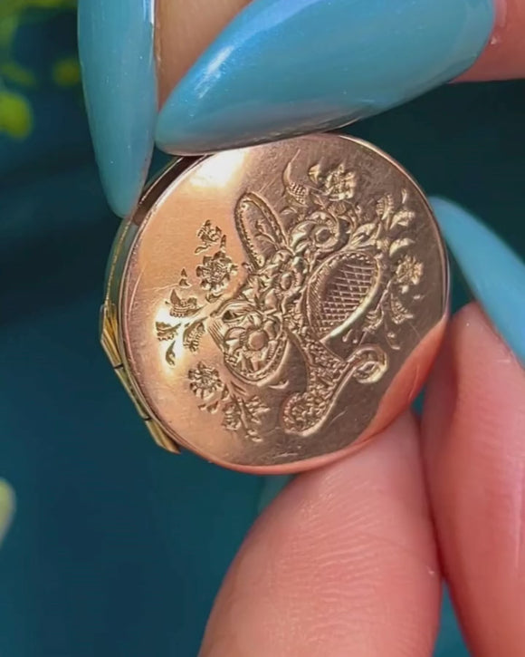 This Art Nouveau 9ct Gold bouquet of flower locket is as charming as can be! Beautifully engraved with sweet florals, this perfectly round locket will instantly put a spring in your step.