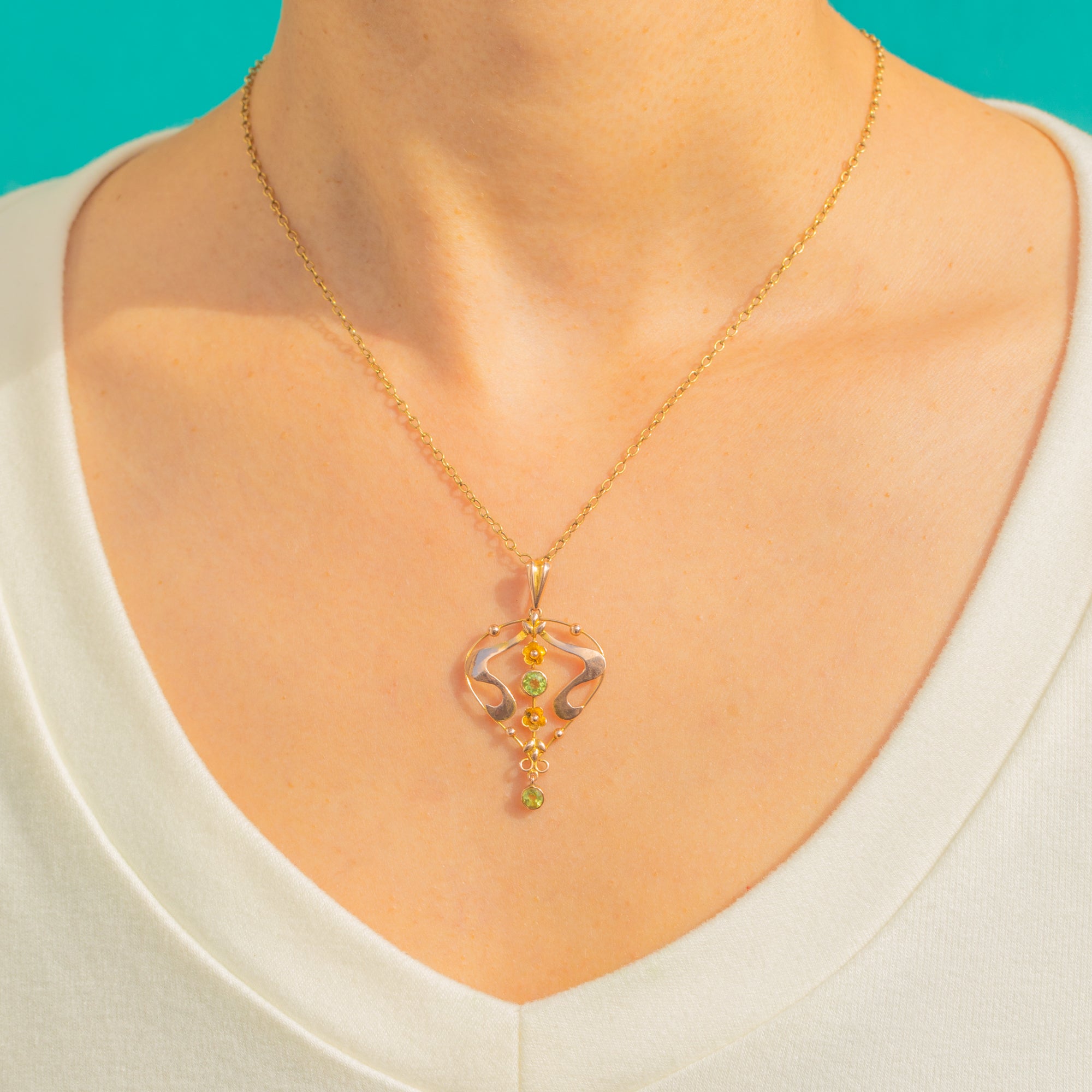 Art Nouveau 9ct Gold Peridot Lavalier Pendant